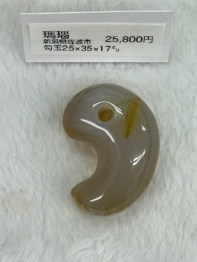 勾玉)佐渡市の瑪瑙 25×35×17㍉