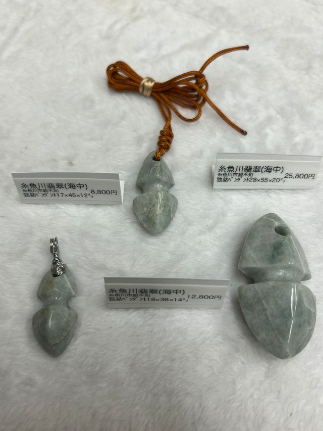 この商品は親不知産の海の中から 採集された翡翠から作成されています。 以下YouTubeに関連動画をアップしています。 是非ご覧になってください。 親不知の海中翡翠は全て加工しました(4K)20251210 https://youtu.be/I1aixB3r-Uw ご不明な点がありましたらメッセージをお願いいたします。 大サイズは写真の一番右の翡翠です。 ウラ面も丸く立体的になっています ■ 商品名:独鈷ペンダント)糸魚川翡翠(海中)大 新潟県糸魚川市で採集された海中翡翠を使用した、法具の独鈷をモチーフにした美しい独鈷ペンダントが登場しました!このペンダントは、サイズの異なる小、中、大の3タイプをご用意しており、それぞれのサイズが持つ魅力を楽しむことができます。 海中翡翠の独特な色合いと模様が、このペンダントに自然の神秘さを与えています。丁寧に仕上げられたデザインは、見る人を惹きつけ、心に残る特別な品となることでしょう。 ペンダントの表面には微細なクラックが見られることがあり、これは天然石ならではの魅力です。この独鈷型のペンダントを身に着けることで、自然の力を実感しつつ、あなたの個性を際立たせることができるかもしれません!ぜひ手に取って、その素晴らしさを体感してください。 自然の力を感じるこの特別なペンダントを、自分自身へのご褒美や大切な方への贈り物としてお選びいただくのはいかがでしょうか。お求めをお待ちしております!