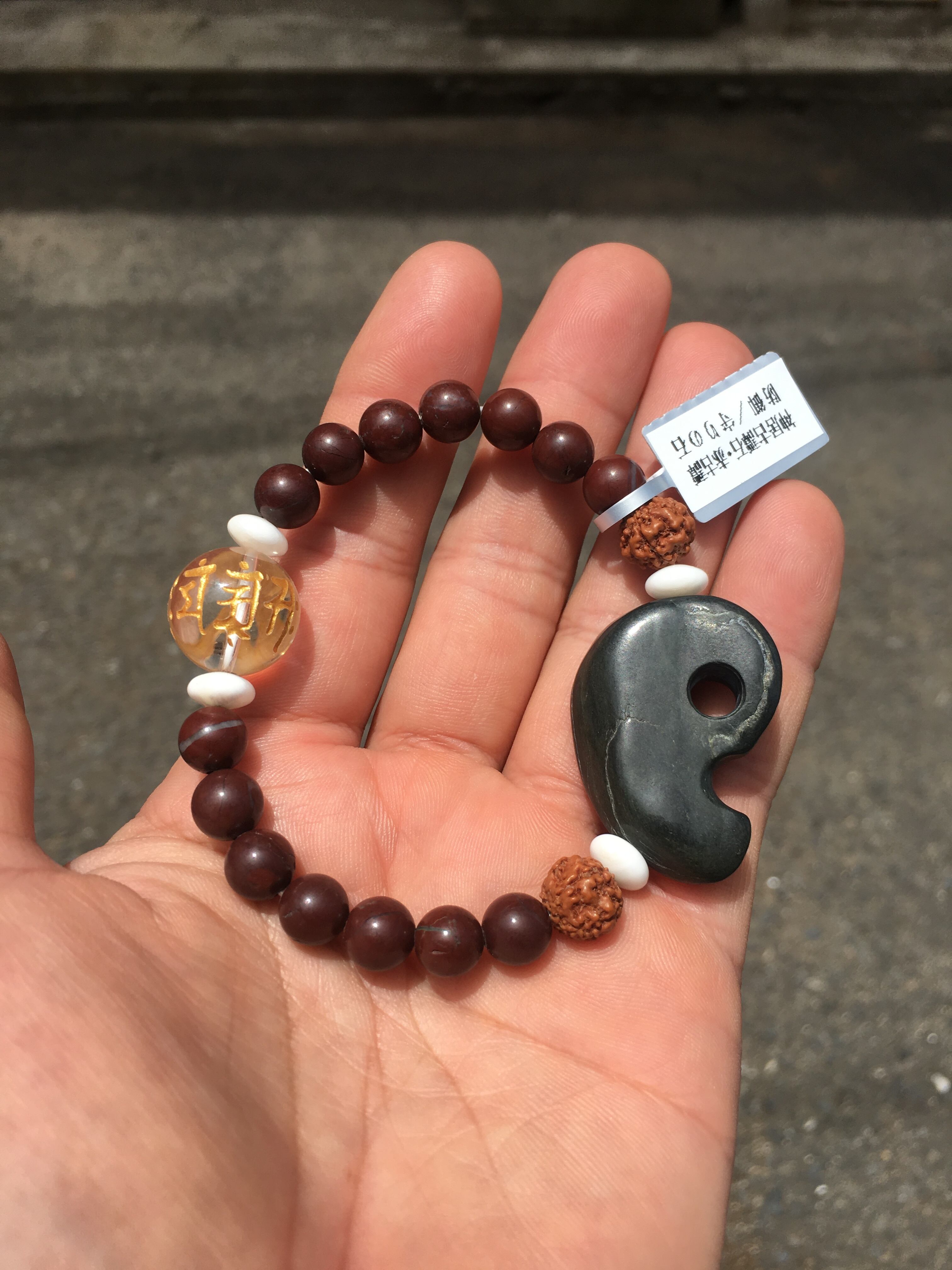 神居古潭勾玉ブレスレット with 八梵字入水晶16mm