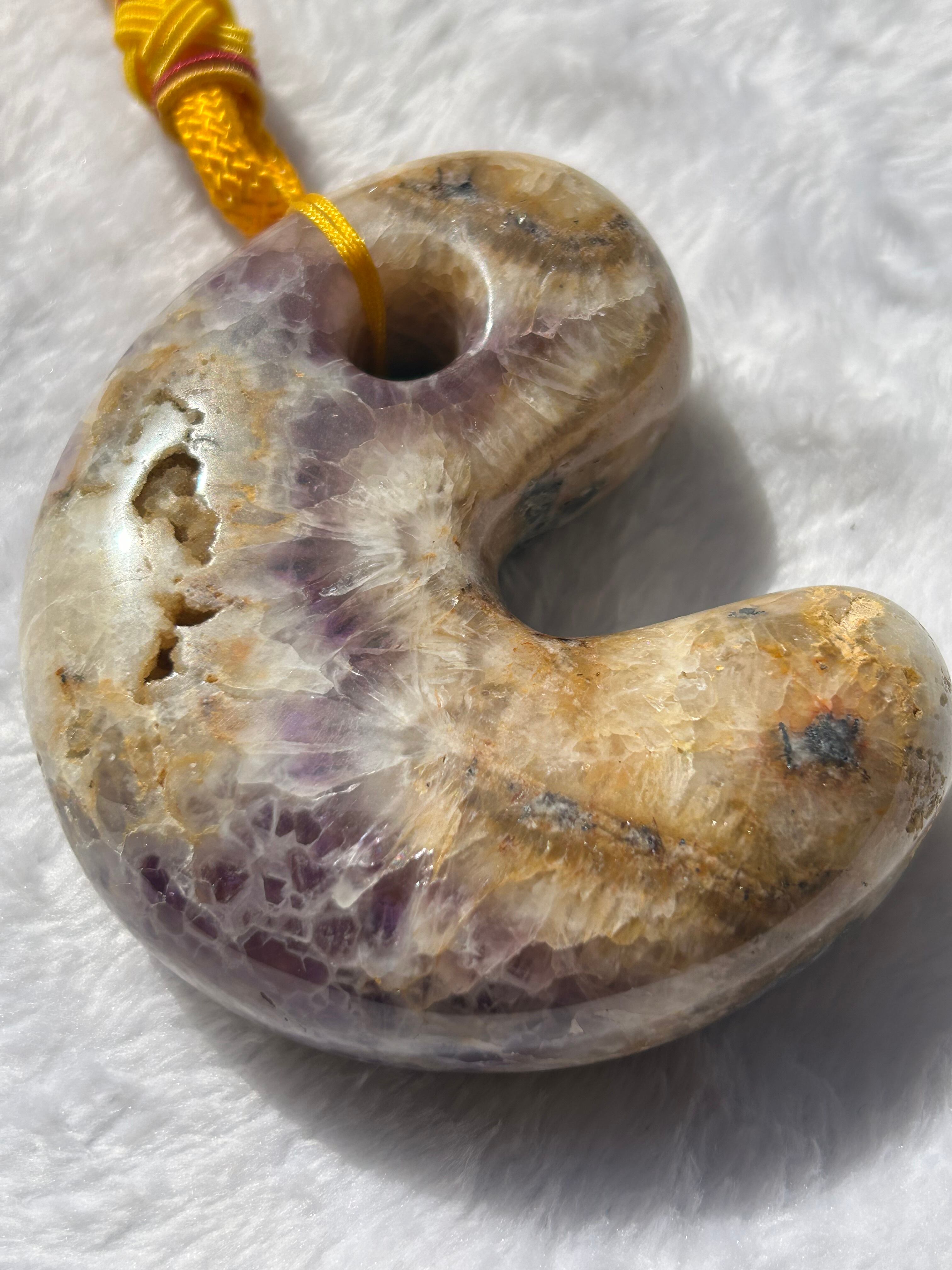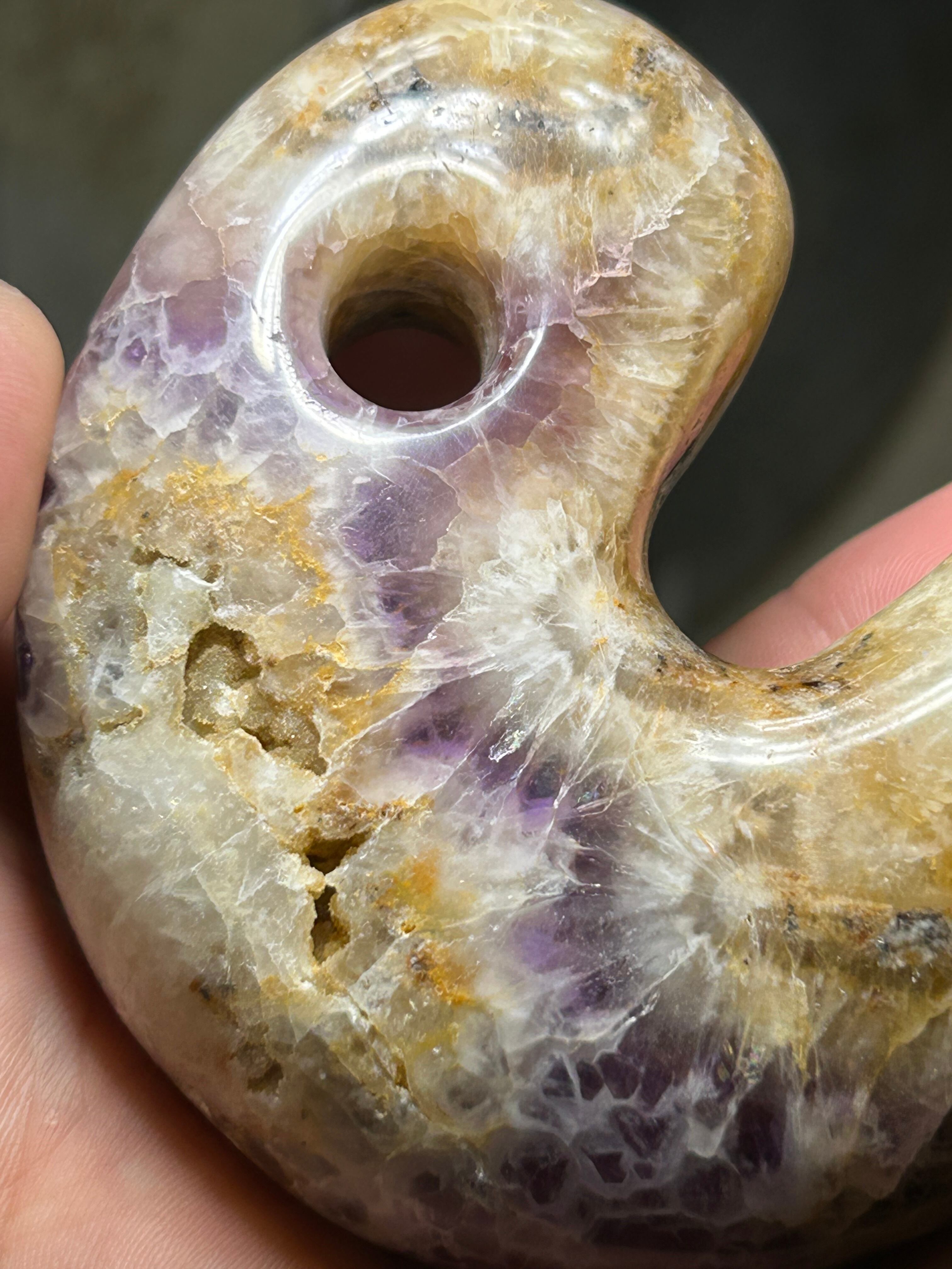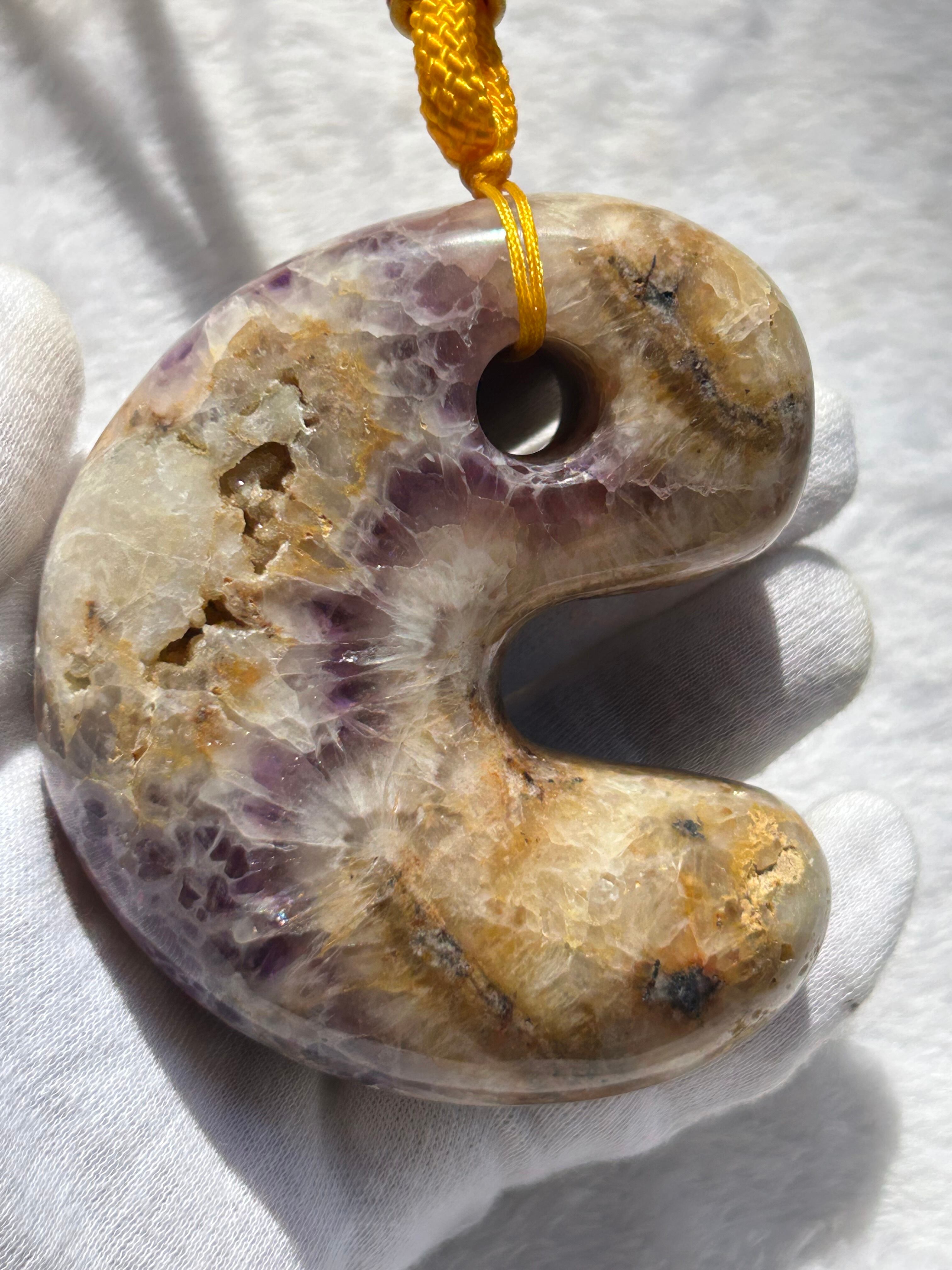 群馬県戸神山産のアメジストを含む石英から、勾玉を作成しました。勾玉のサイズは