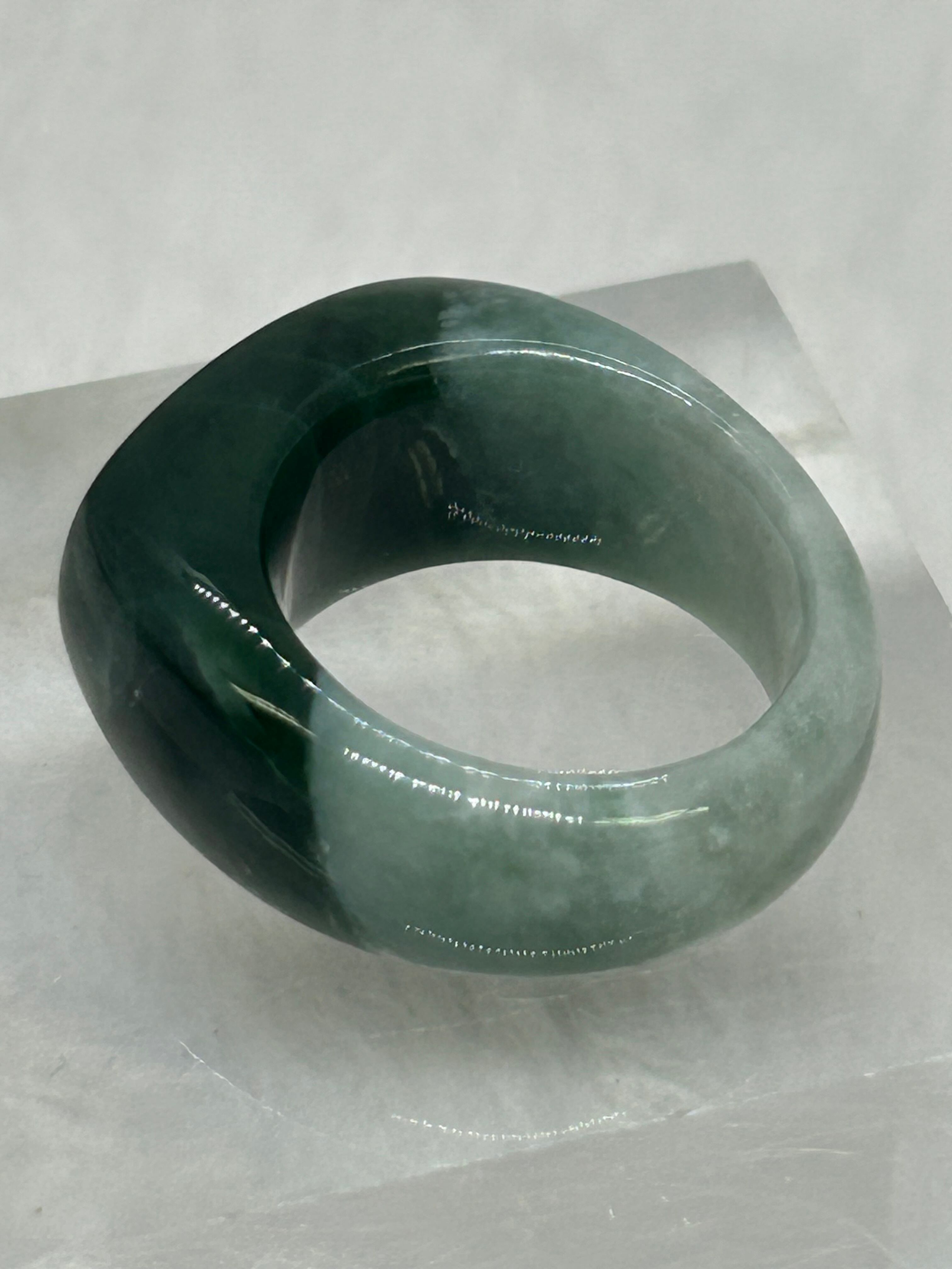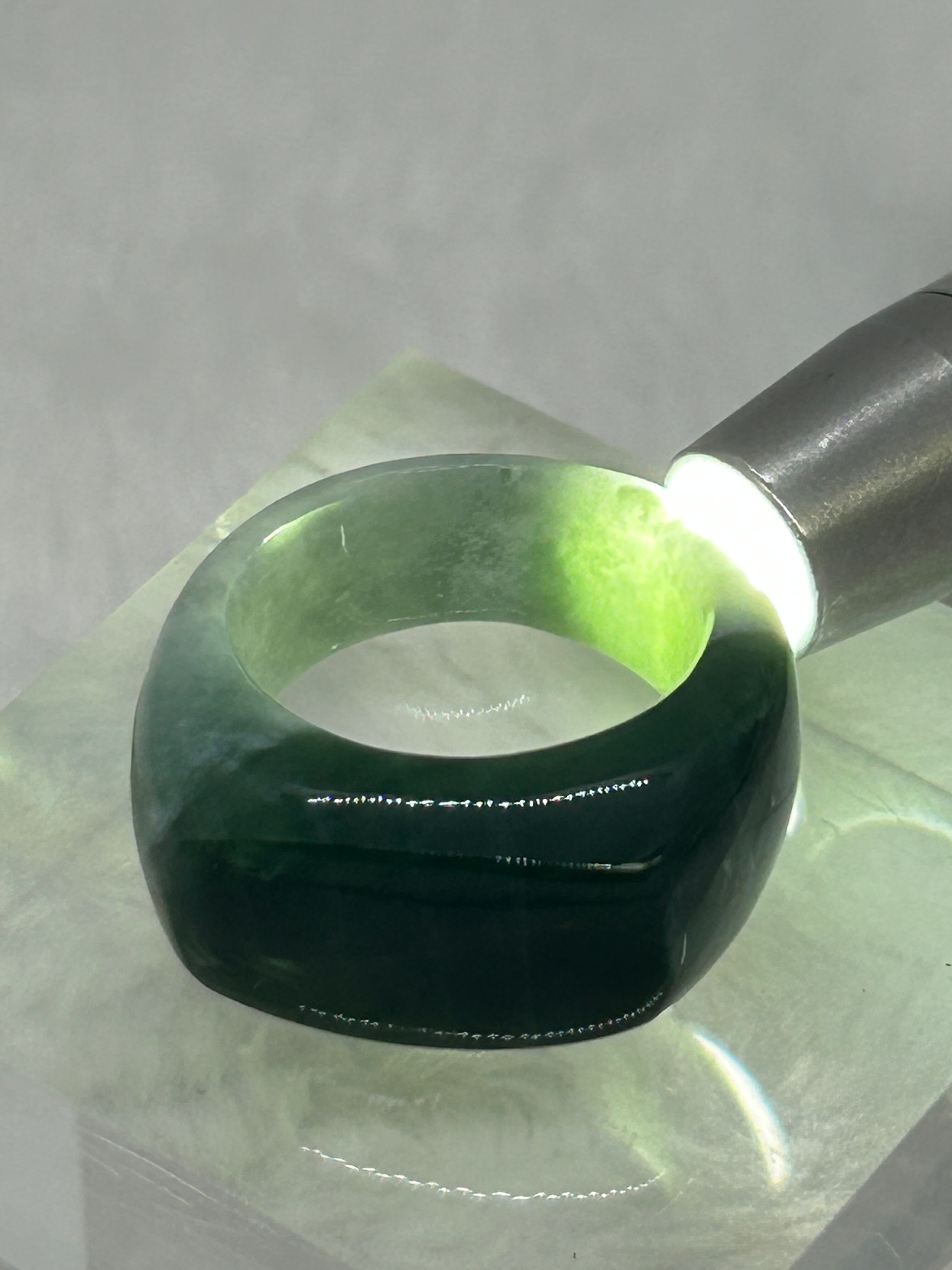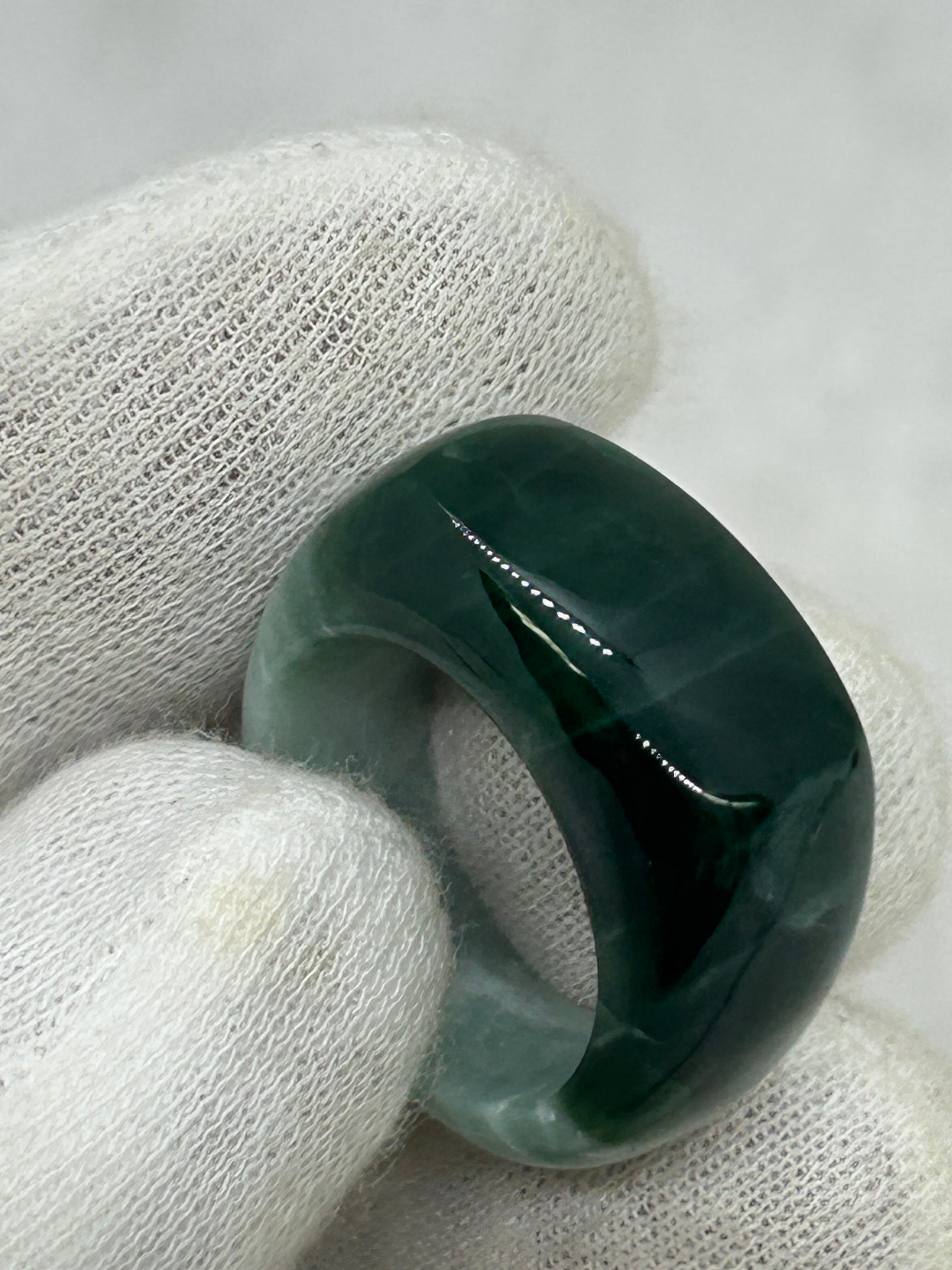 濃緑色 糸魚川翡翠 ツートンカラー くり抜きリング11.5号