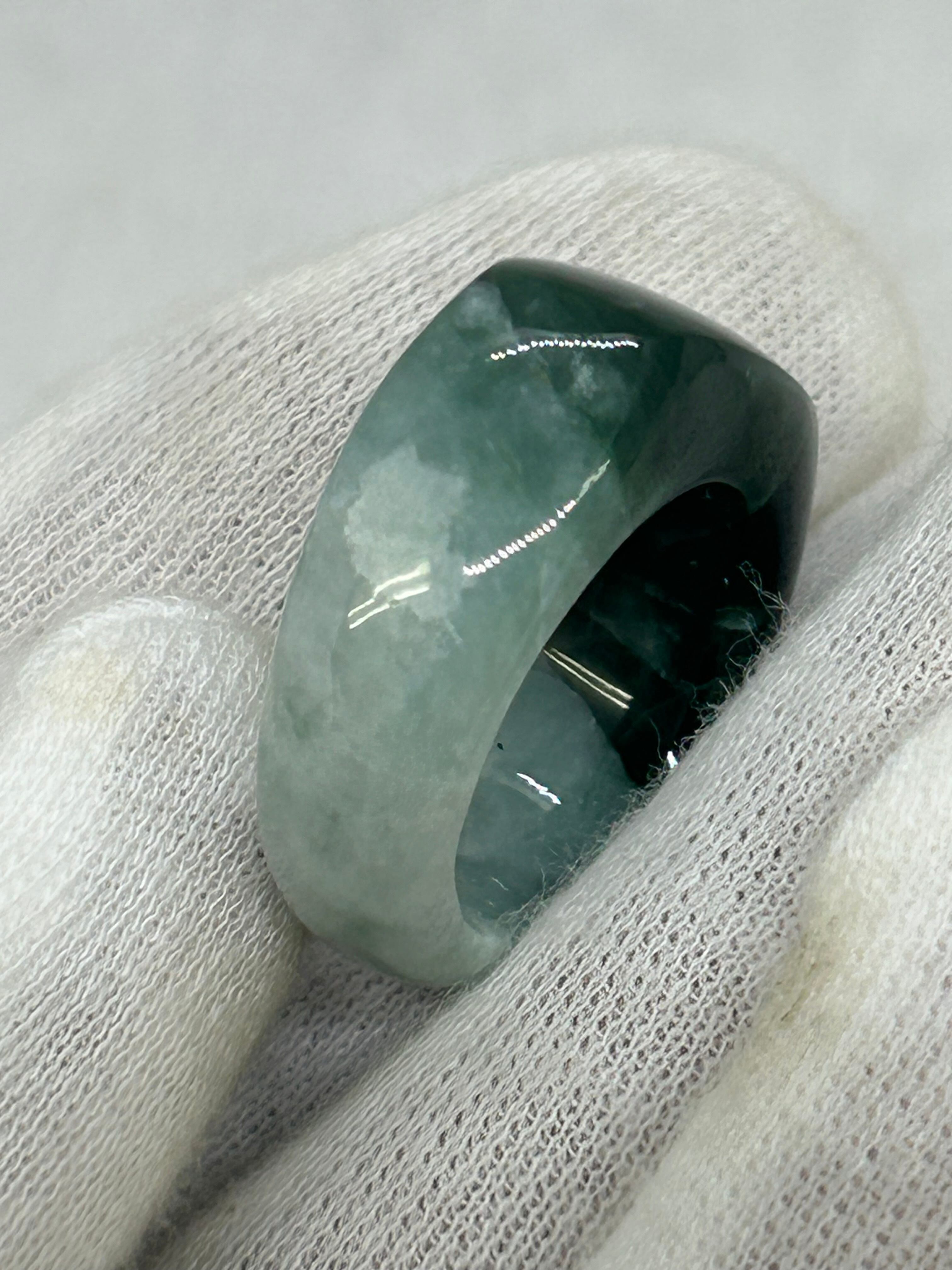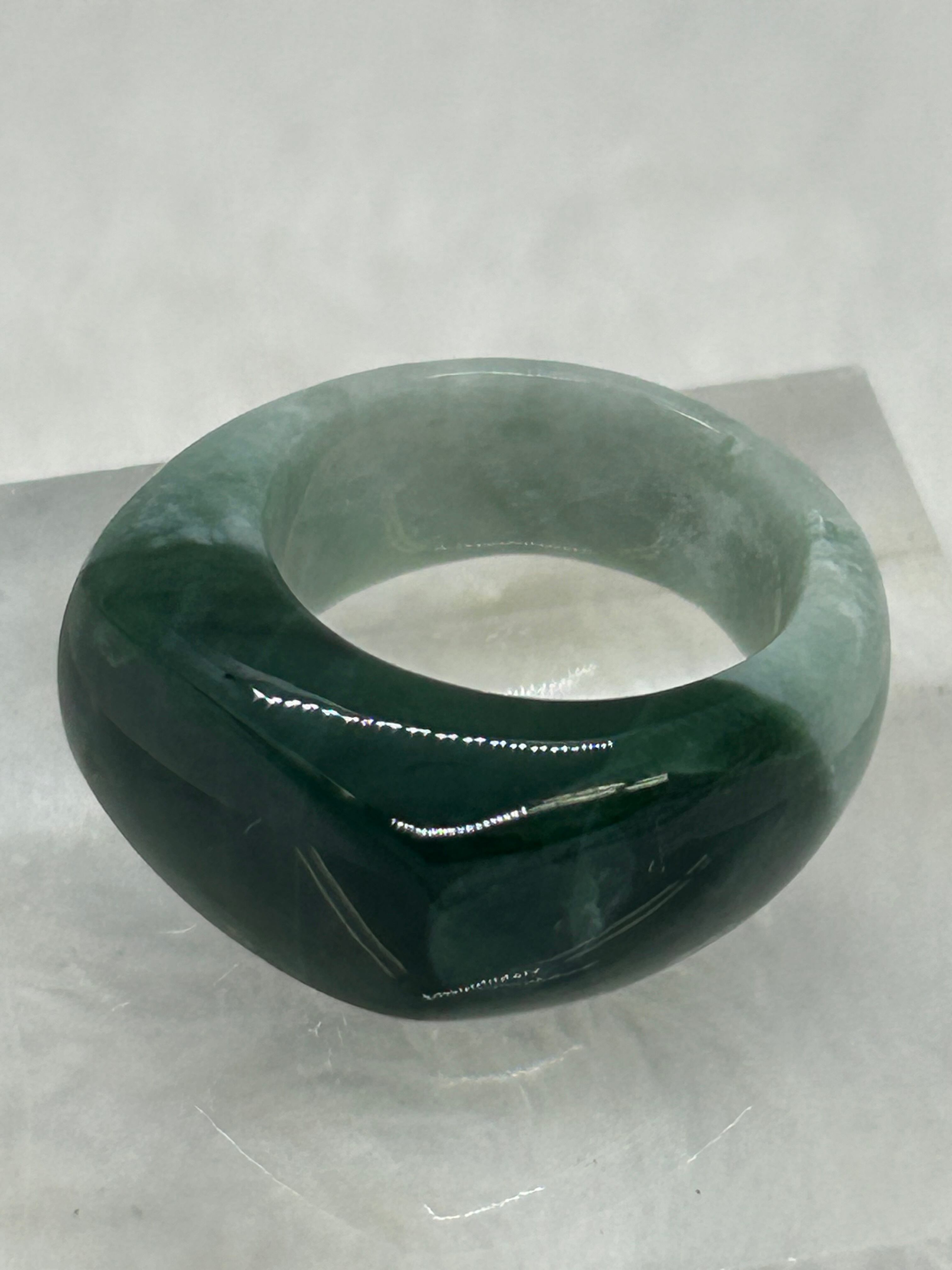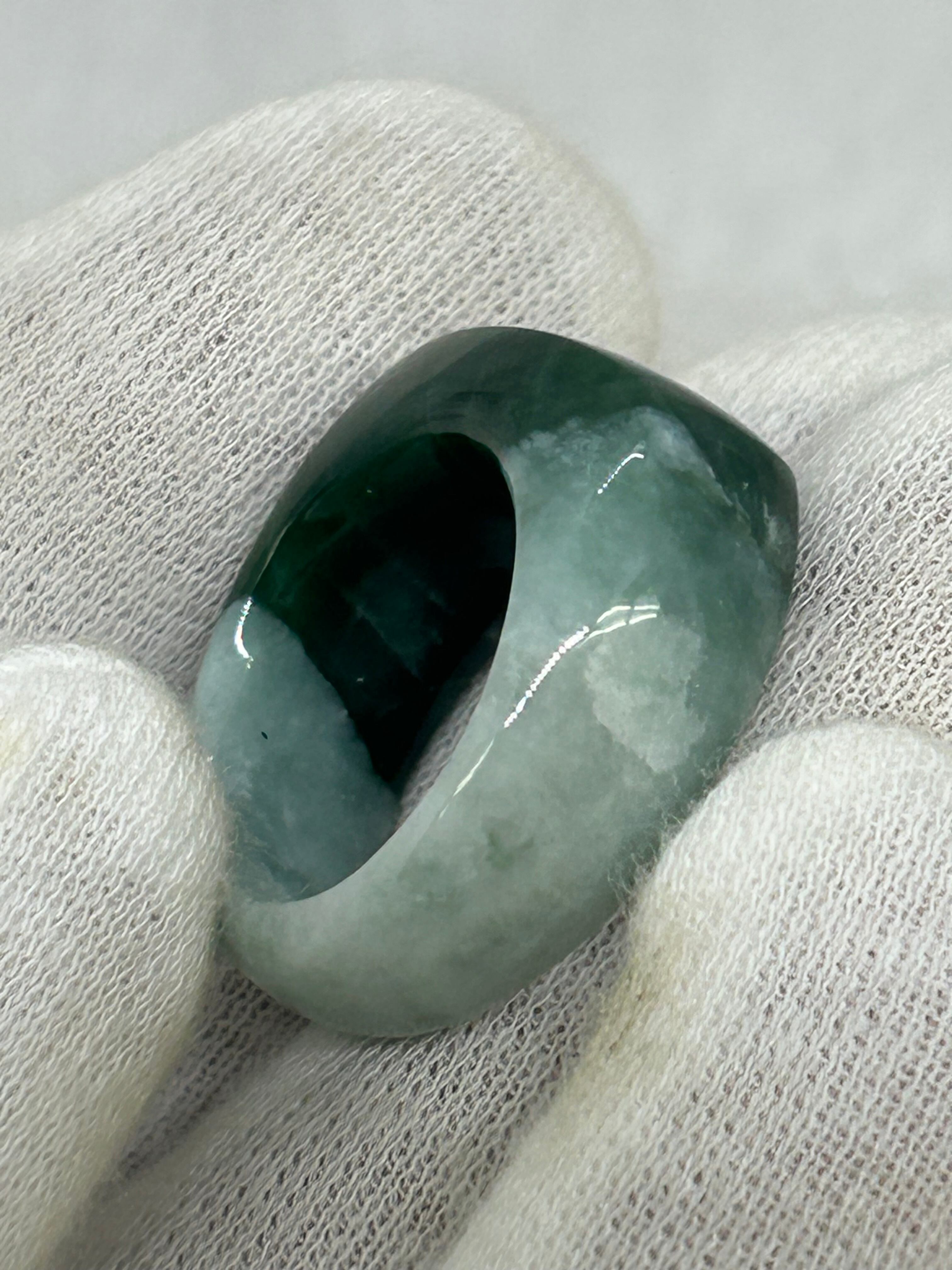 濃緑色 糸魚川翡翠 ツートンカラー くり抜きリング11.5号