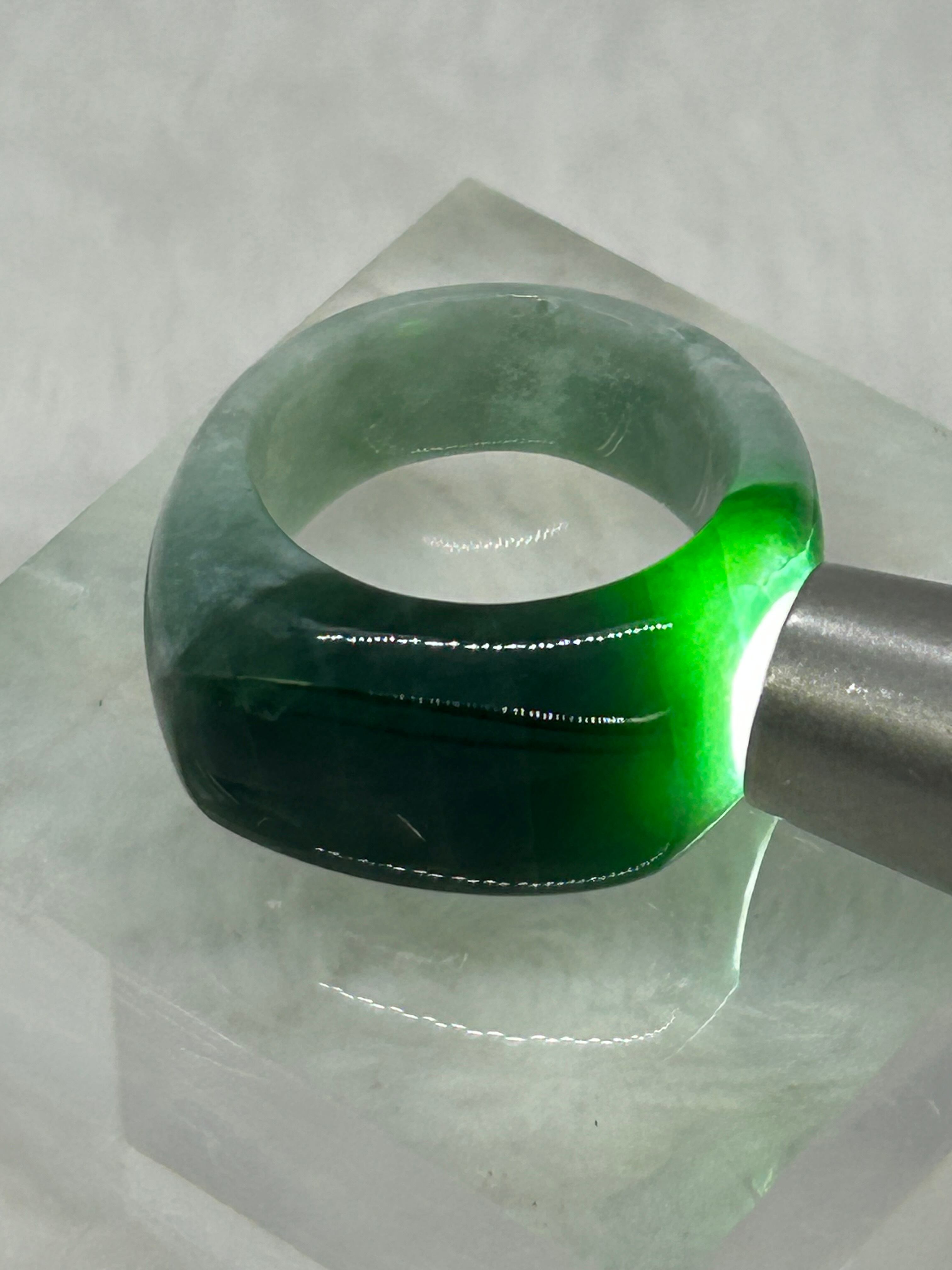 翡翠の石目が有ります。リングの強度を保つ為に削らずに残しています。