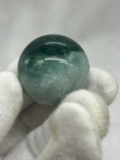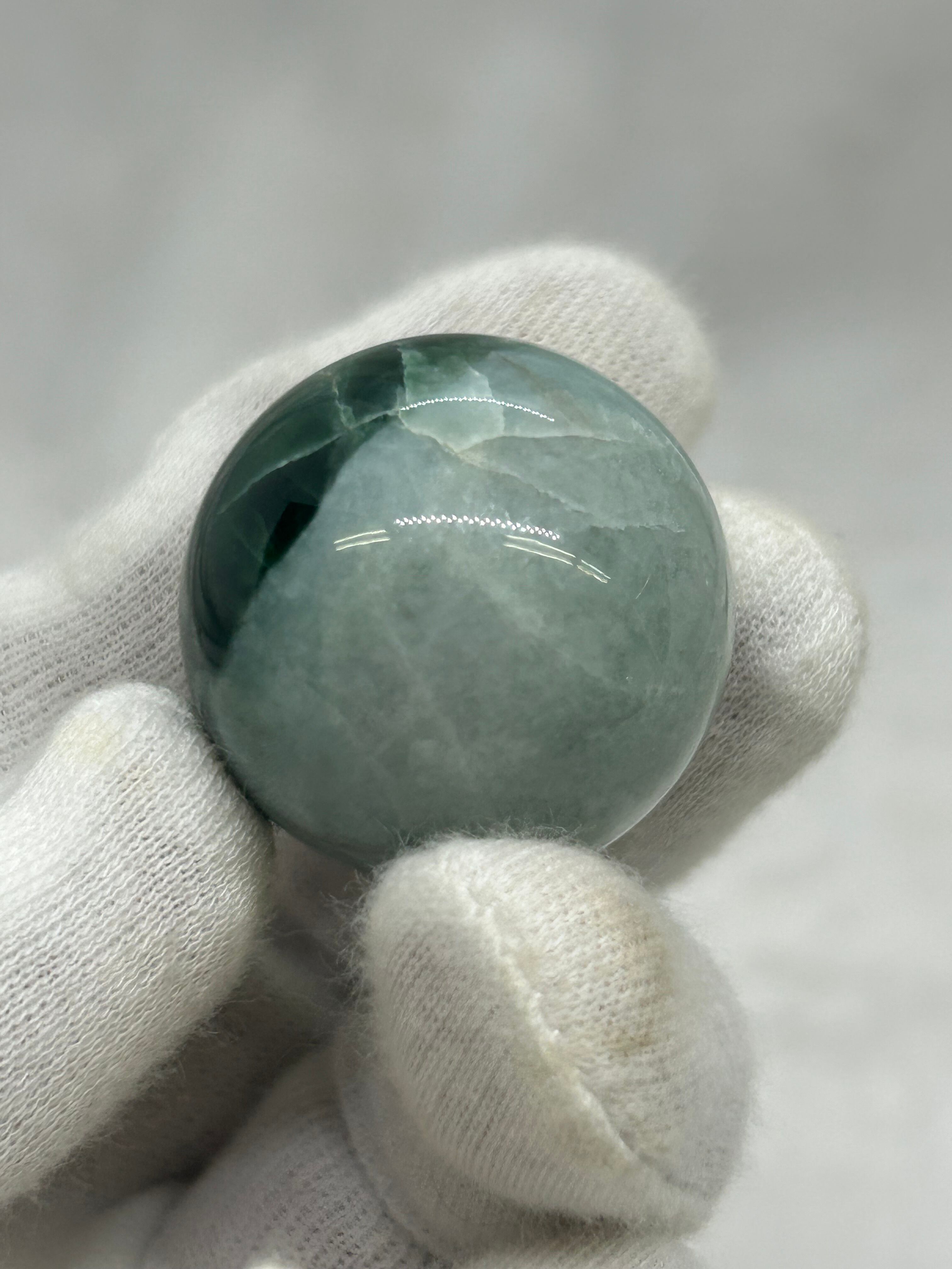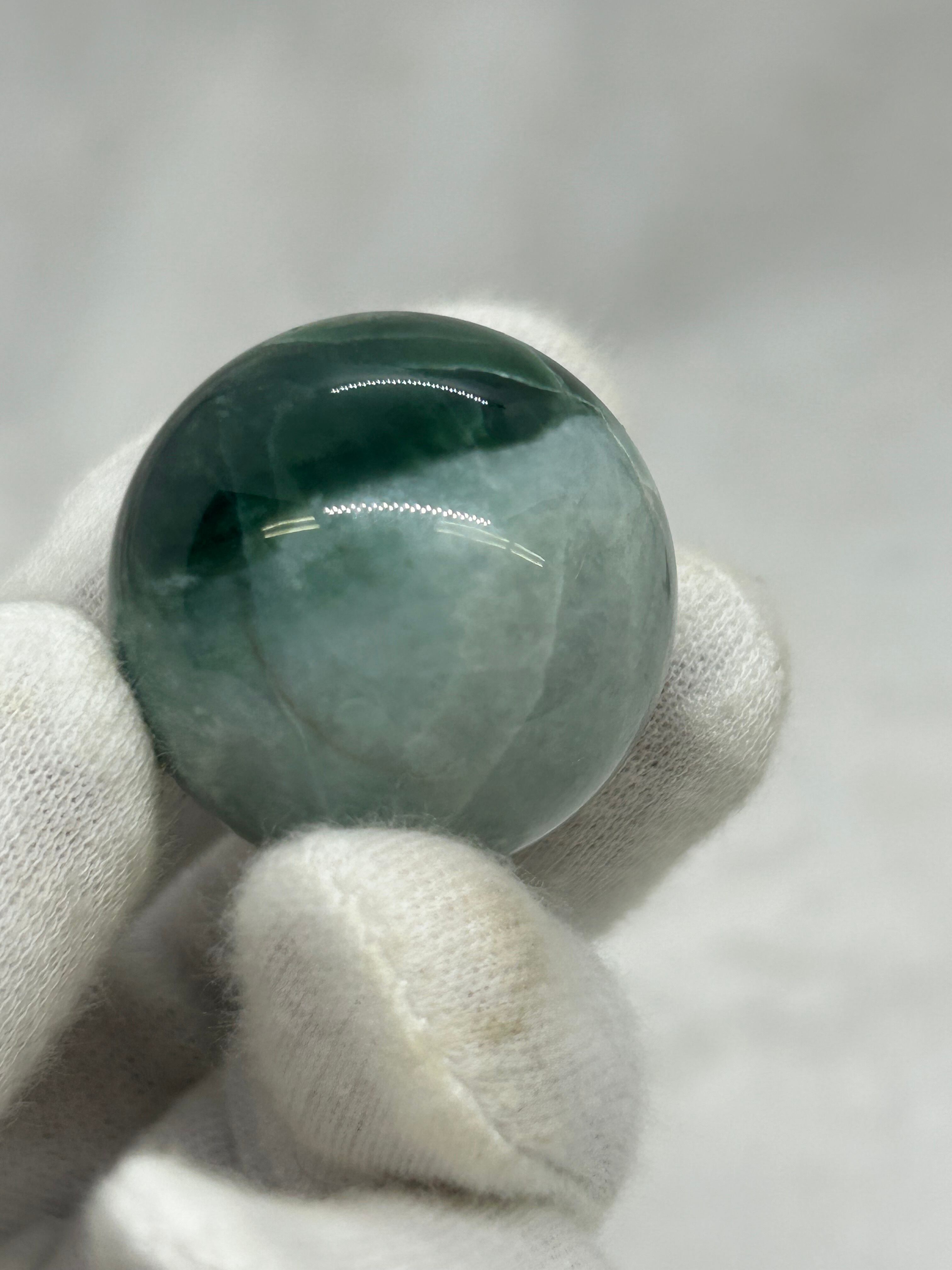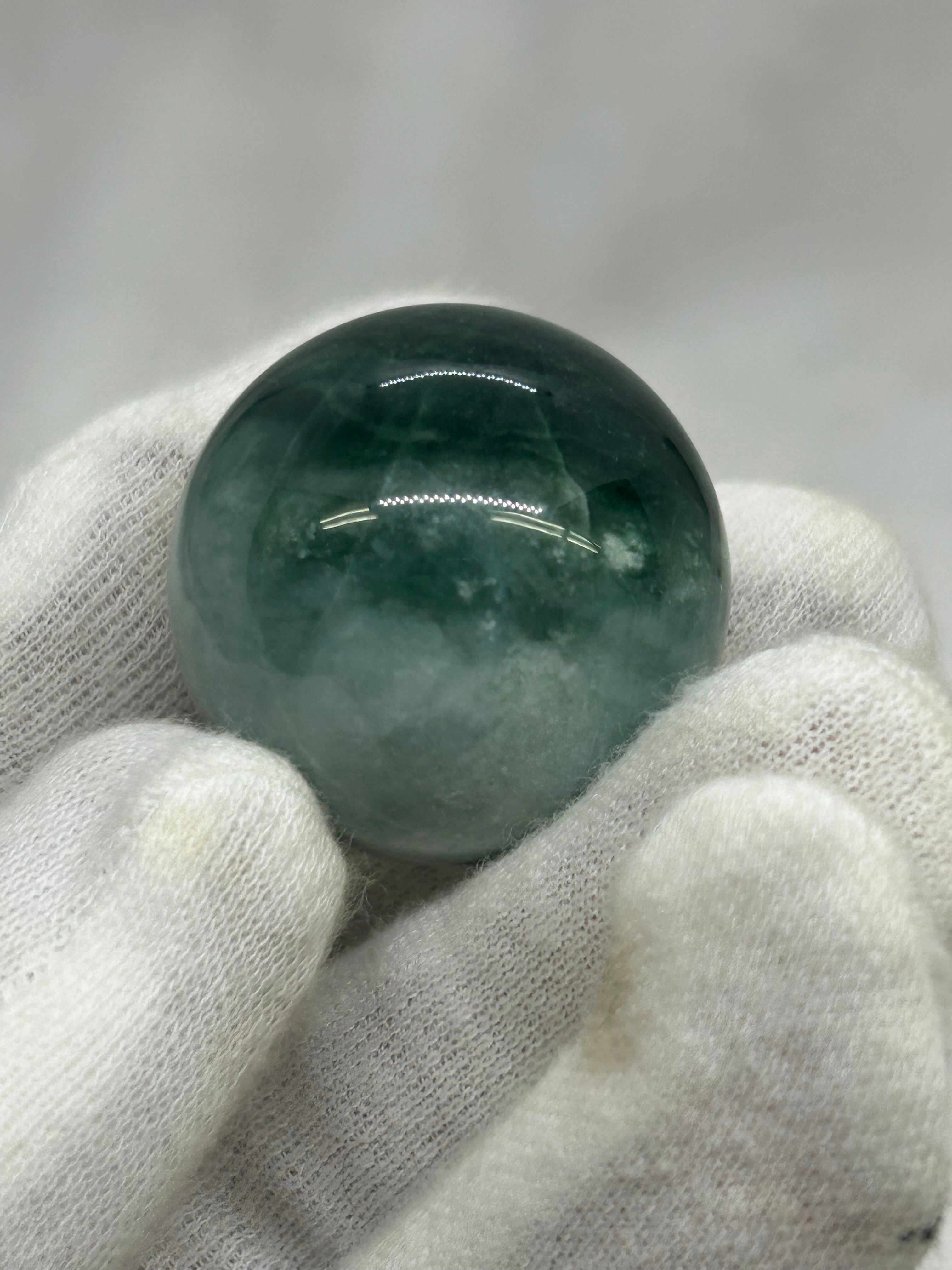 この丸玉は石目(クラック)が比較的少なく緑と白のコントラストで大変美しい色合いとなっています。