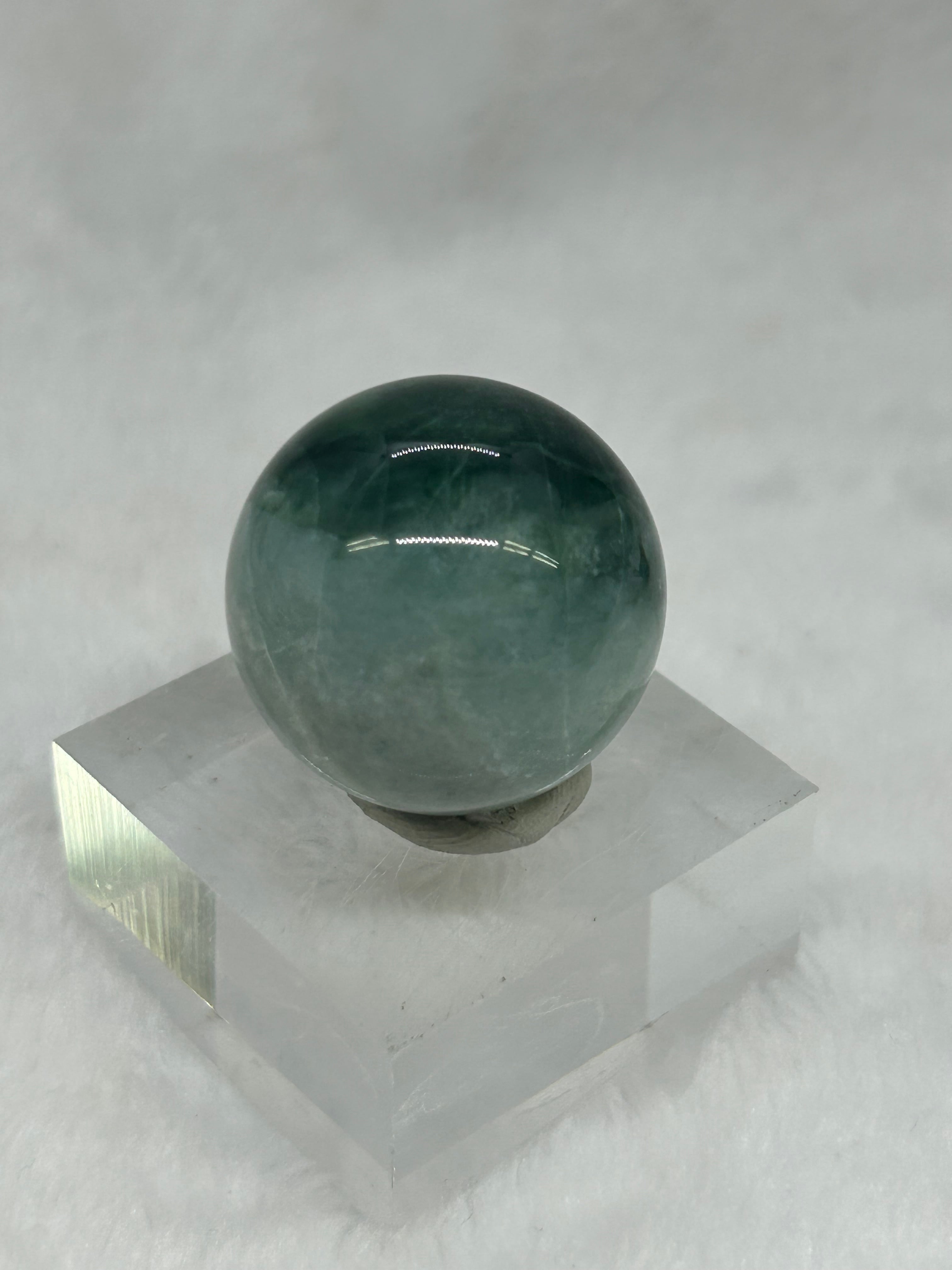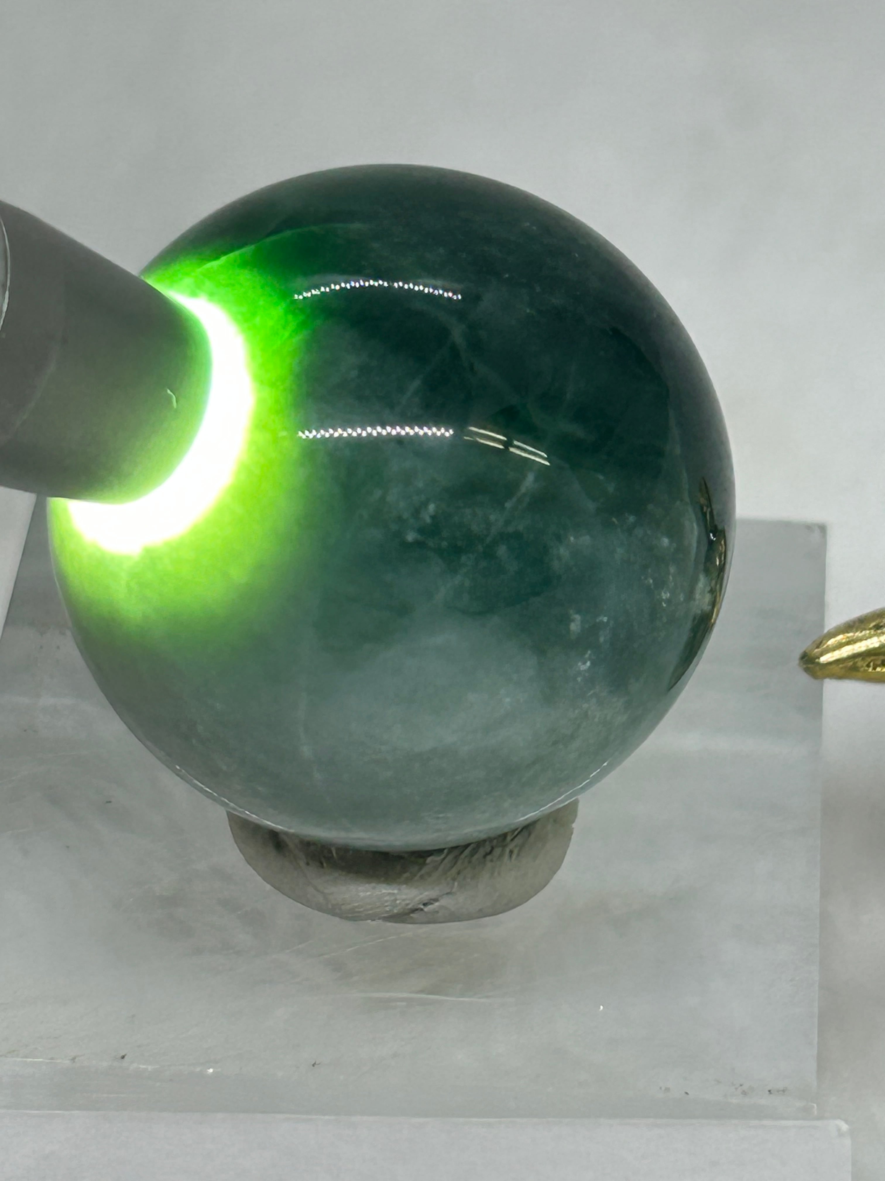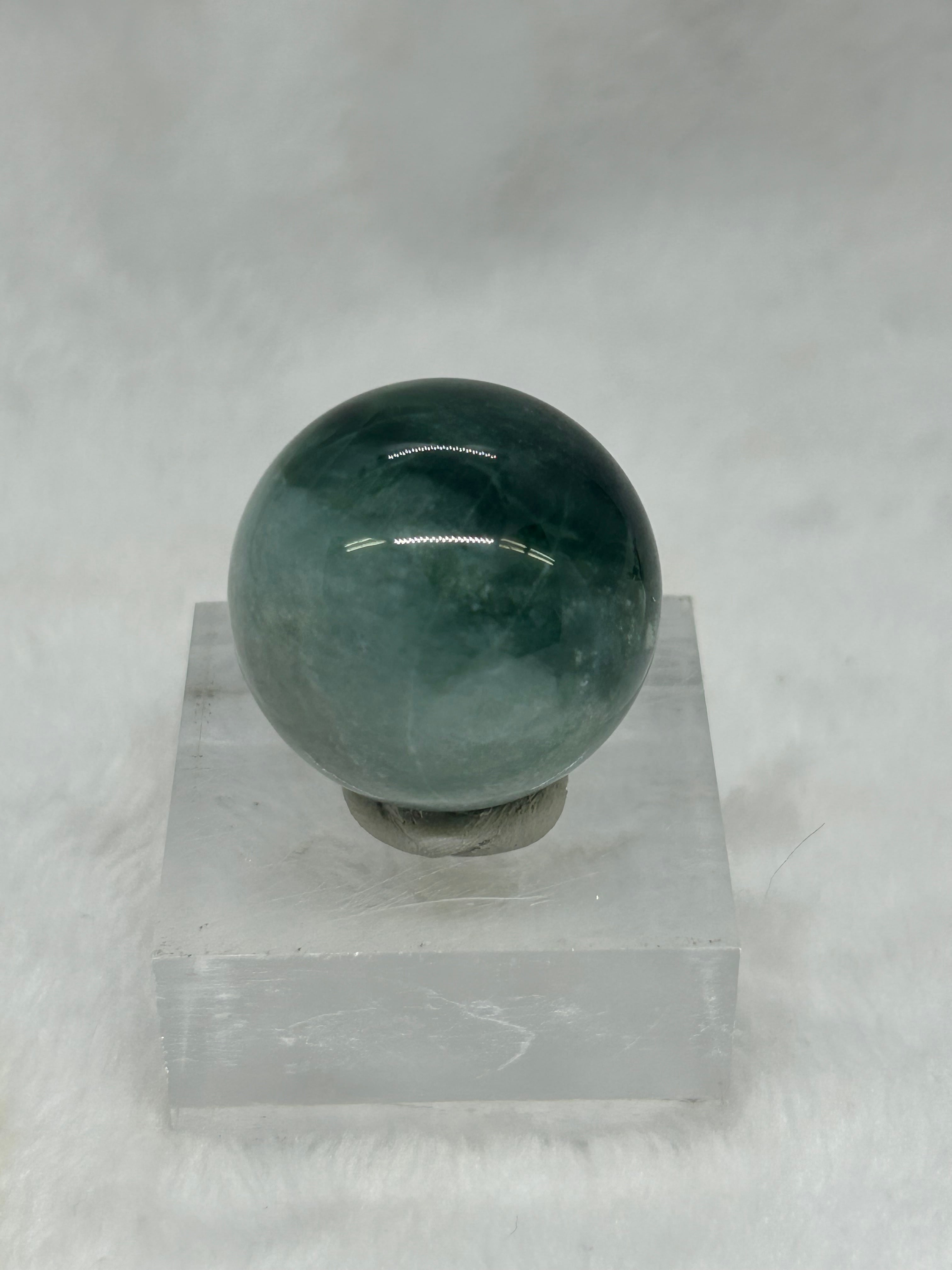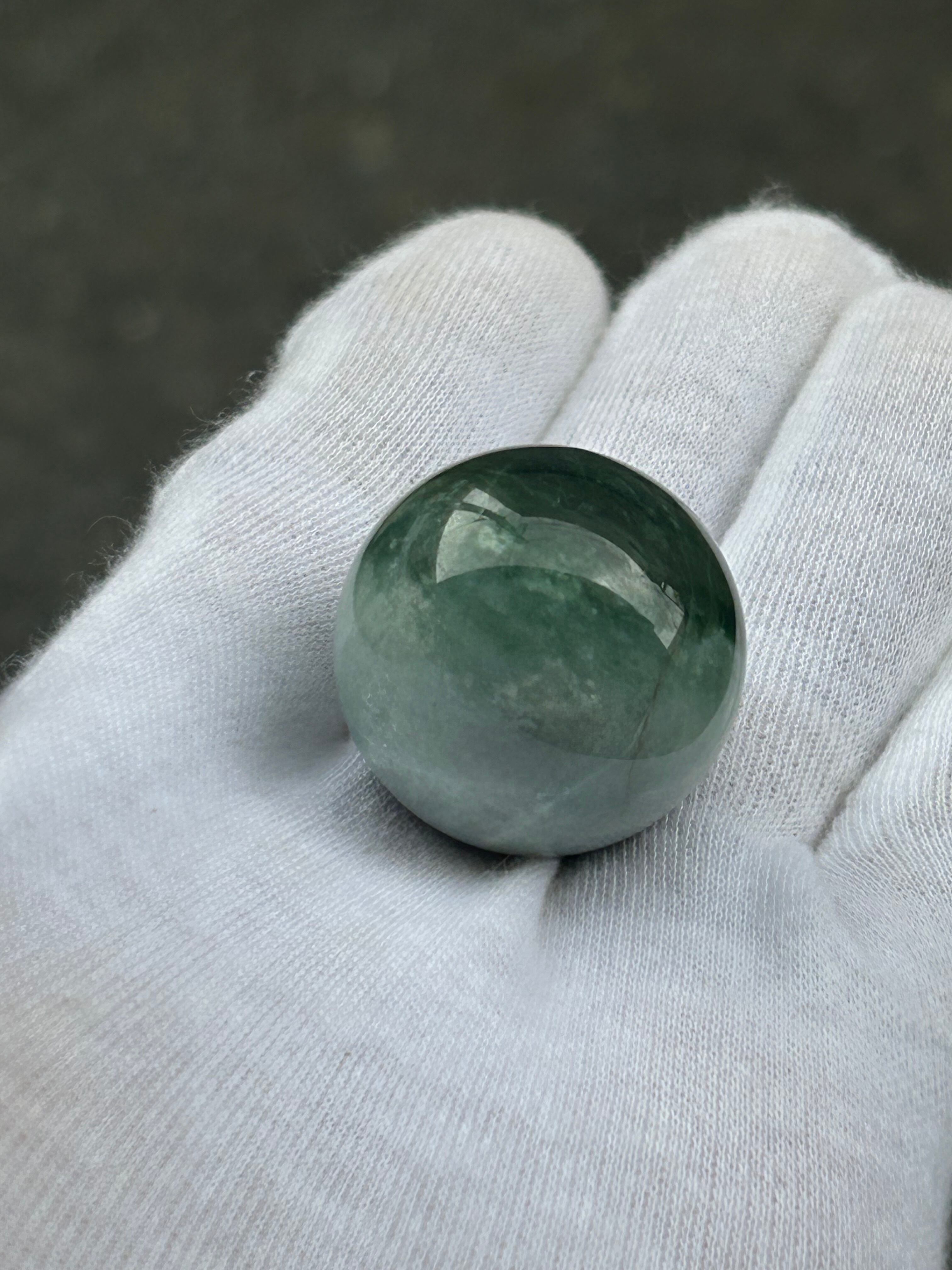 この丸玉は石目(クラック)が比較的少なく緑と白のコントラストで大変美しい色合いとなっています。
