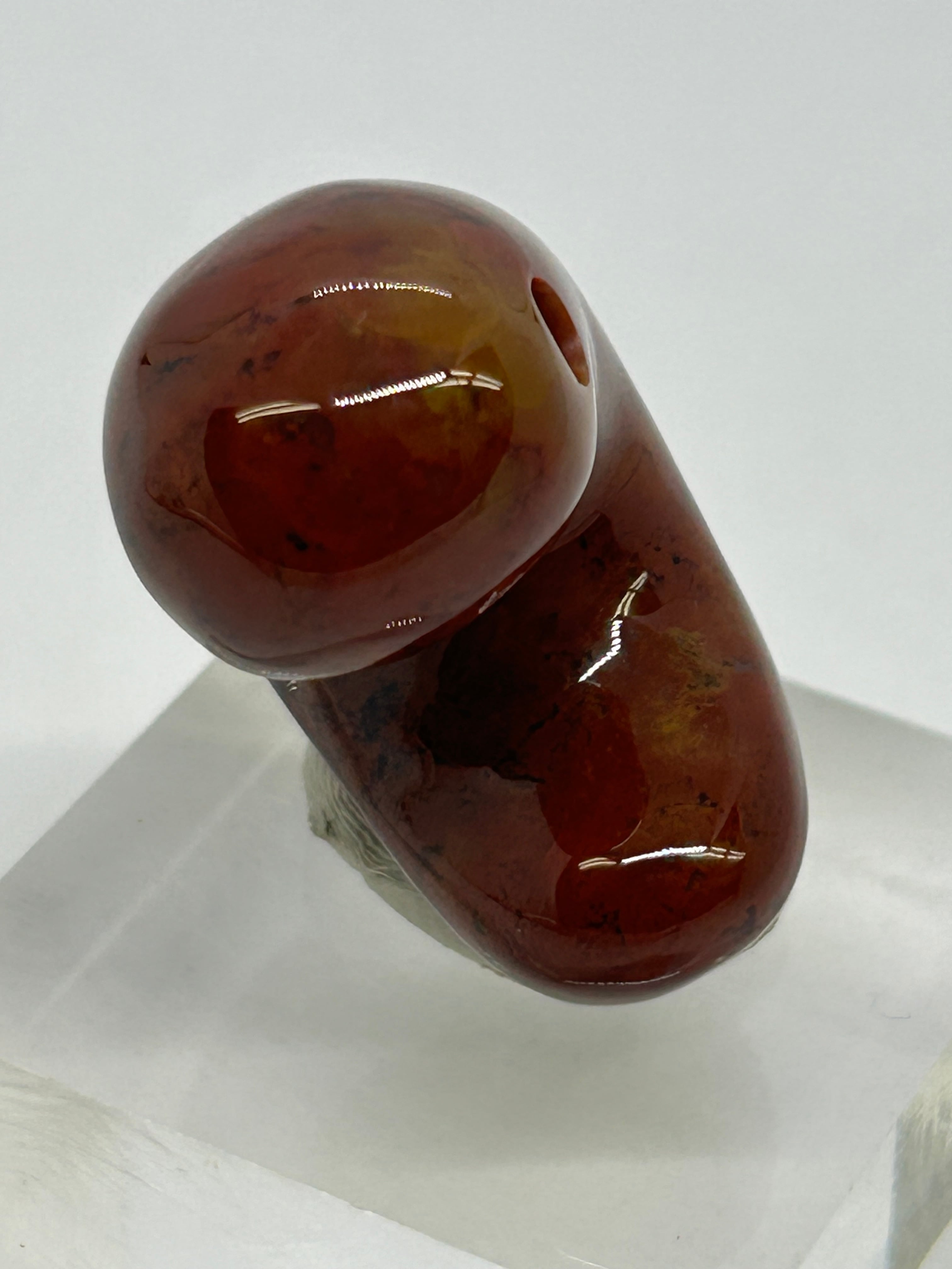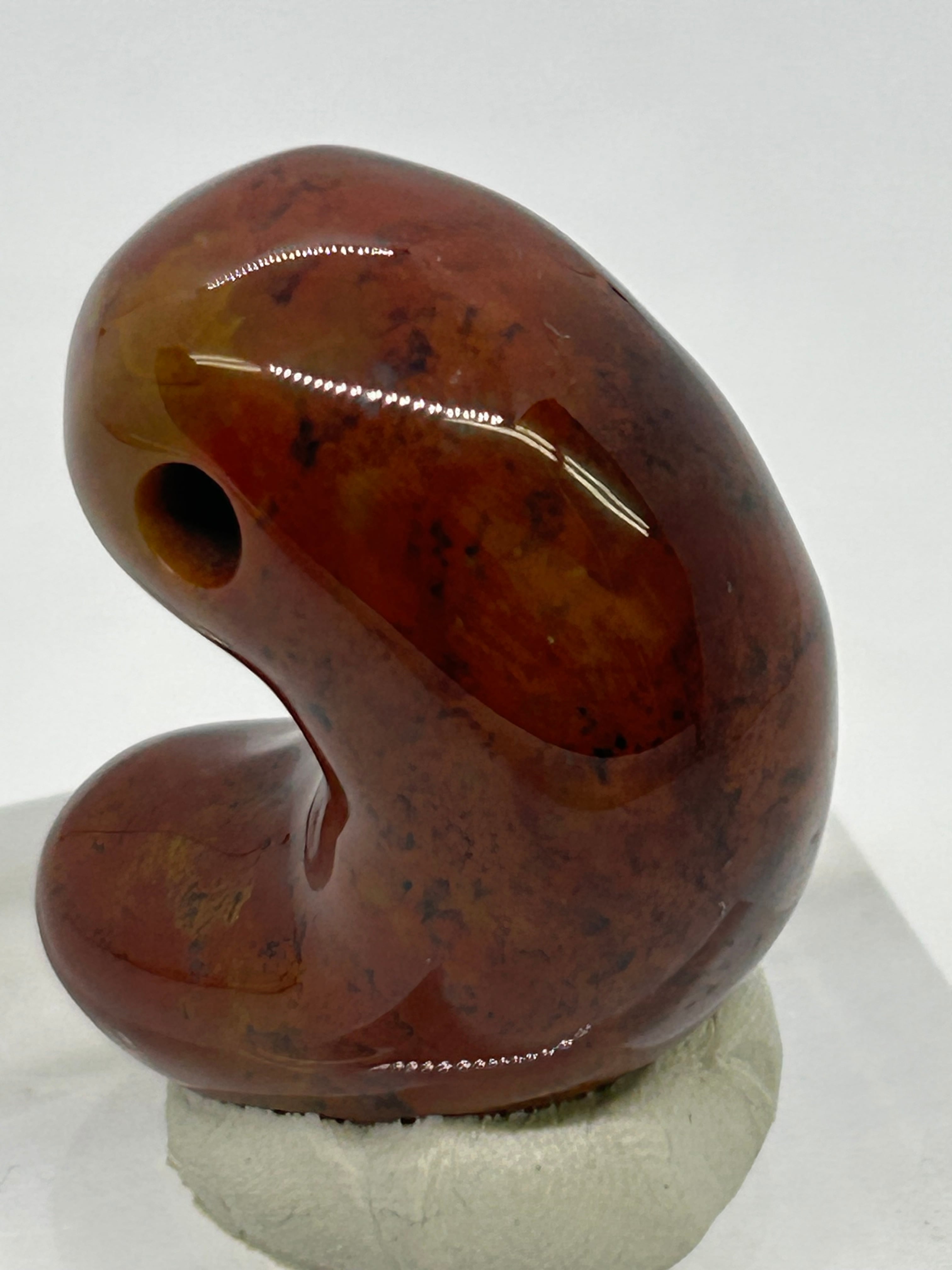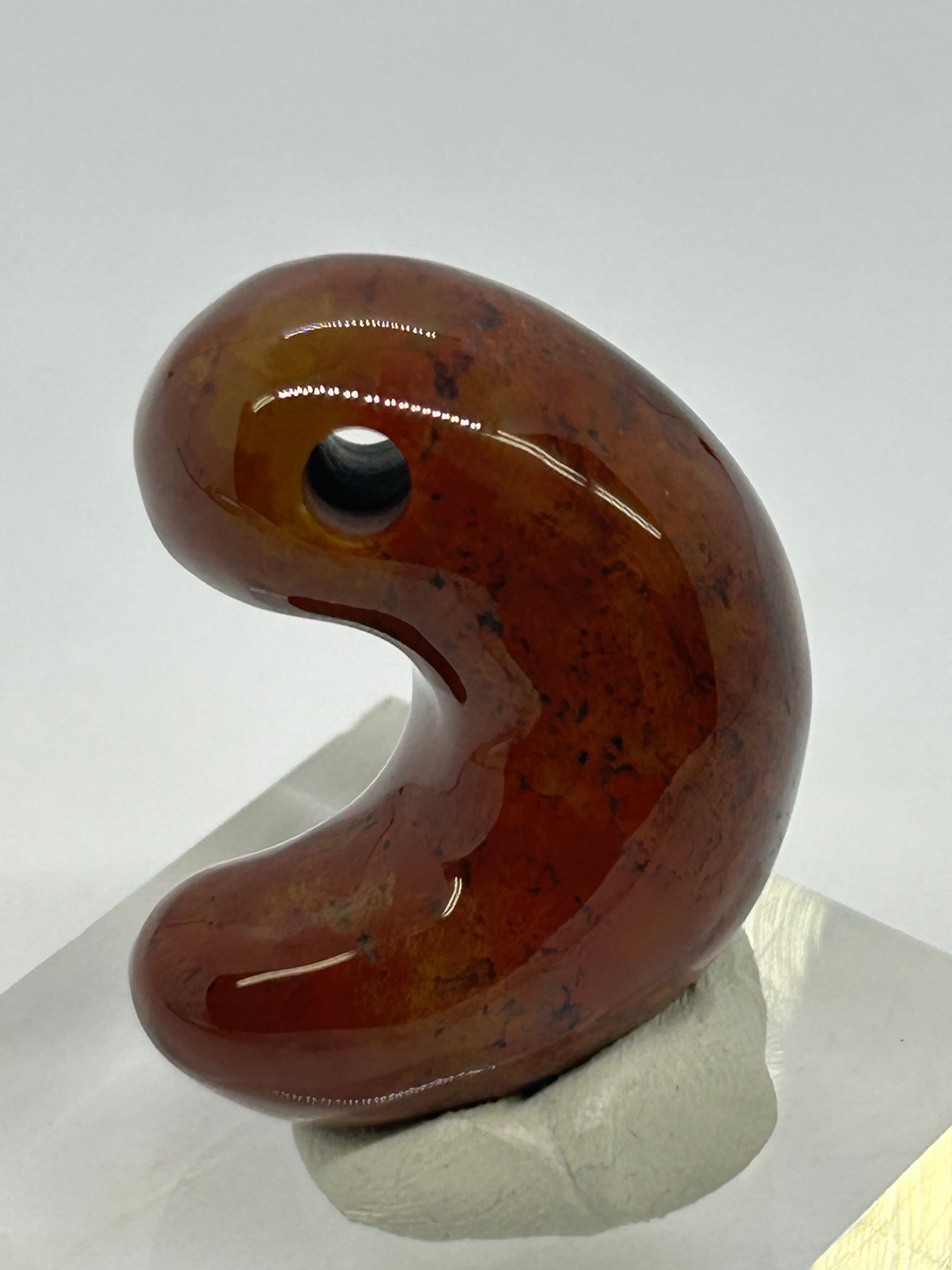福島県只見産のレッドジャスパー(赤碧玉)を勾玉にしました。