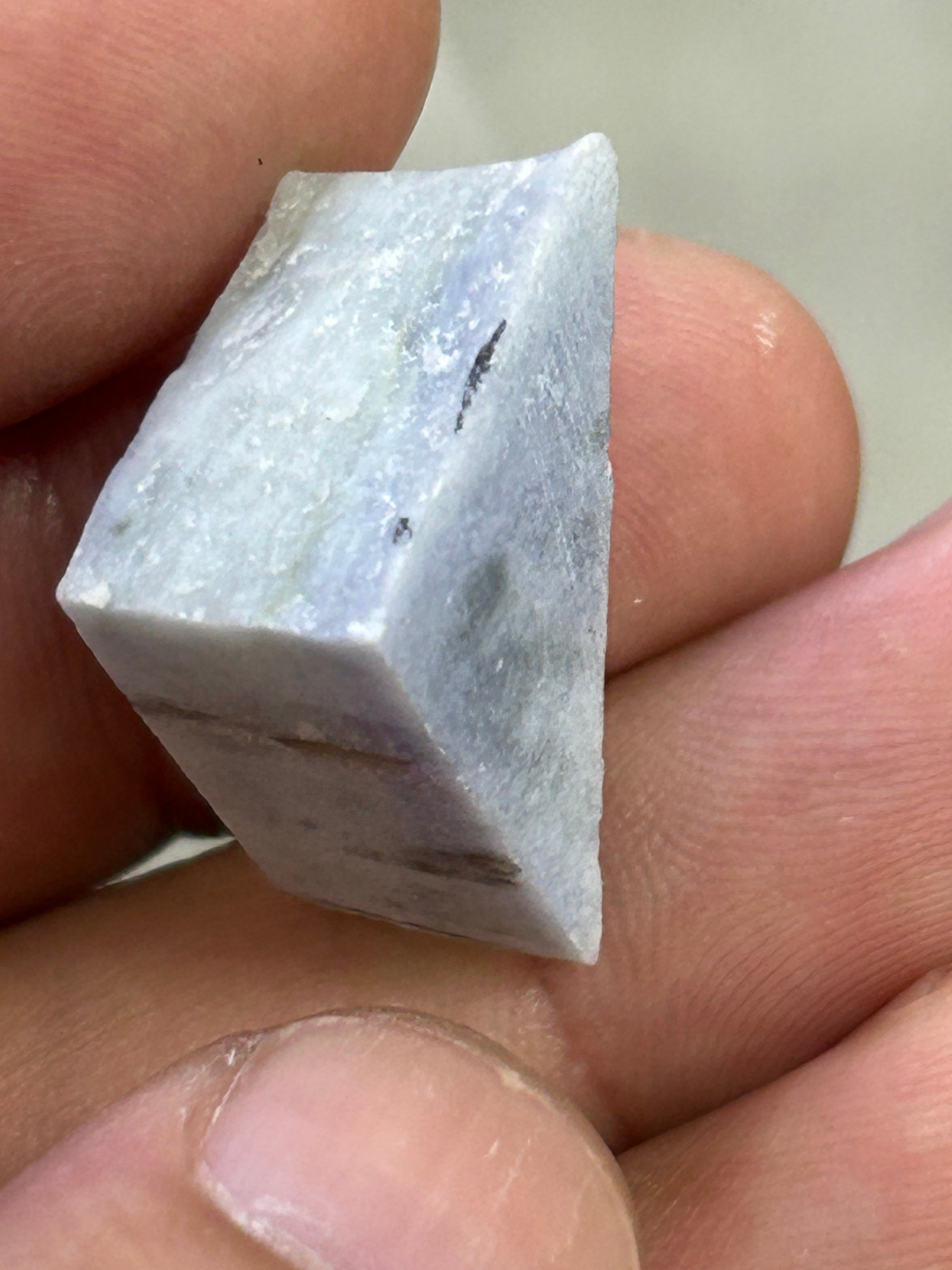 チタン(グレーから黒い点や線)を含む翡翠はラベンダー色になります。ルチルクォーツという水晶にルチル(チタン)が入った石がありますが、今回の勾玉は翡翠にルチル(チタン)が入っています。