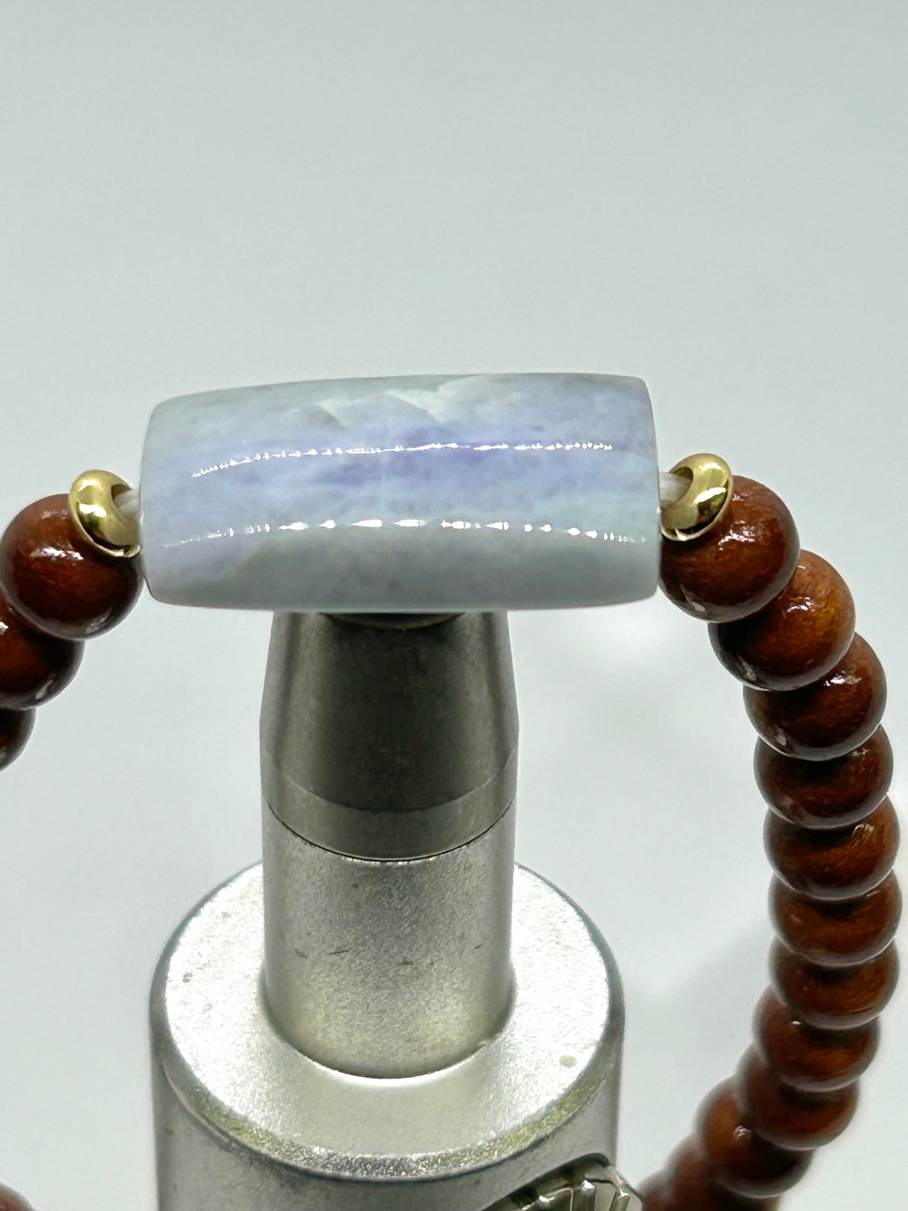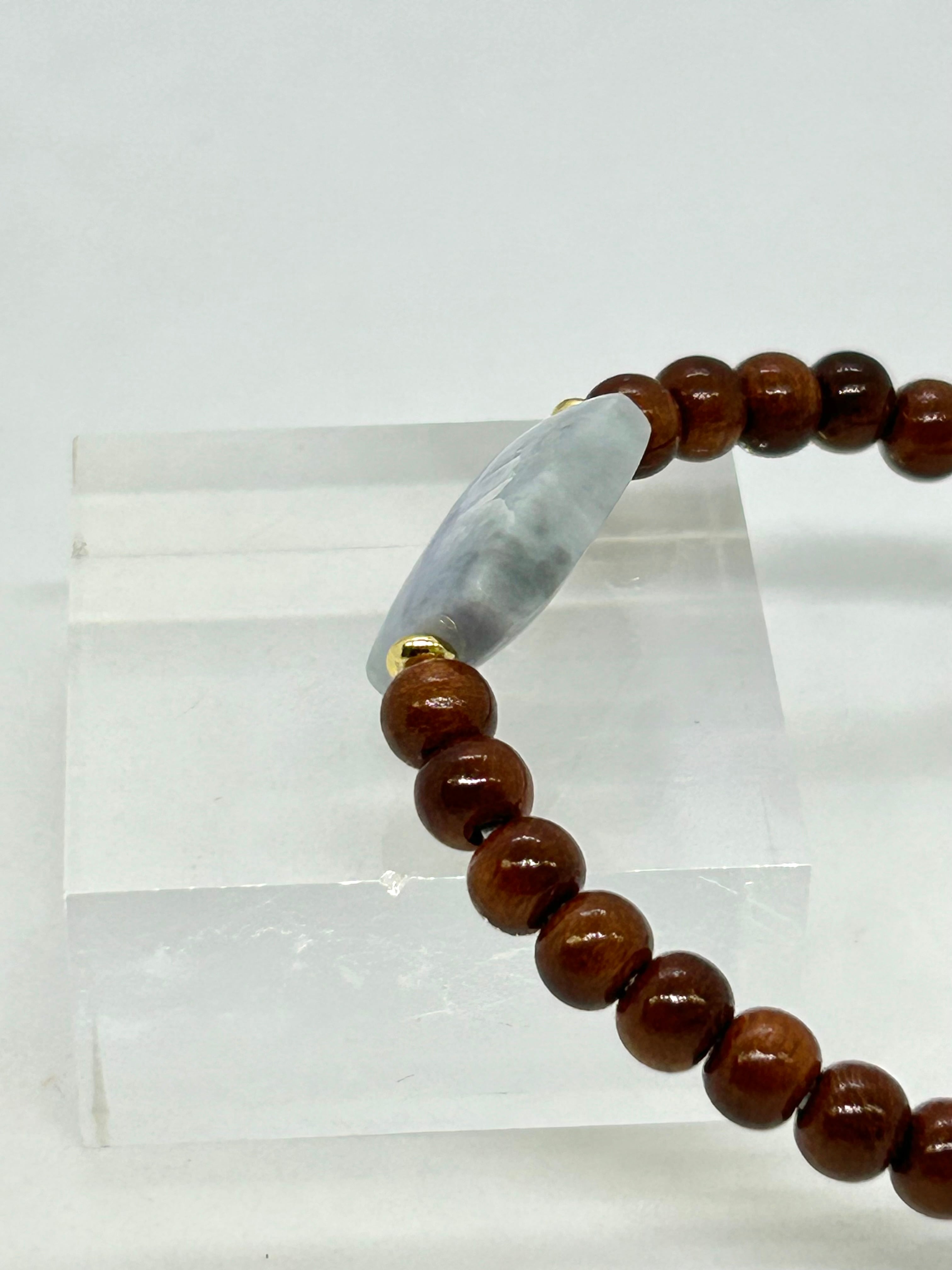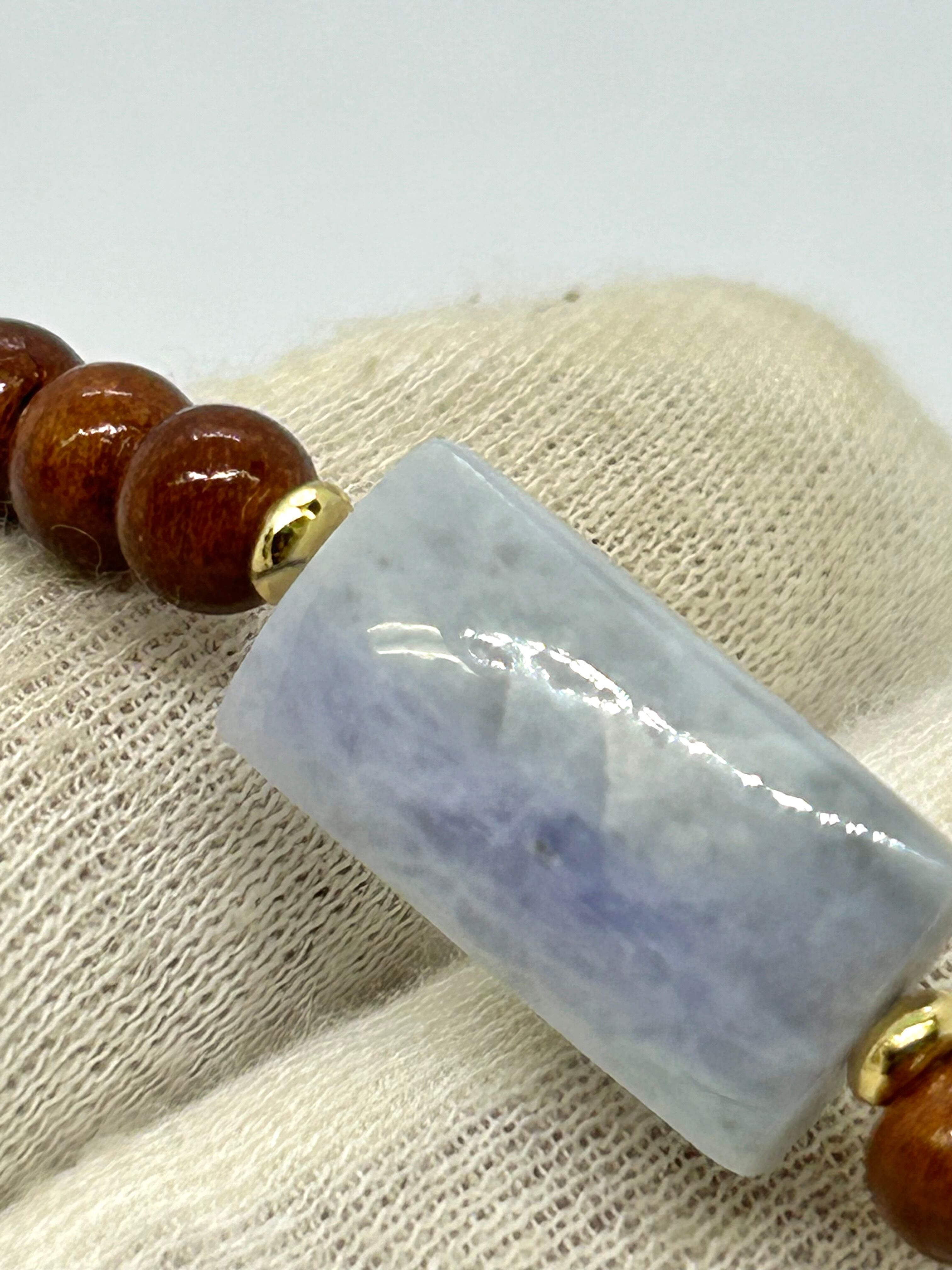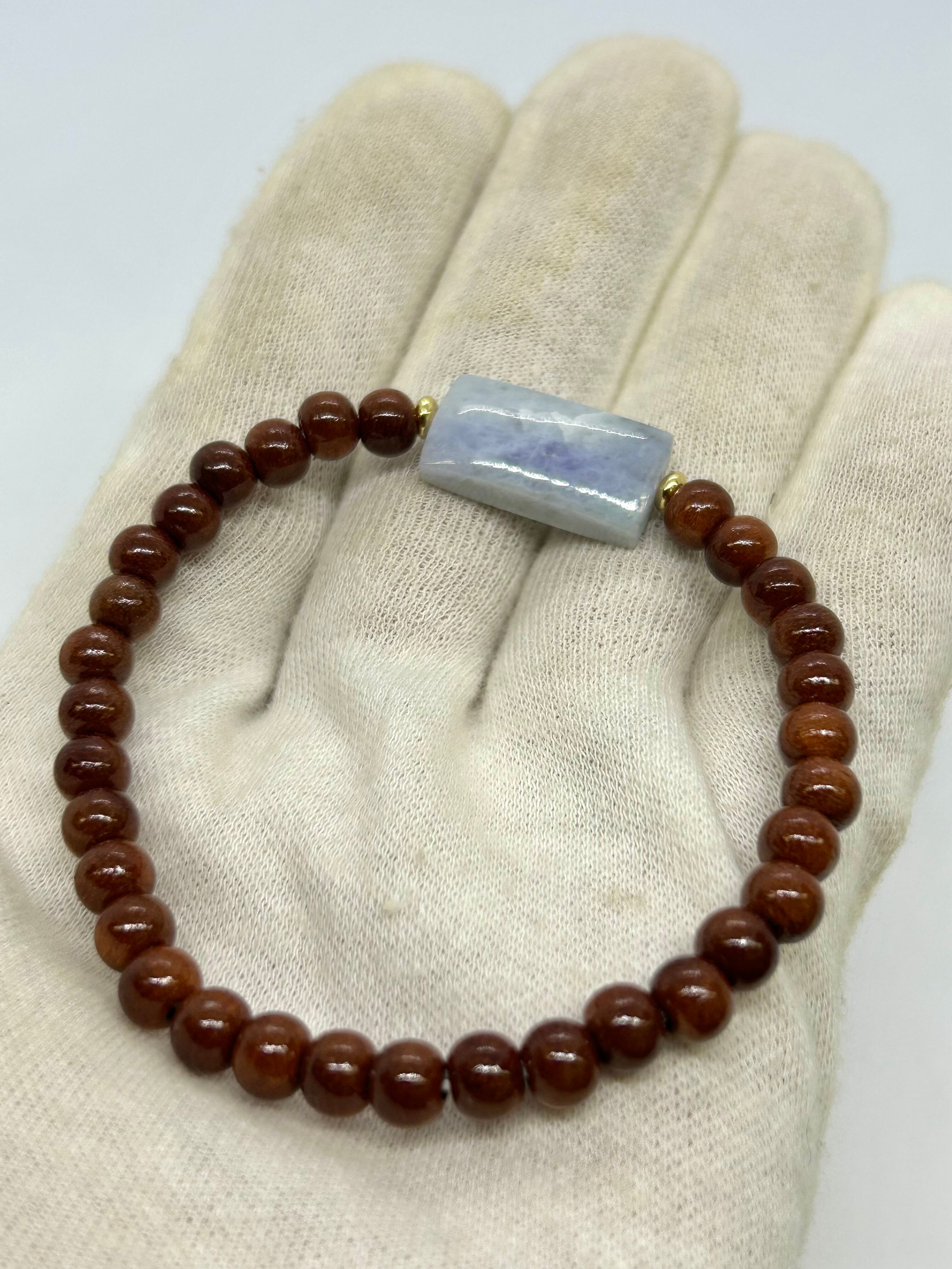 糸魚川青海産のラベンダー翡翠から、四角形のビーズを作成して、国産桜の木ビーズと組み合わせてシンプルなブレスレットにいたしました。
