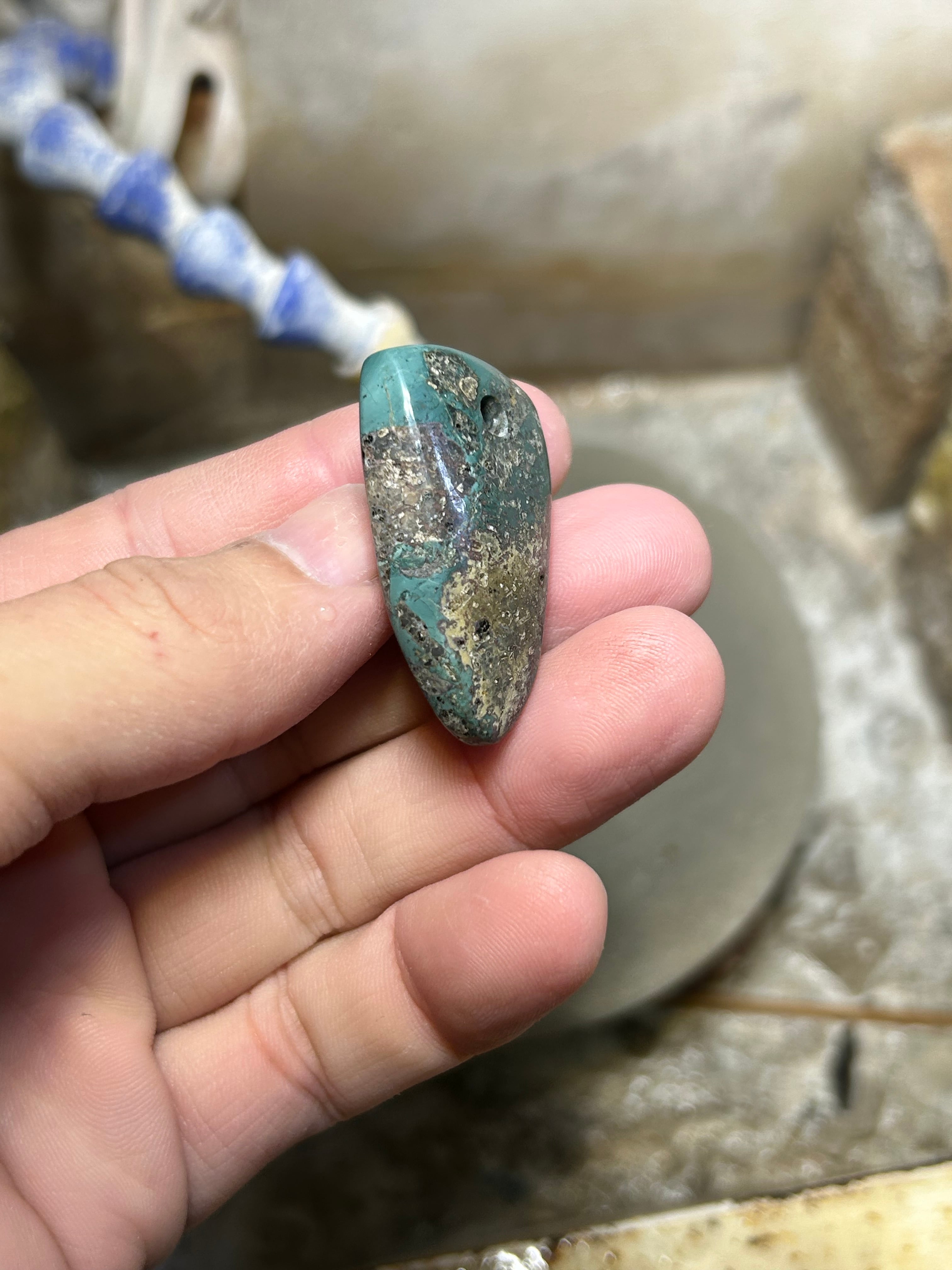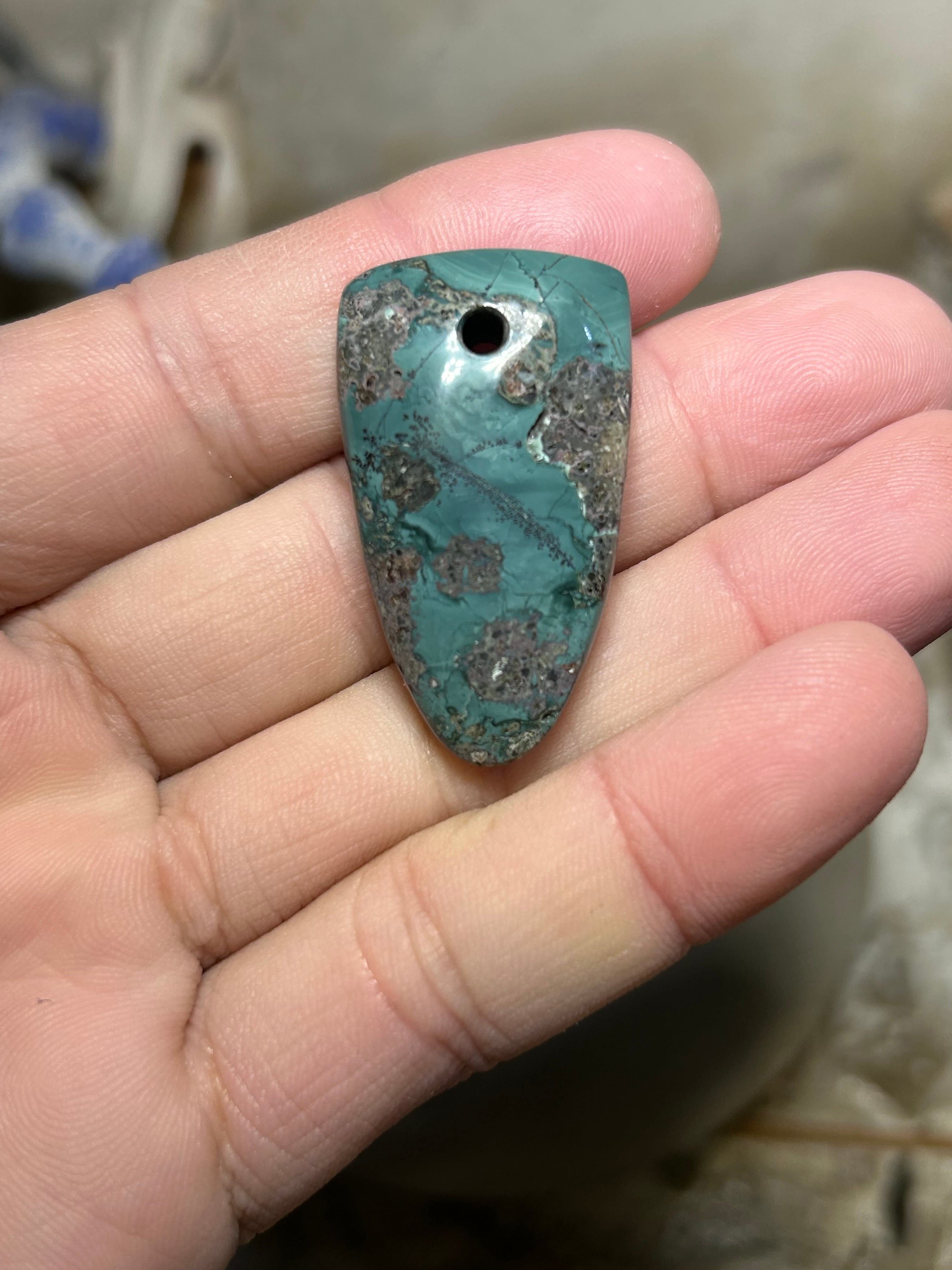 出雲石の安山岩を含む石からペンダントトップを、作成しました。