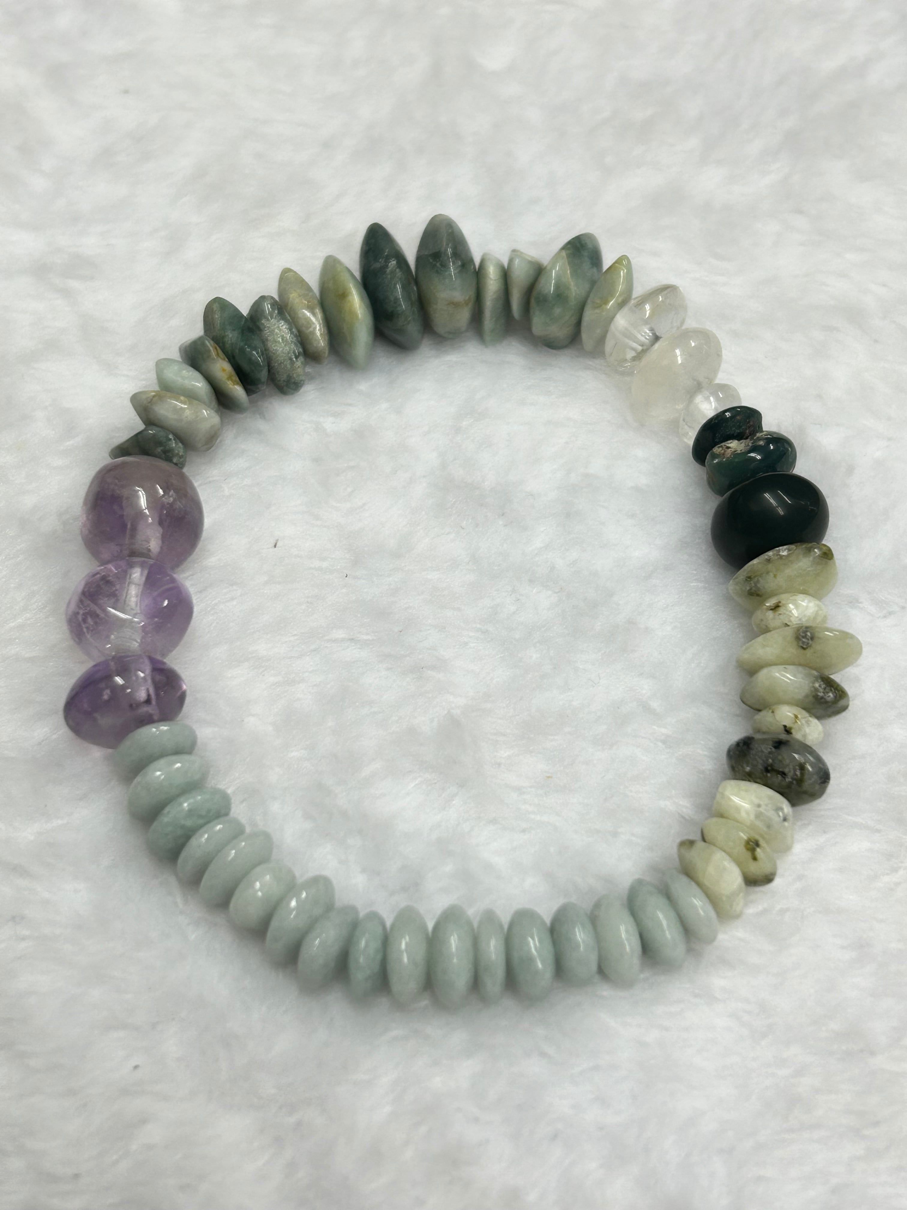 国産鉱物のサザレ石を集めて、それを1つのブレスレットにしました。