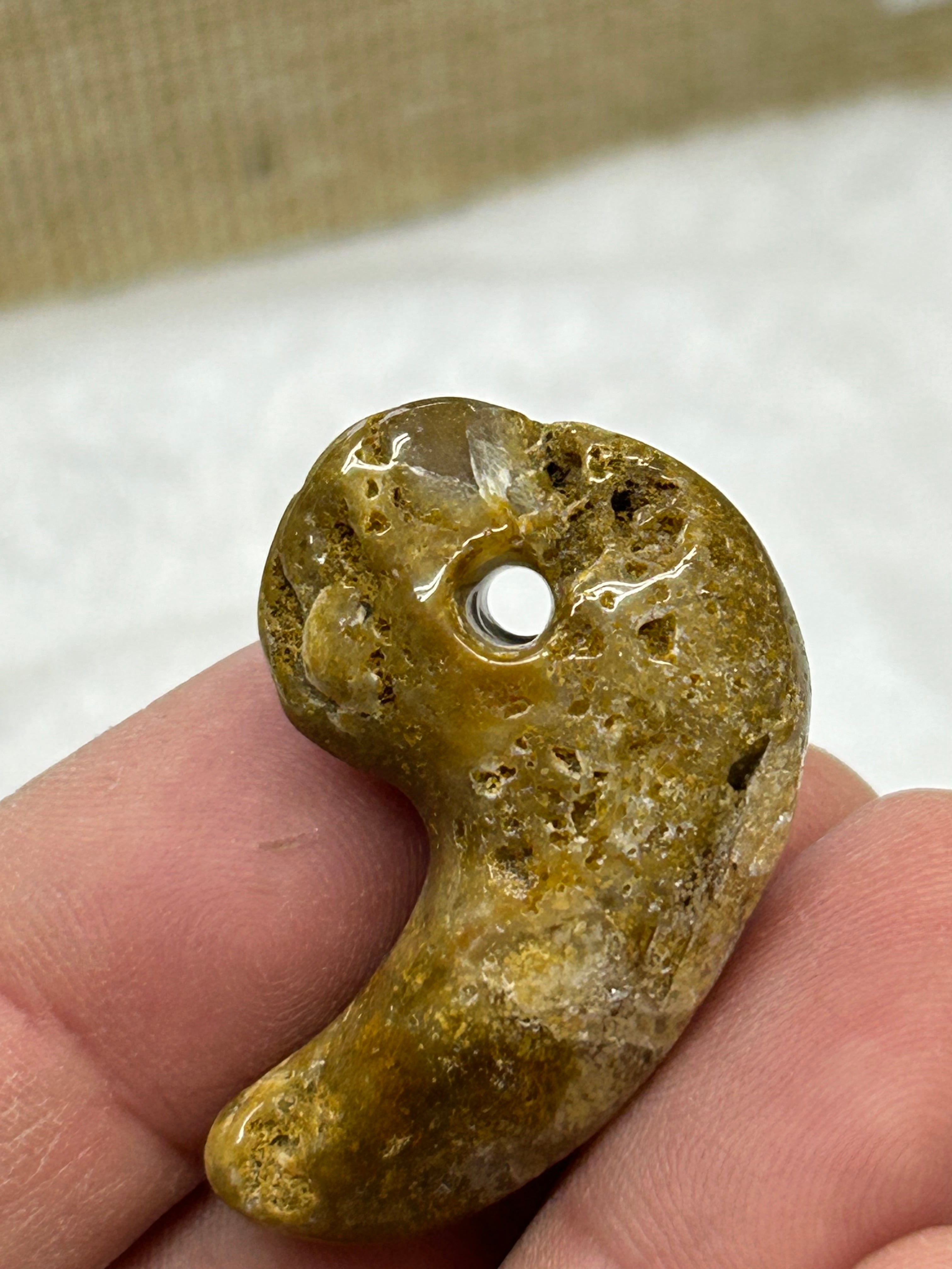 表面は滑らかに仕上げられ、微細なクラックが見られることがありますが、これは天然石の証です。この勾玉を身に着けることによって、心の平穏を得ながら、あなたの個性を引き立てるアクセントとして楽しむことができるでしょう!ぜひ手に取って、その魅力を体感してください。
