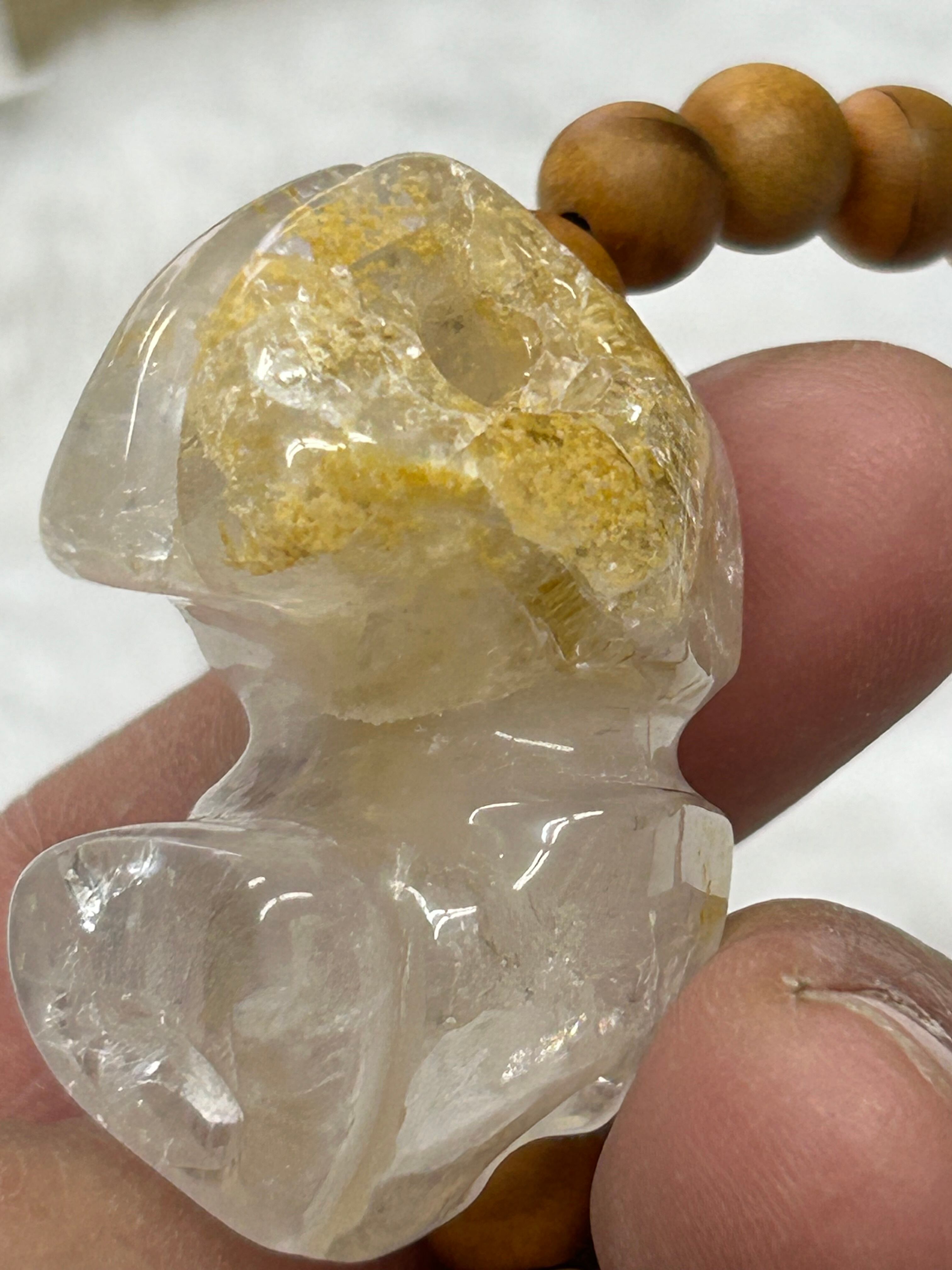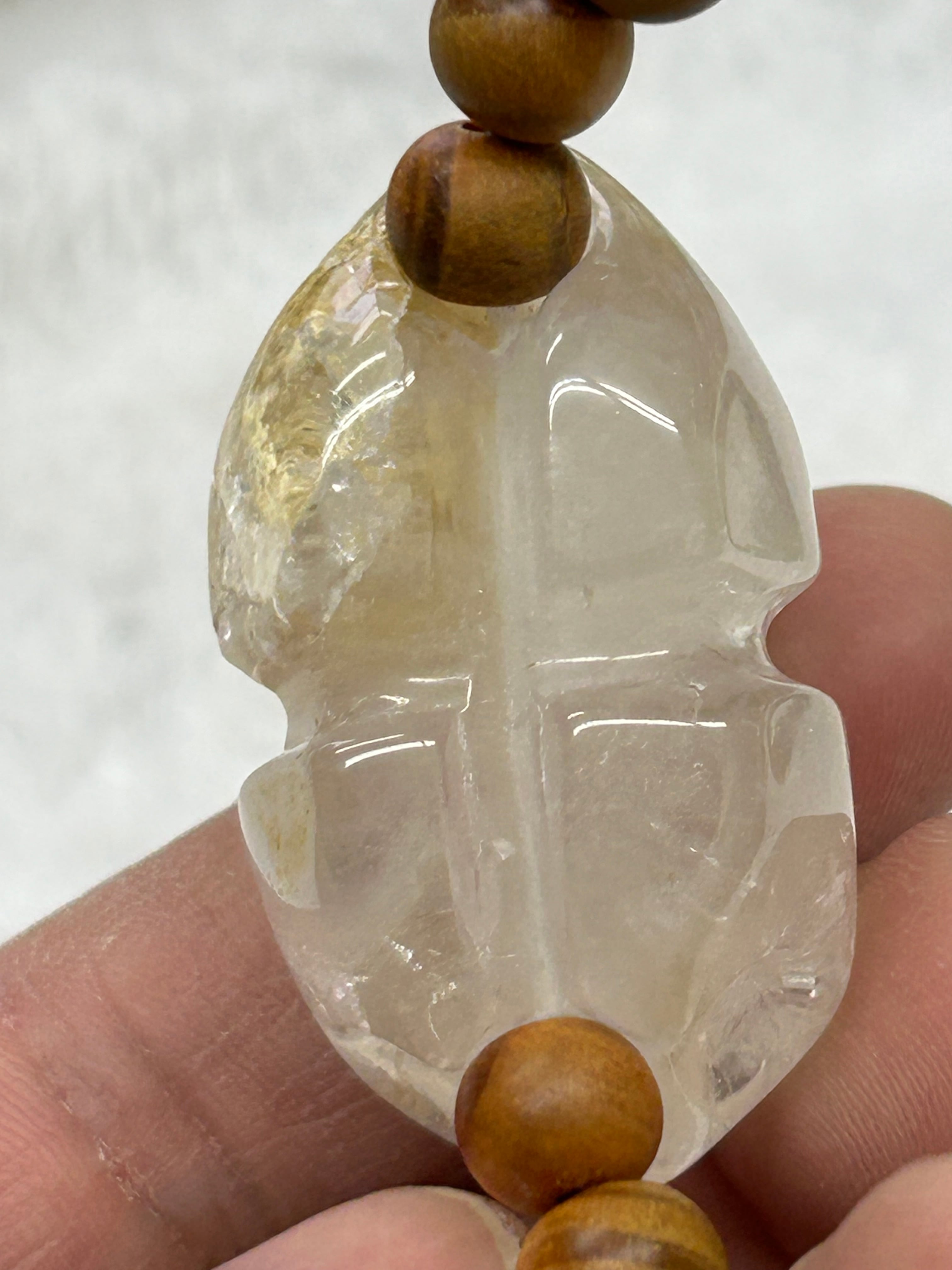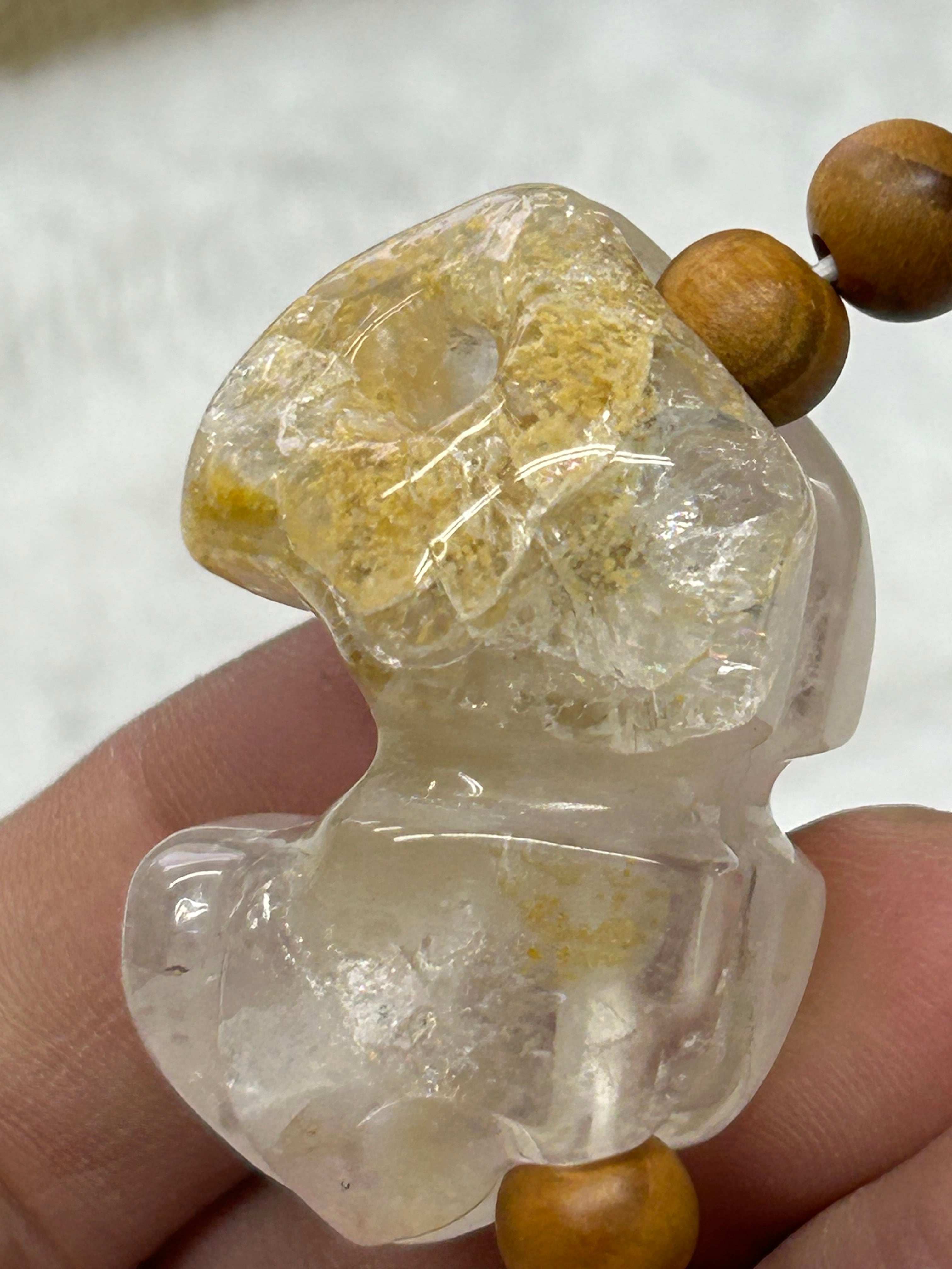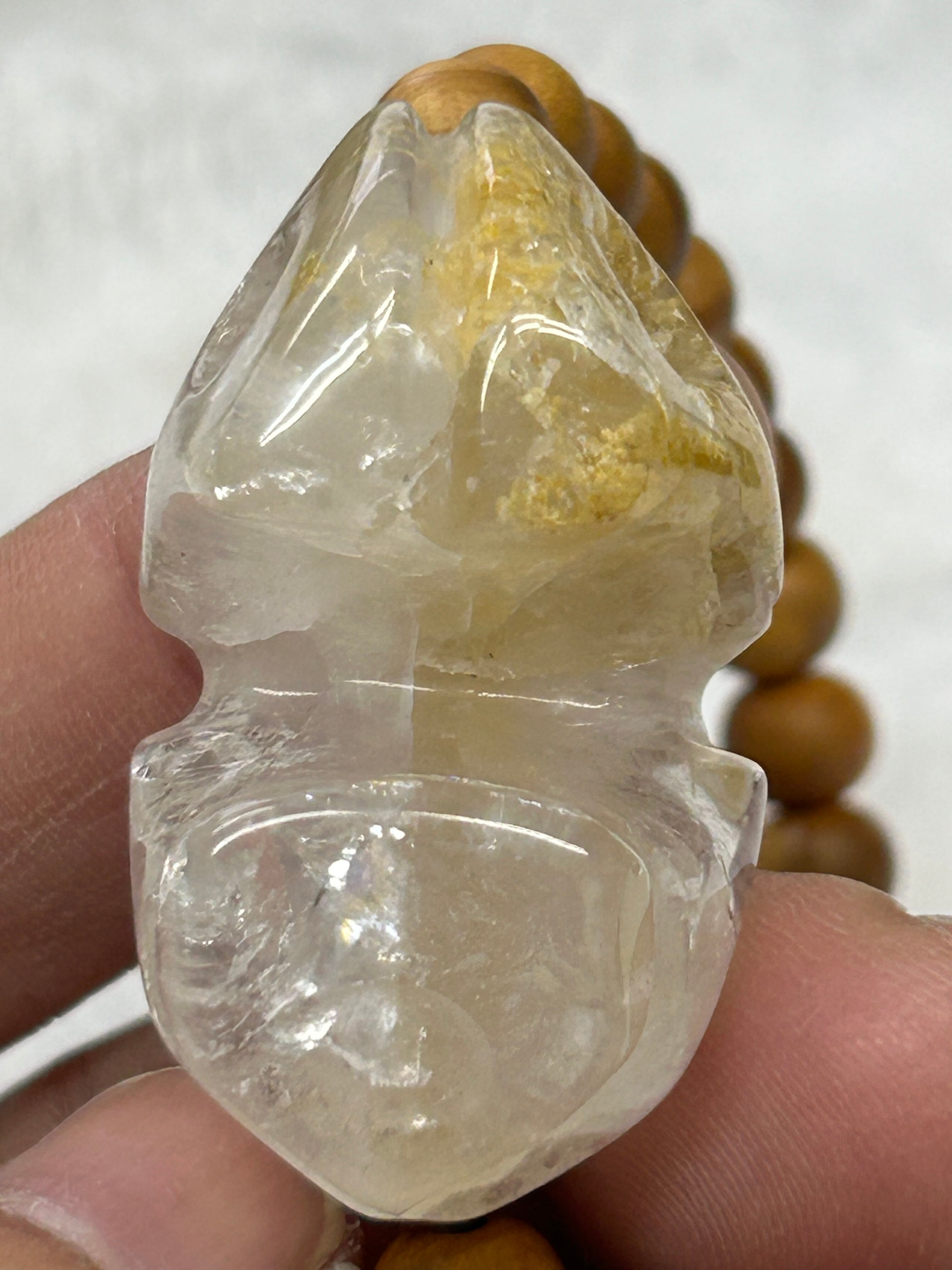 天川村の水晶ならではの透明感と独特な模様が、この勾玉に自然の神秘さを与えています。優雅で流れるようなフォルムは、見る人を魅了し、気品を放つことでしょう。