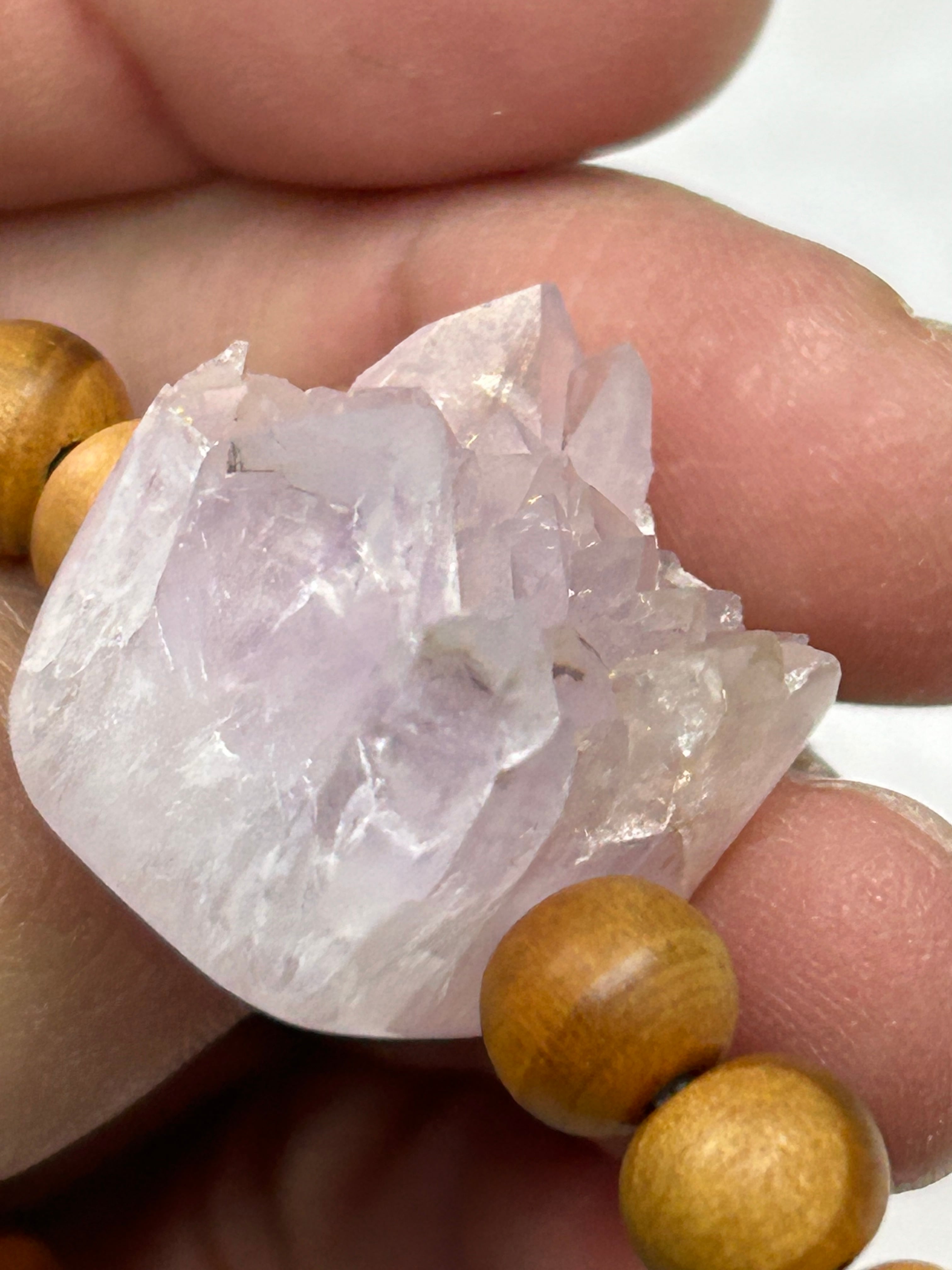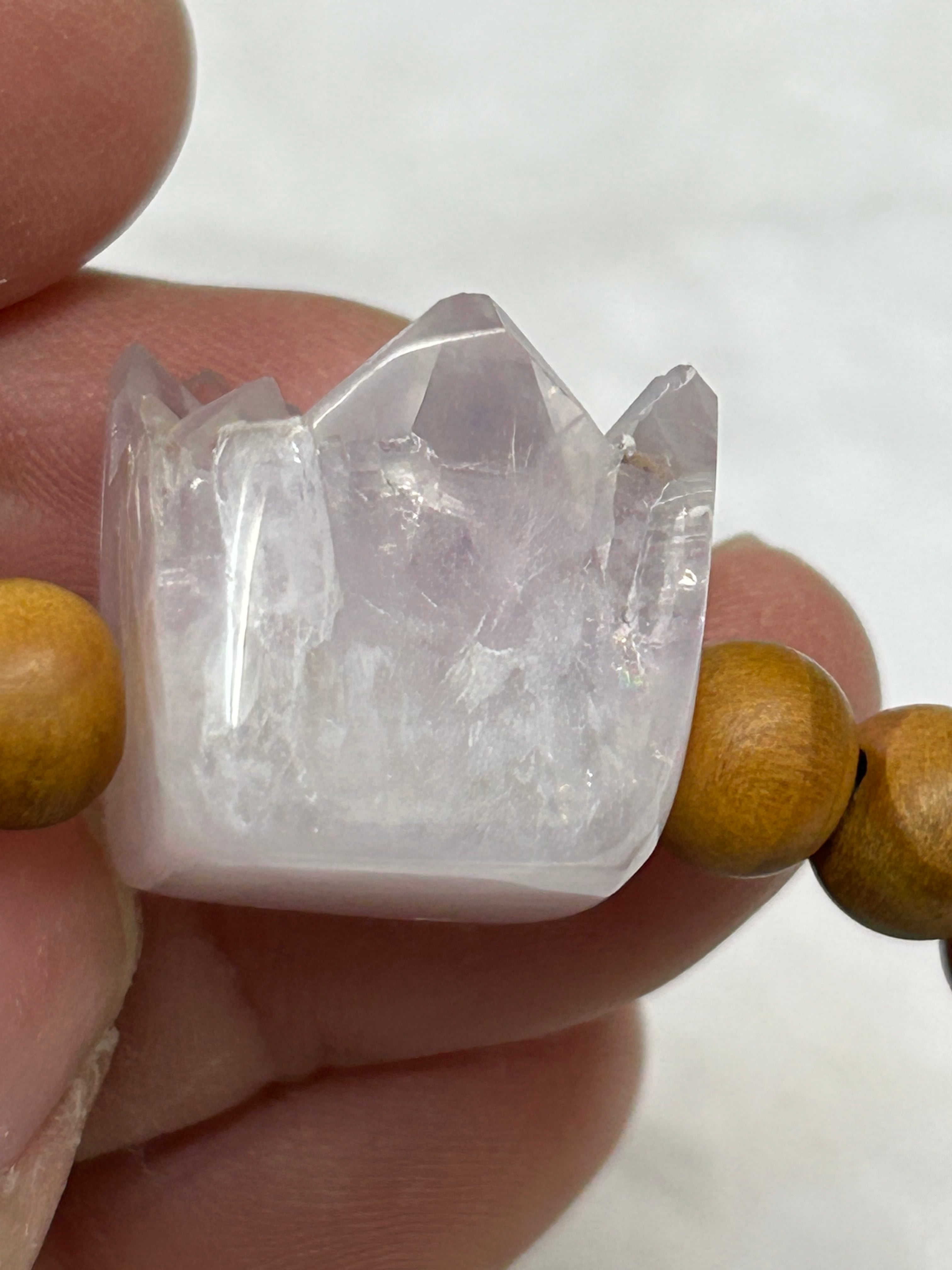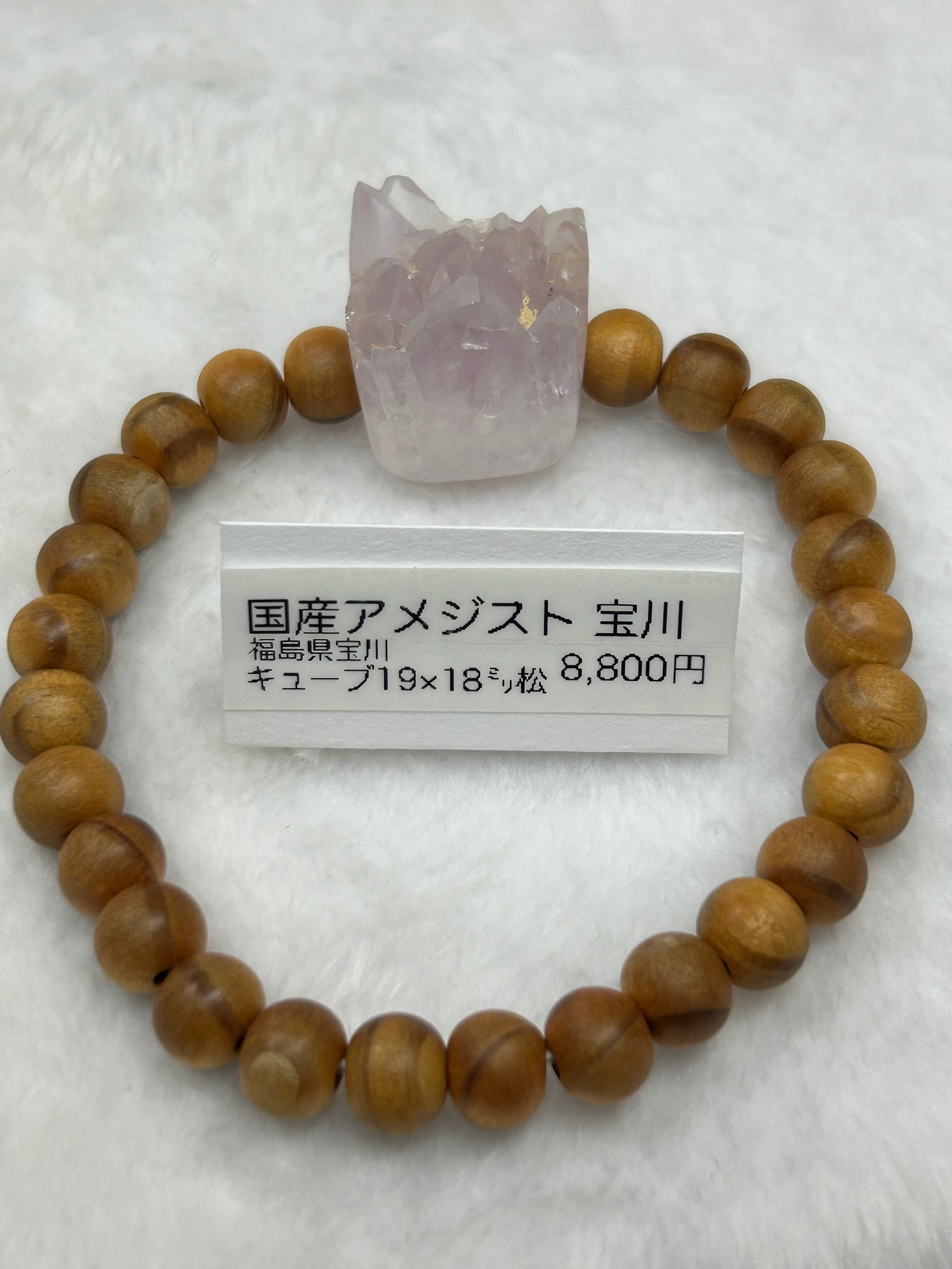 アメジストは、その深い紫色と透明感が持つ神秘的な魅力によって、見る人を引きつけます。このキューブビーズは、松の木ビーズとも組み合わされており、自然の素材の温もりを感じさせてくれるでしょう。