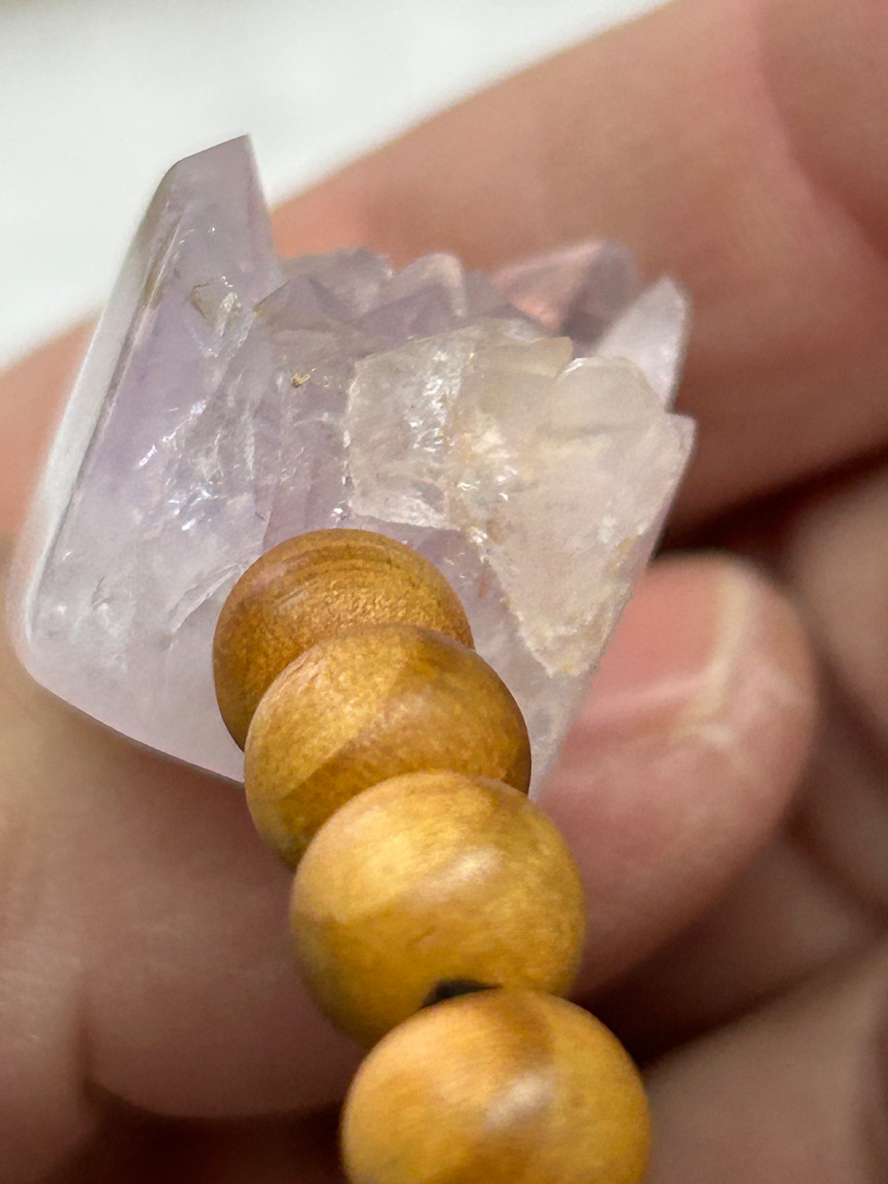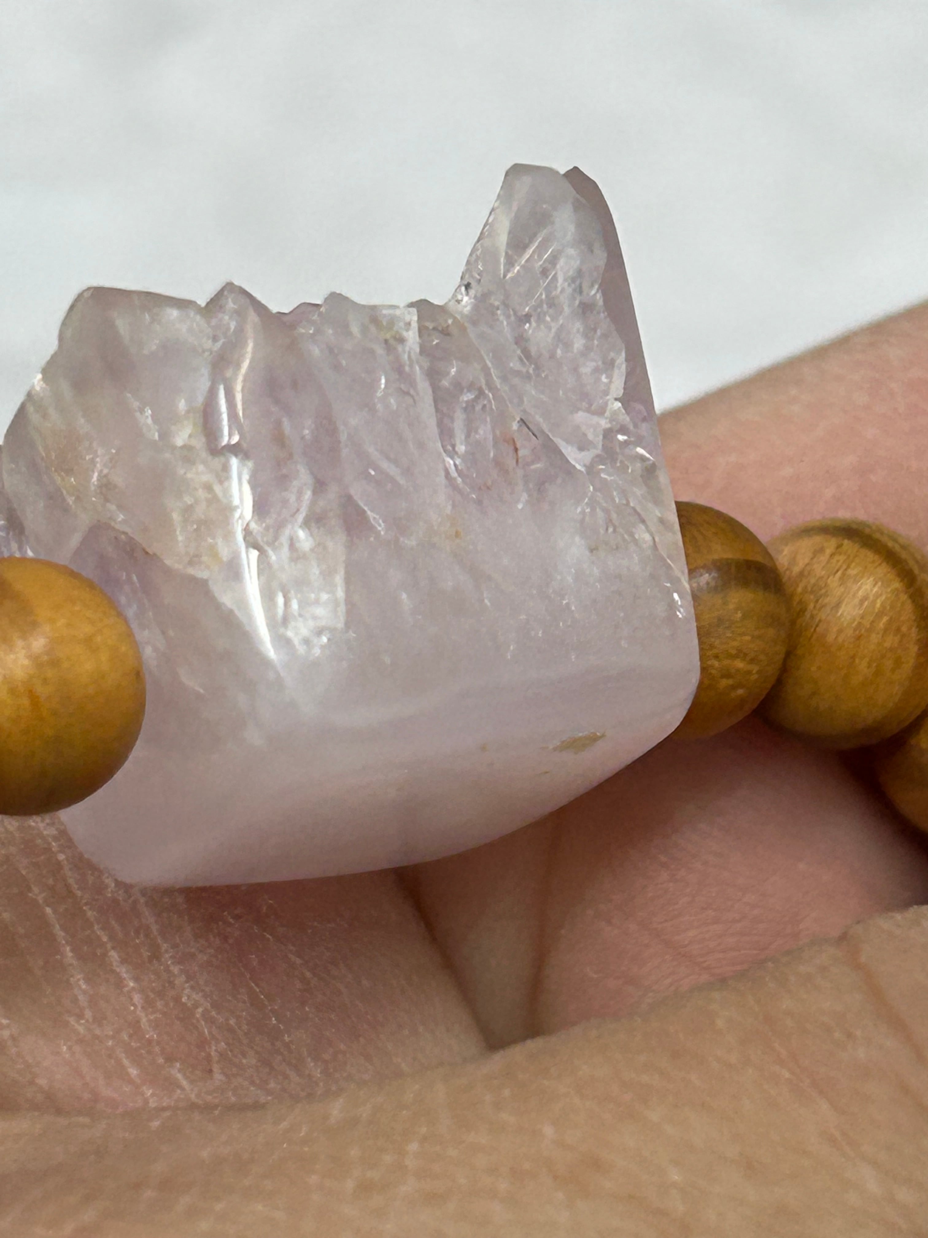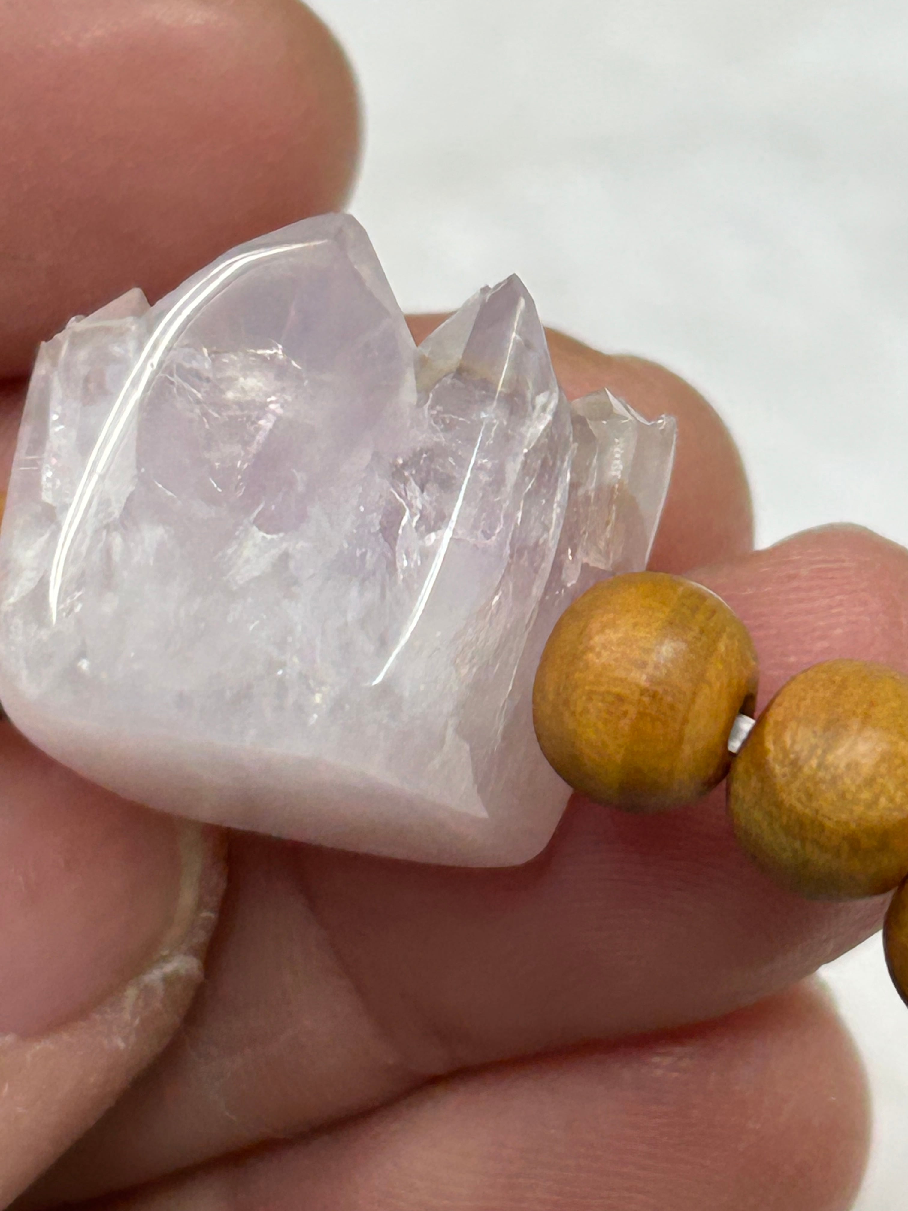 アメジストは、その深い紫色と透明感が持つ神秘的な魅力によって、見る人を引きつけます。このキューブビーズは、松の木ビーズとも組み合わされており、自然の素材の温もりを感じさせてくれるでしょう。