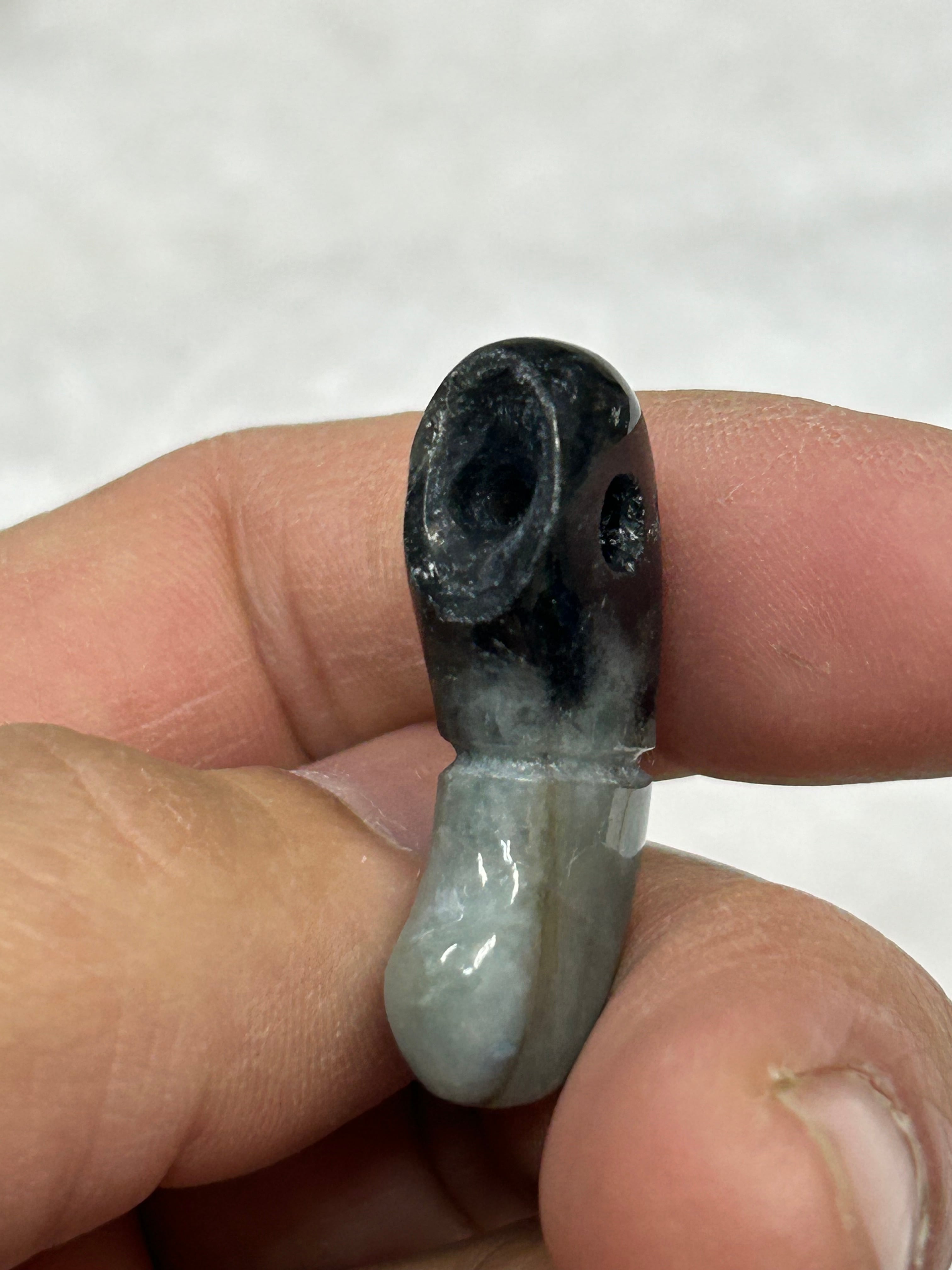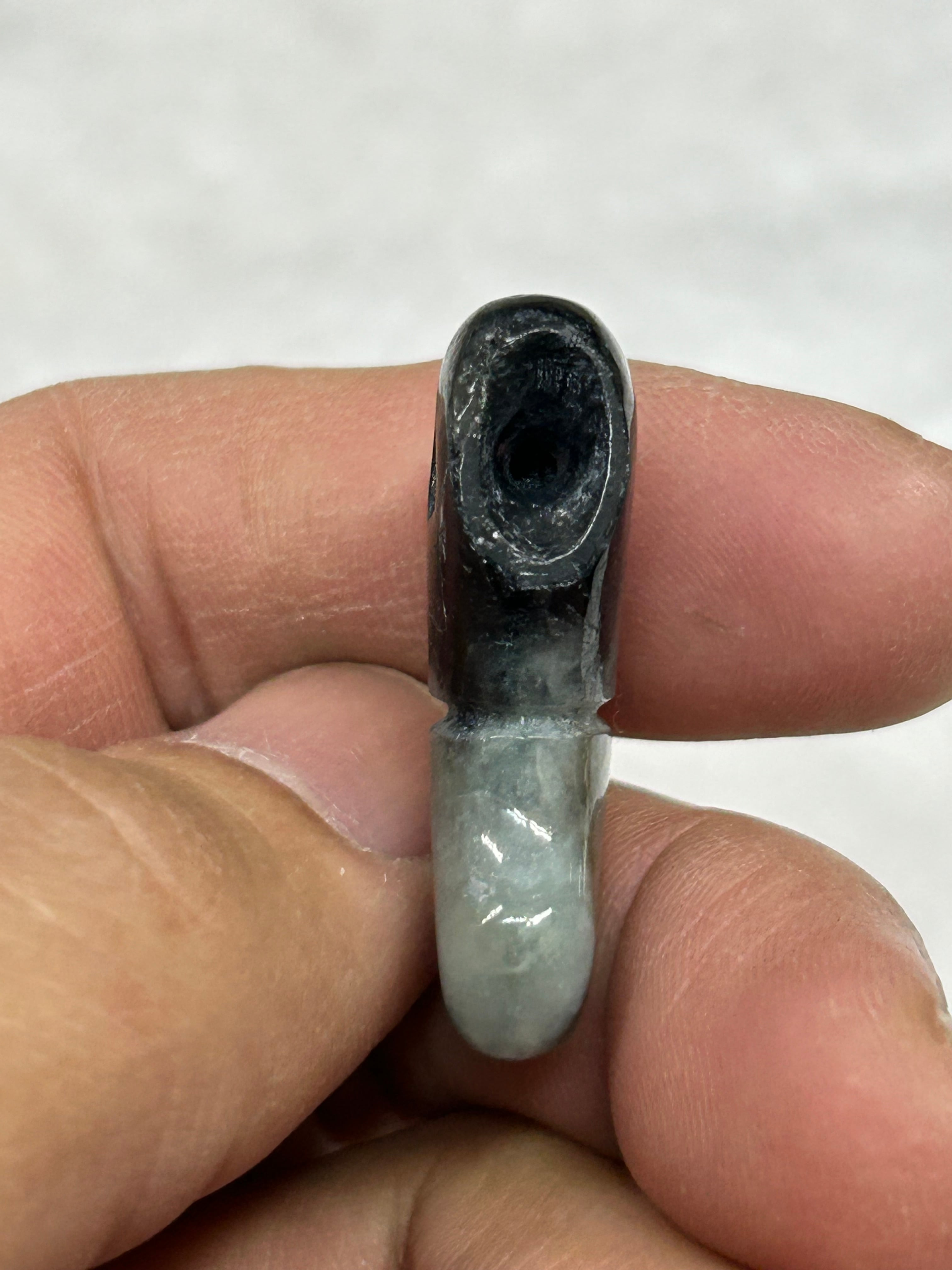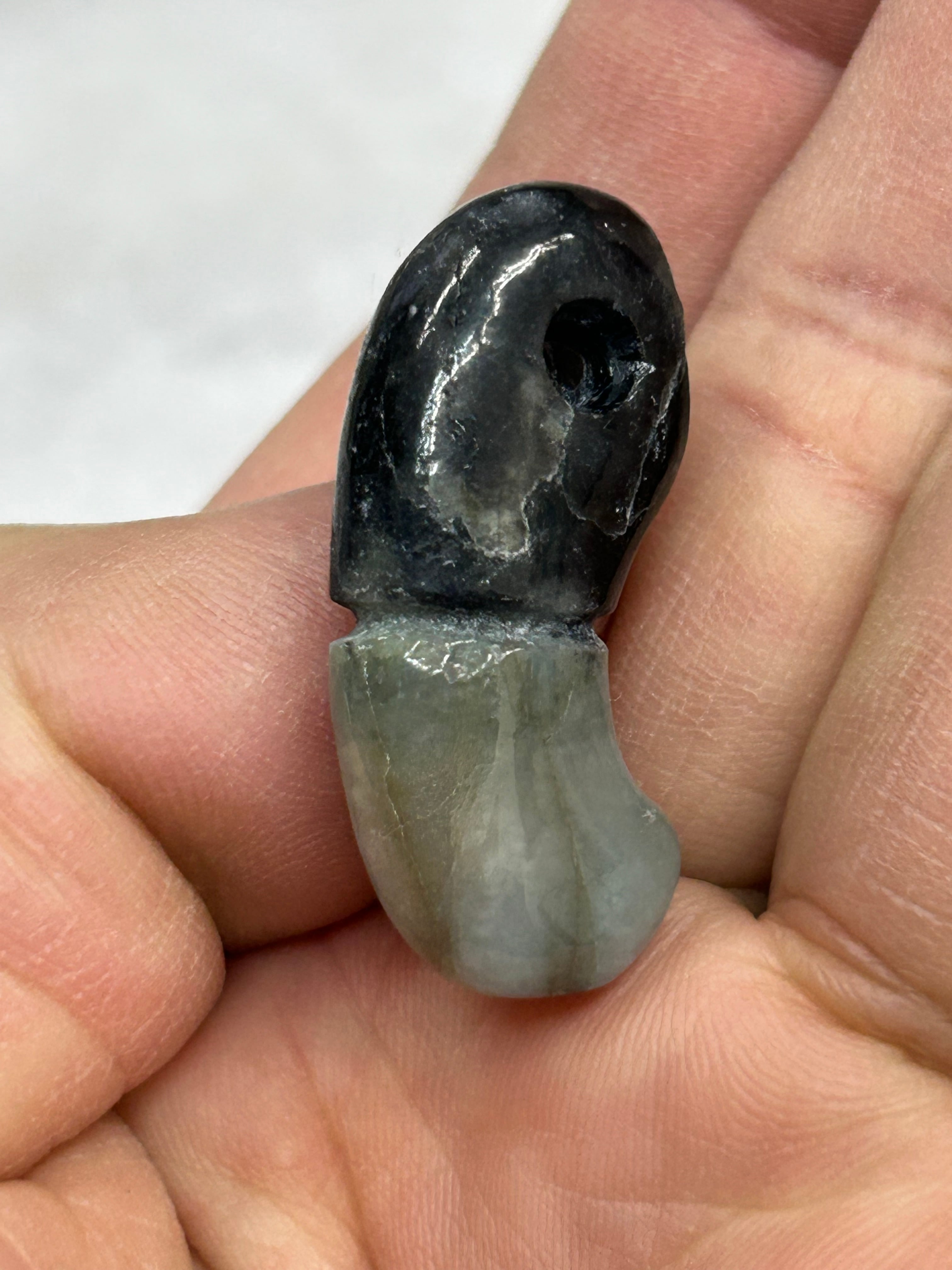 (この勾玉には多数の石目クラック、凹みがあります)