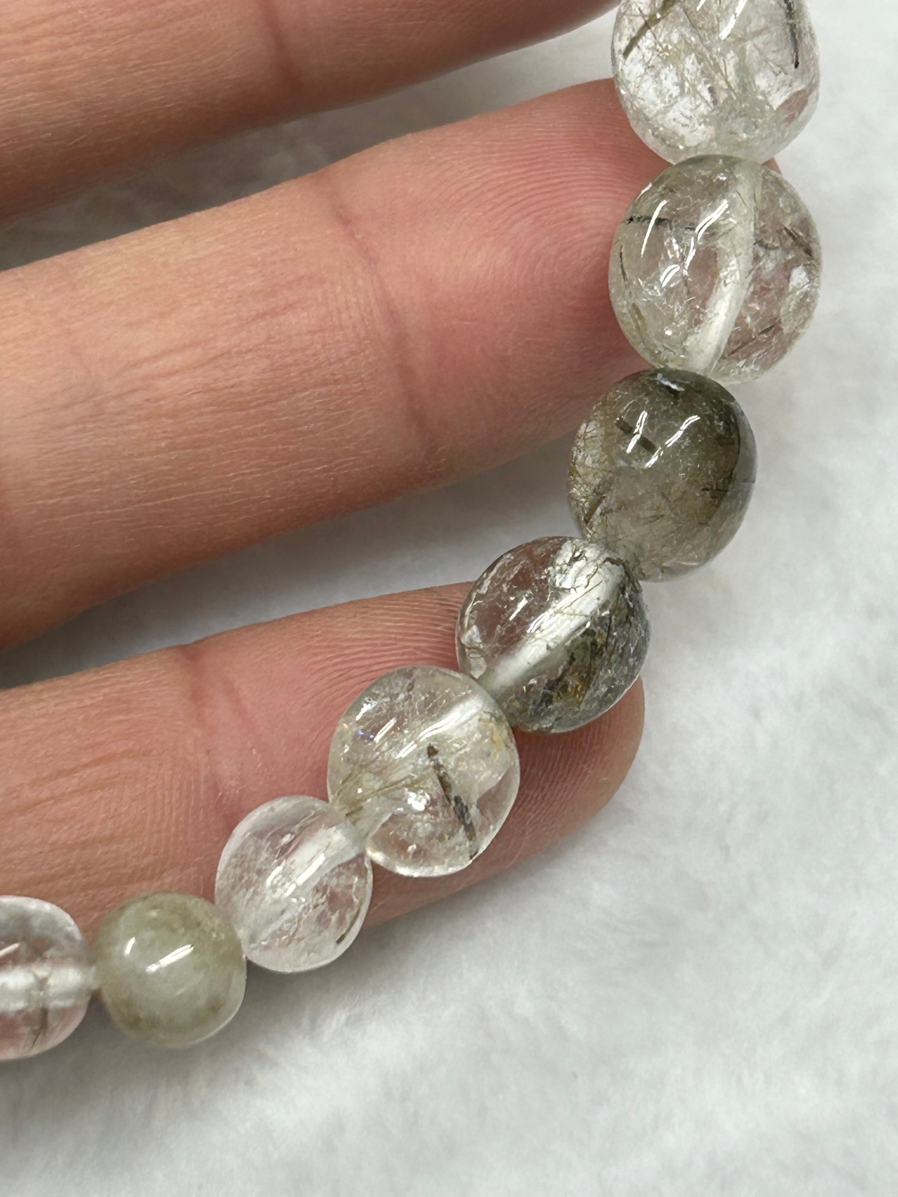 国産 トルマリン入り水晶 山梨県竹森産 ブレスレット 内周20㌢