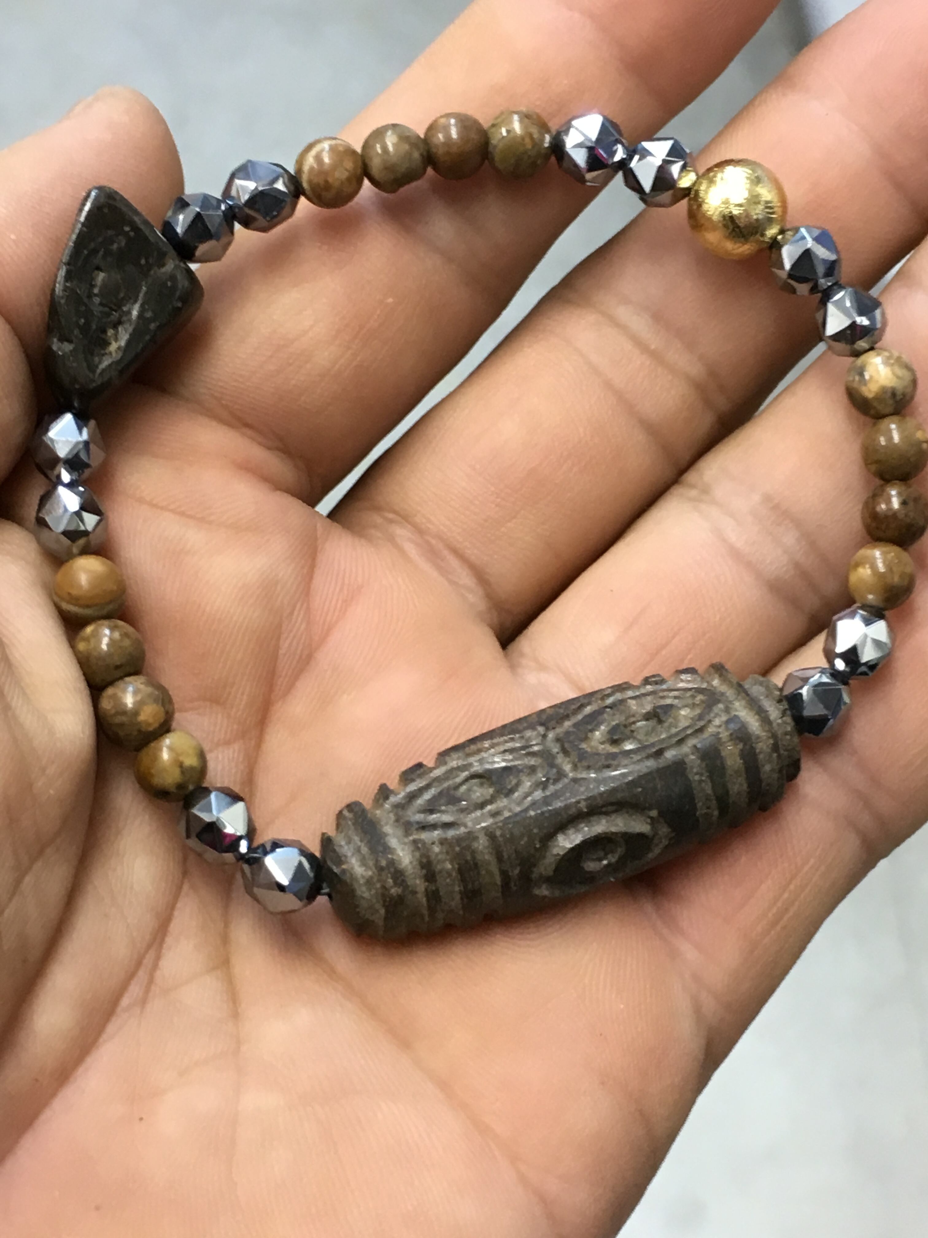 テラヘルツ、姫川薬石、ムオニオナルスタ(ロジウムコーティング)金色ビーズ