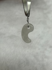 こちらの勾玉は、原石の時点で含浸処理が施されたものを使用しています。サイズは12×22×4ミリと小ぶりながらも、その存在感は抜群です。日常のアクセントとしても、特別なシーンでもお楽しみいただけます。