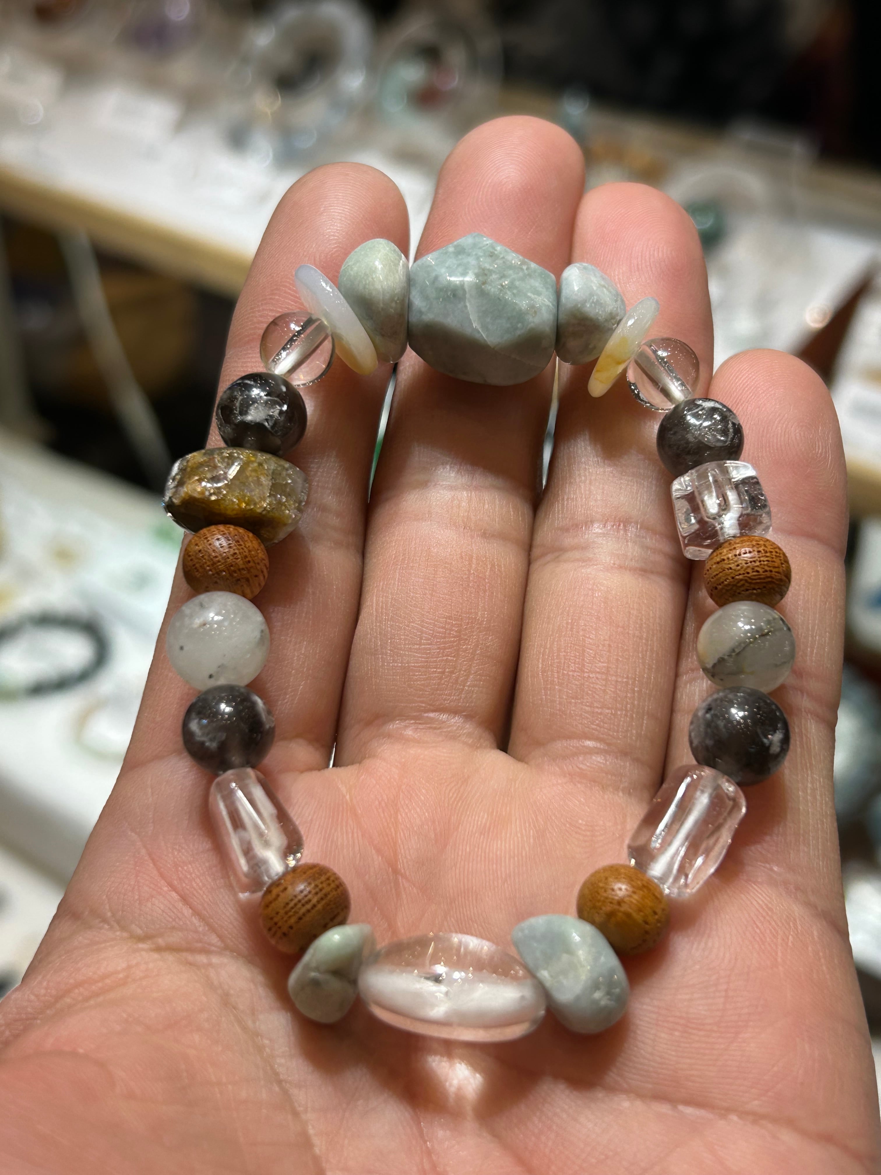 このブレスレットは、自然が育んだ特別な石々で制作されました!その美しい輝きが、あなたの個性を引き立てるアイテムとなるでしょう。
