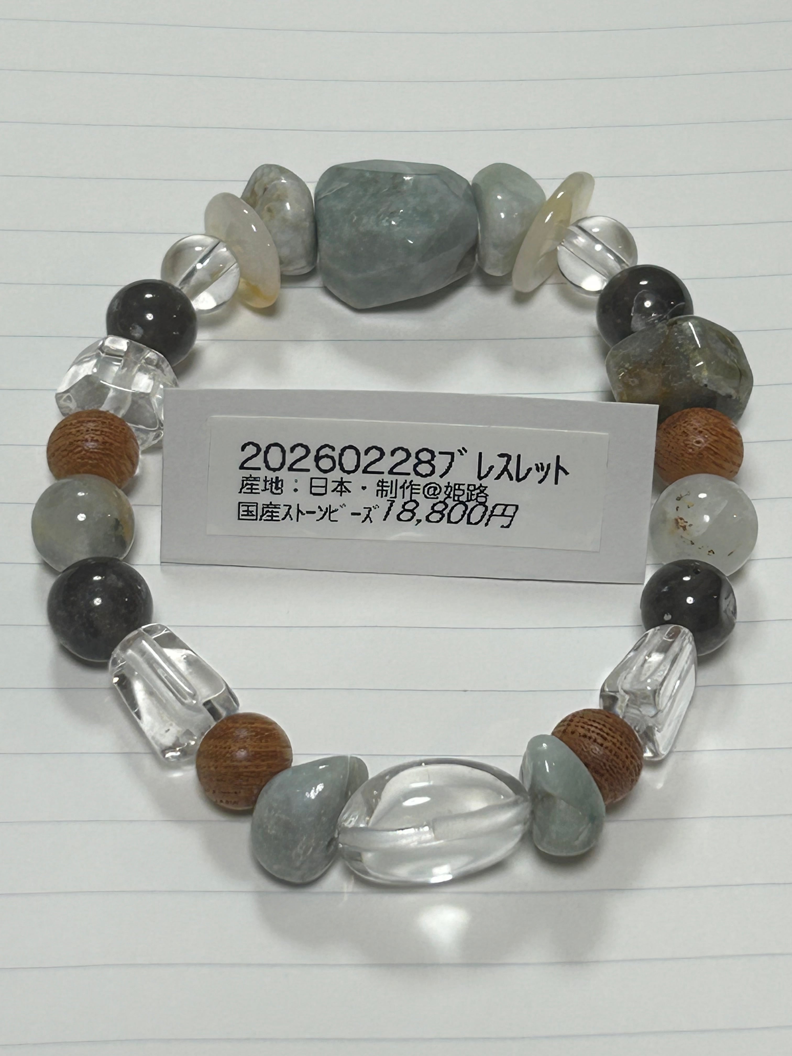 20260228ブレスレット 国産ストーンビーズ使用 内周17.5cm 糸魚川翡翠、乙女水晶等
