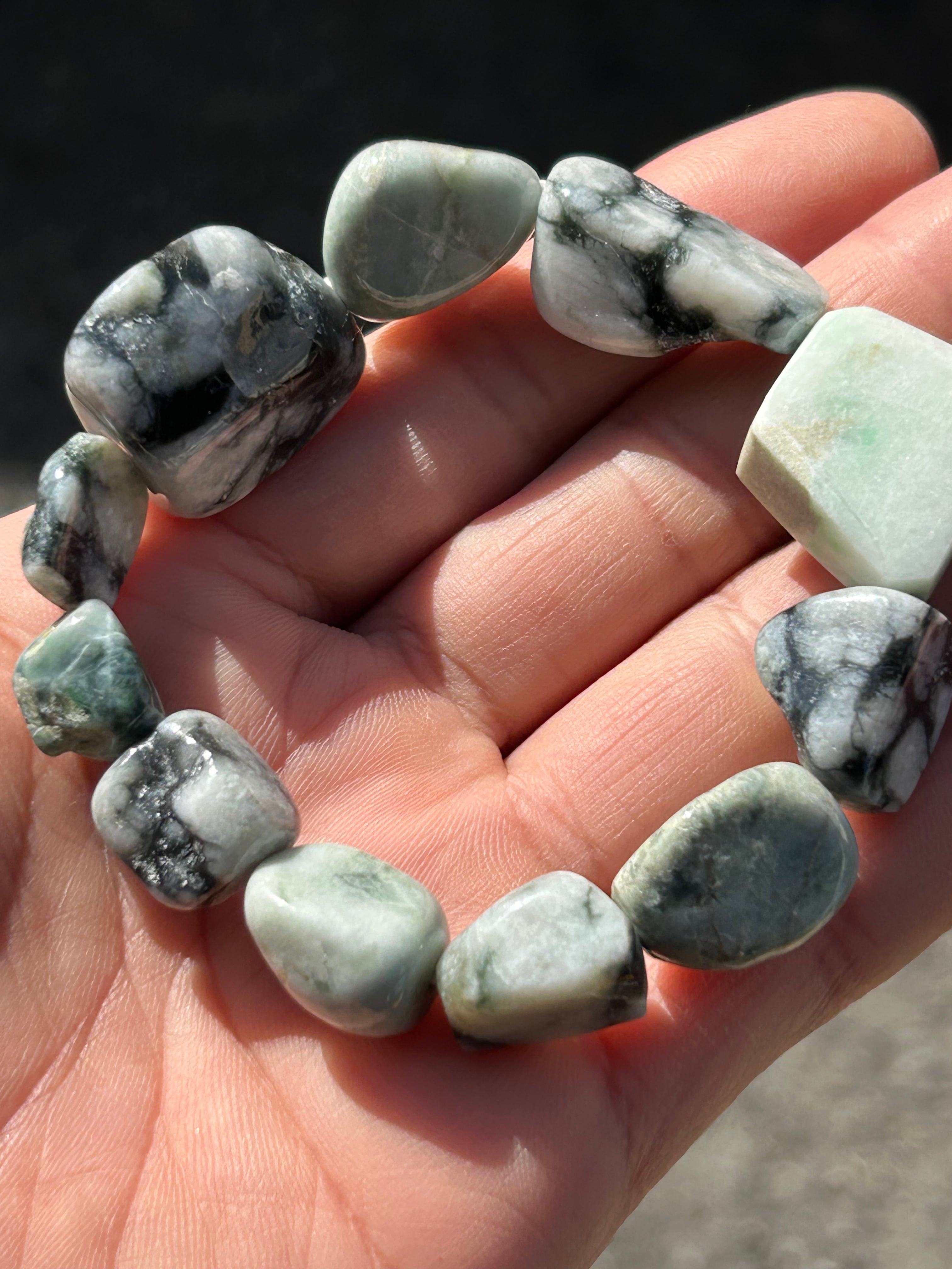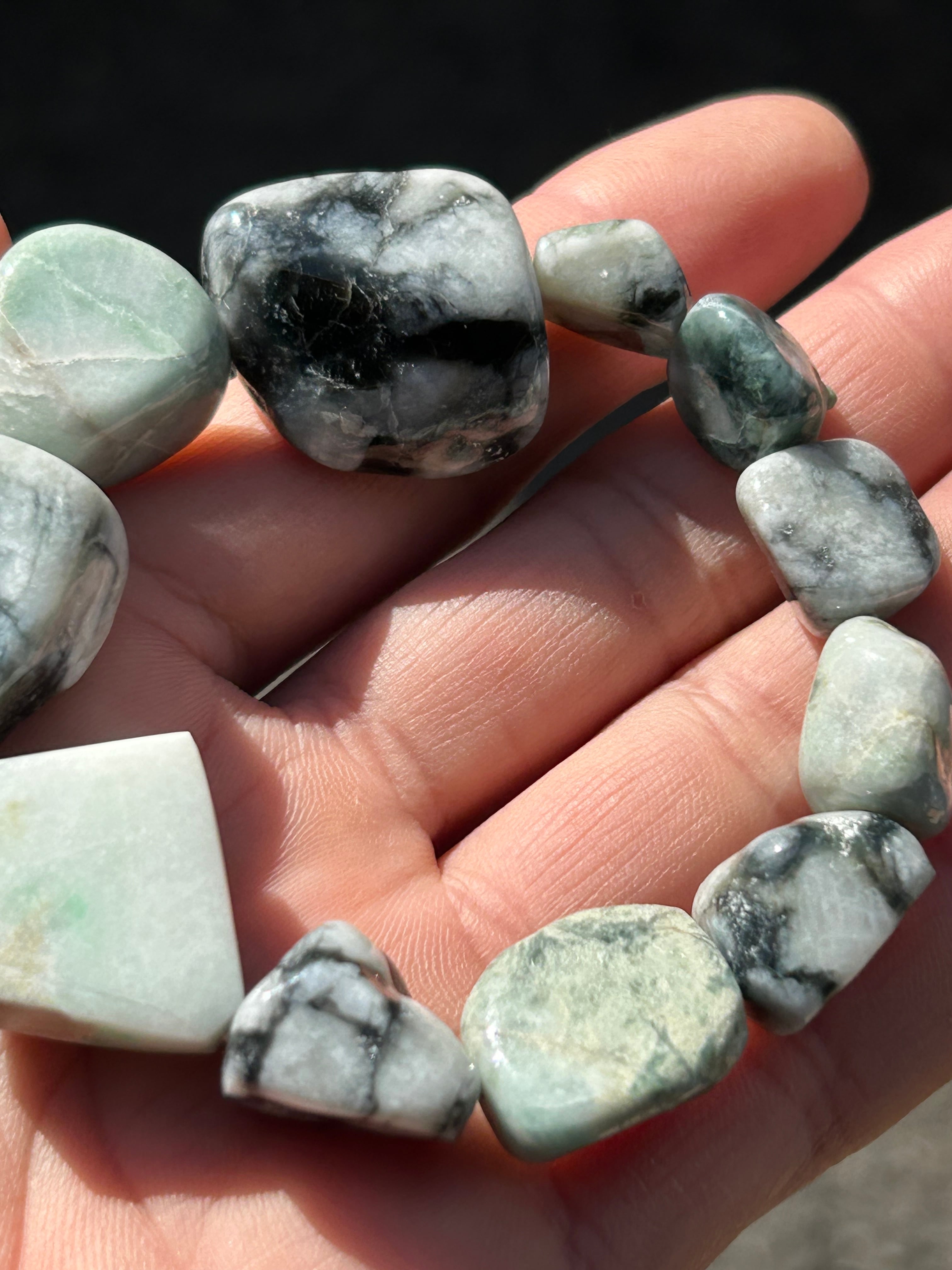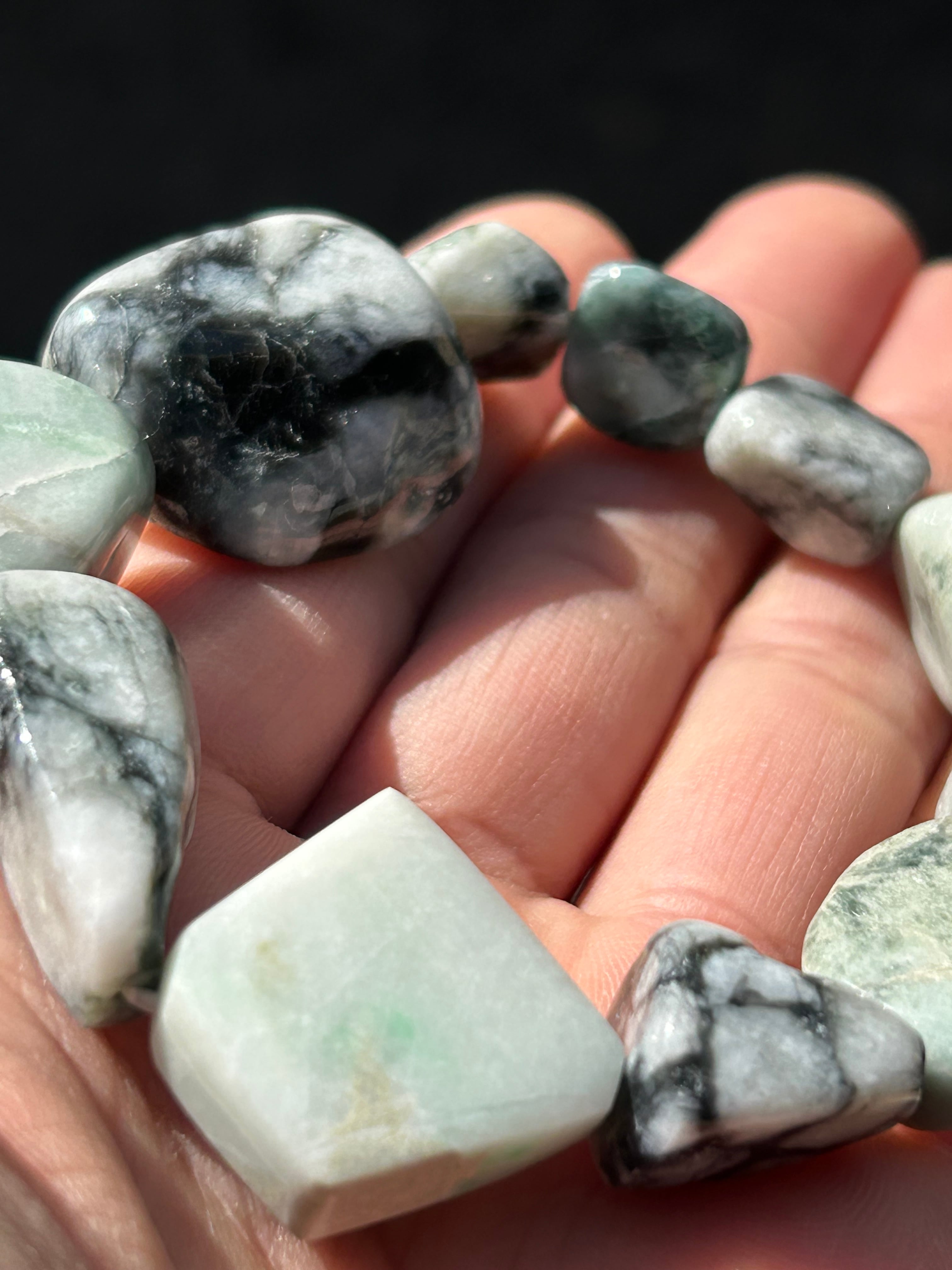 この特別なブレスレットは、自然が育んだ素晴らしい石で制作されました!その美しい輝きと色合いが、あなたの個性をより一層引き立てるアイテムとなるでしょう。