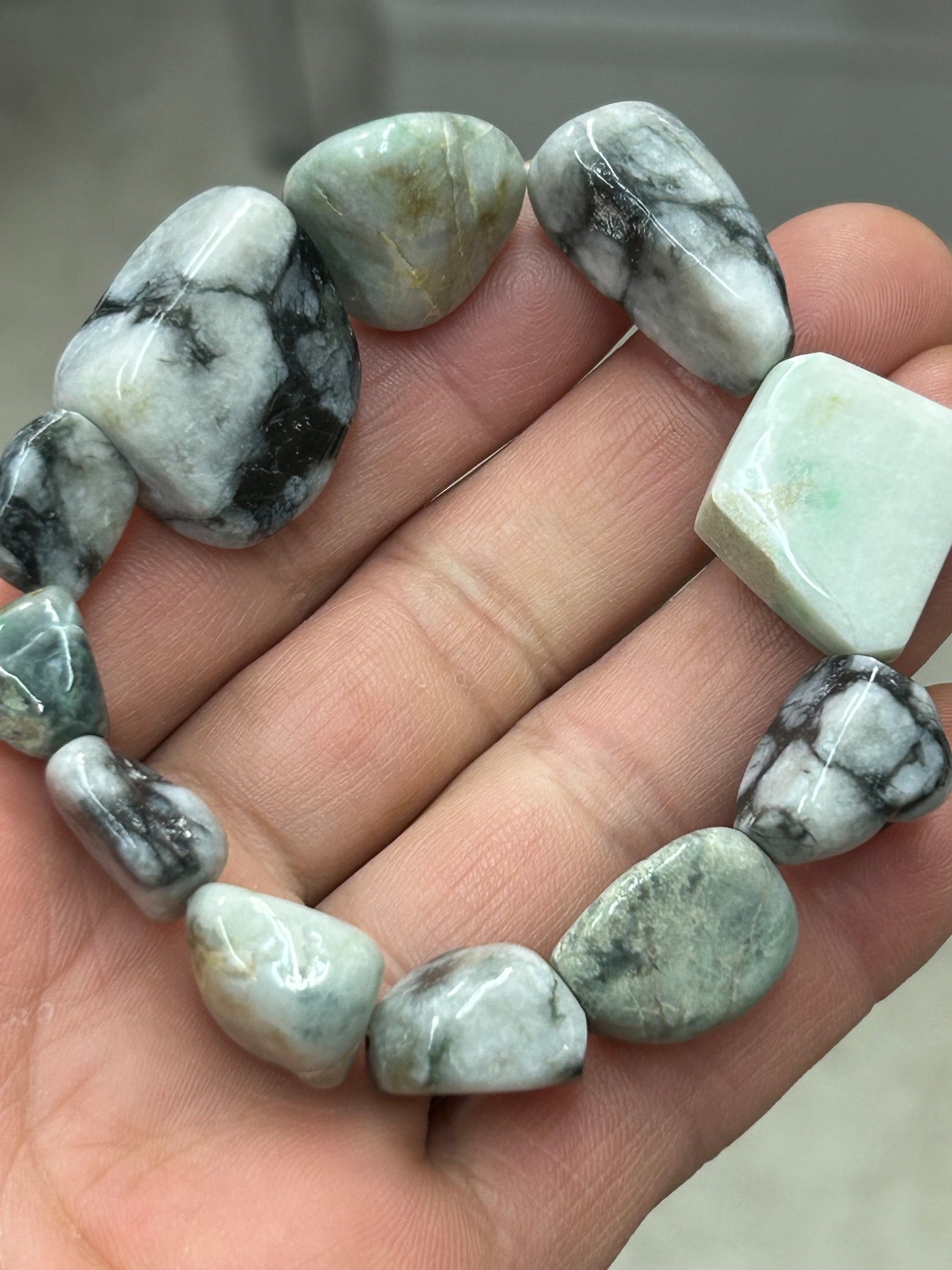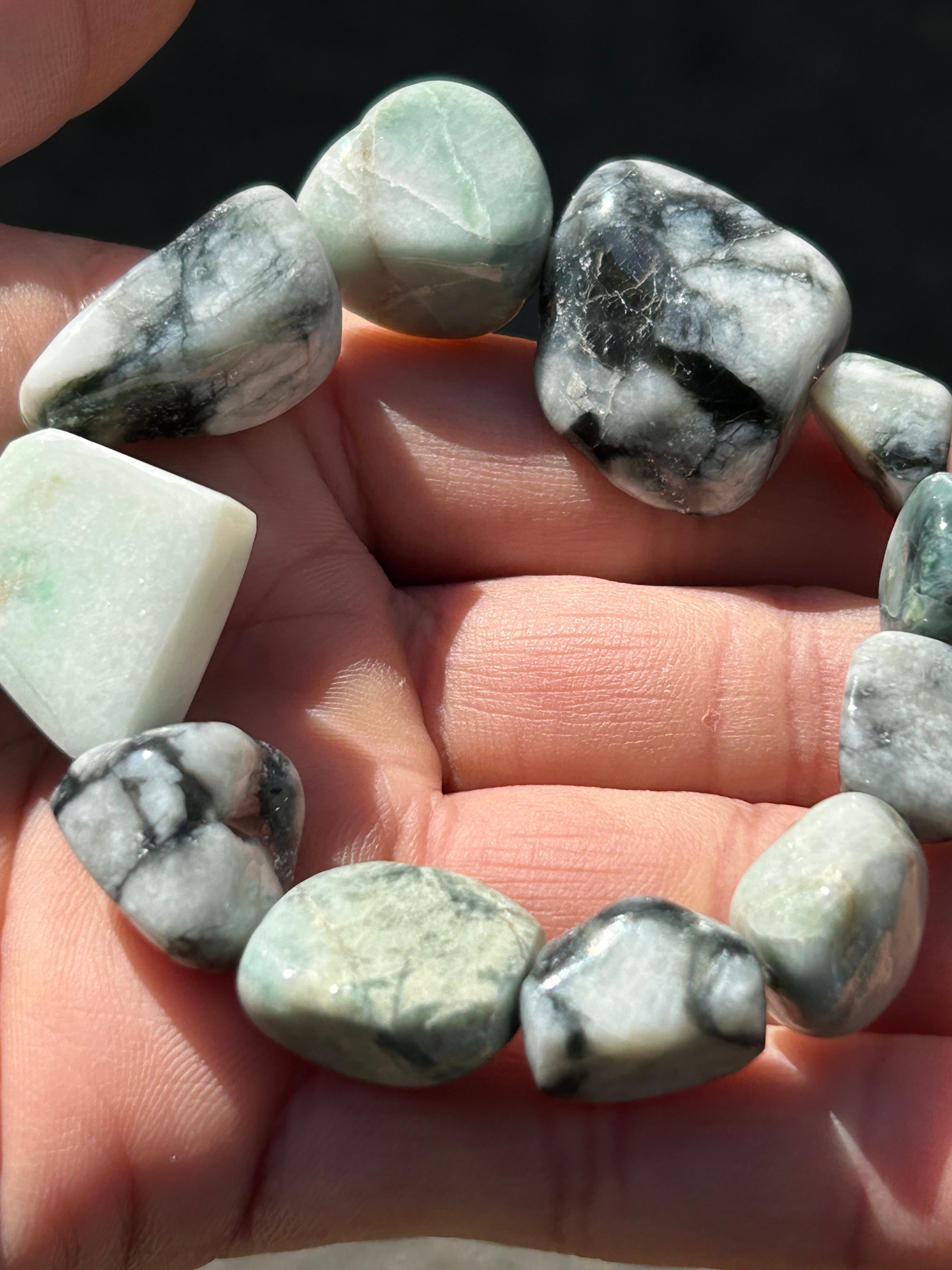 ■ 商品名:糸魚川翡翠 3色 タンブルブレスレット 内周約16~16.5㌢