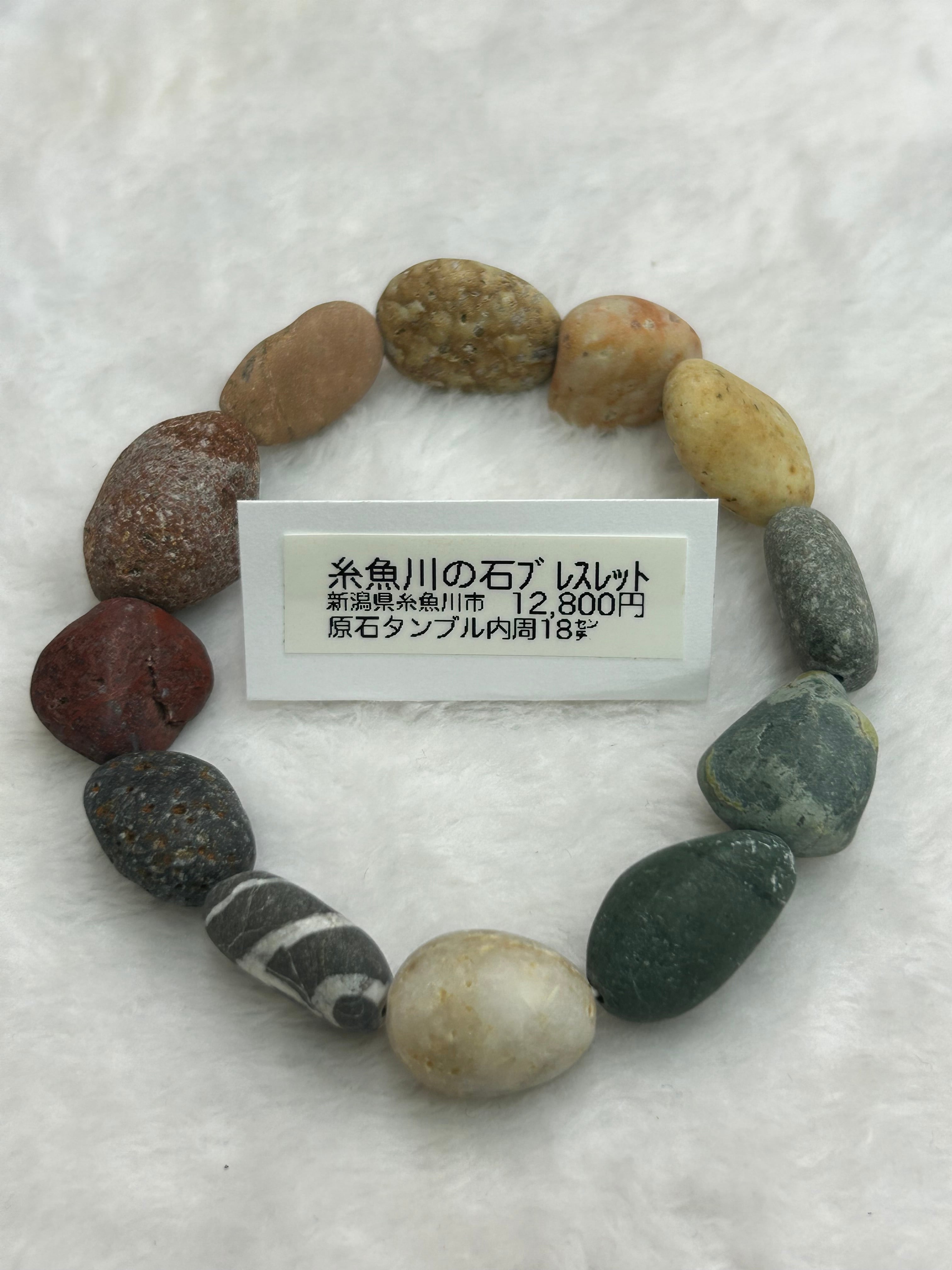■ 商品名:糸魚川の石 原石タンブルブレスレット 内周18㌢ 彩りブレスレット