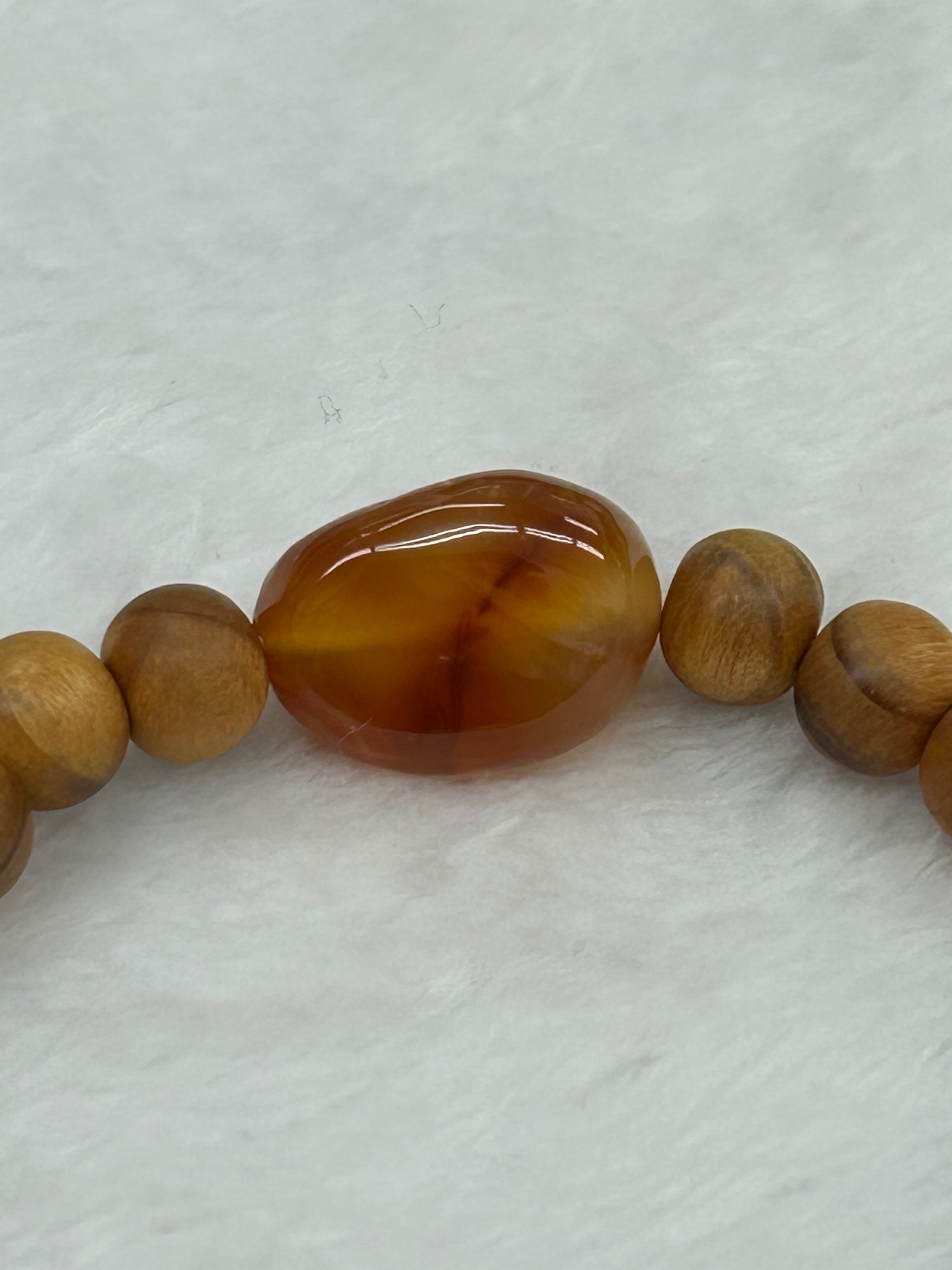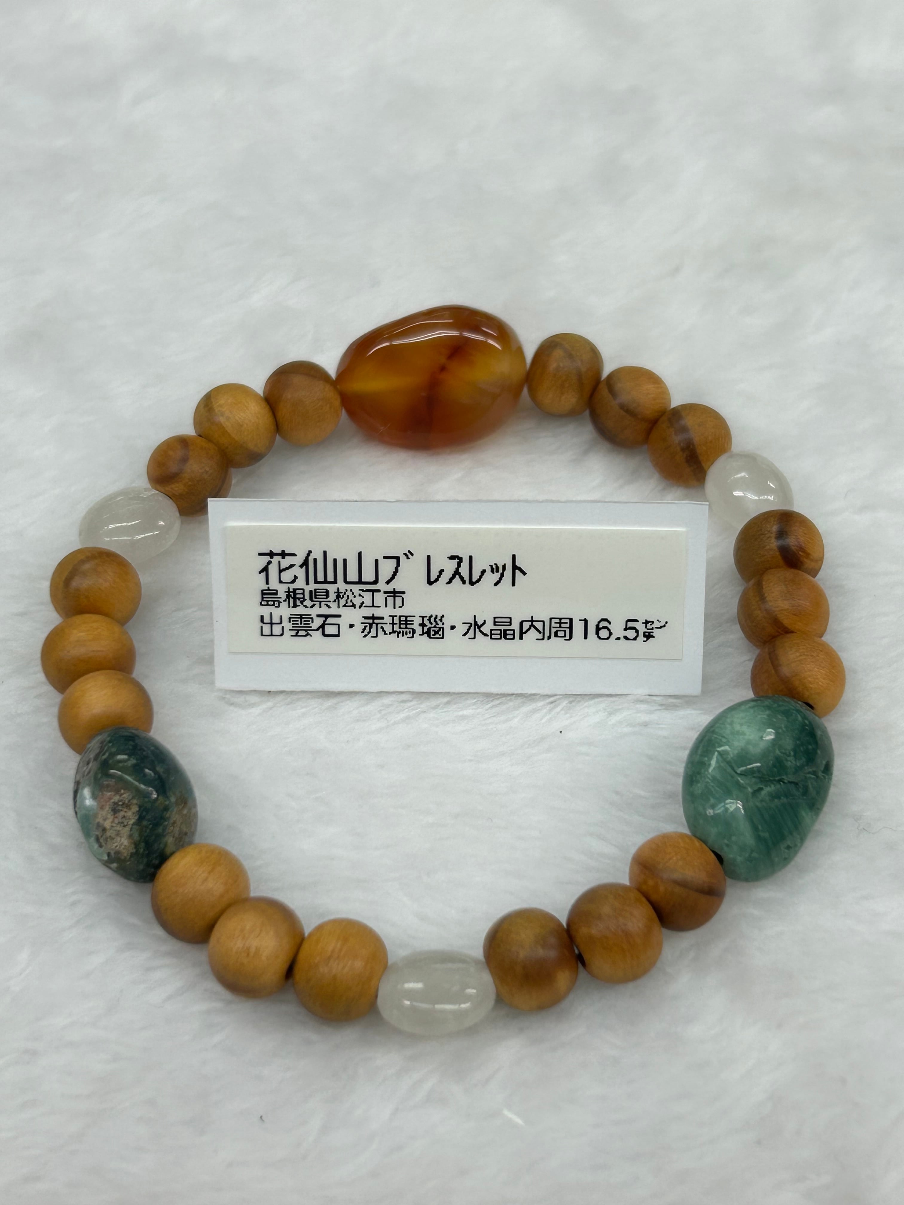 花仙山ブレスレット)出雲石・赤瑪瑙・水晶 国産松の木 内周16.5㌢