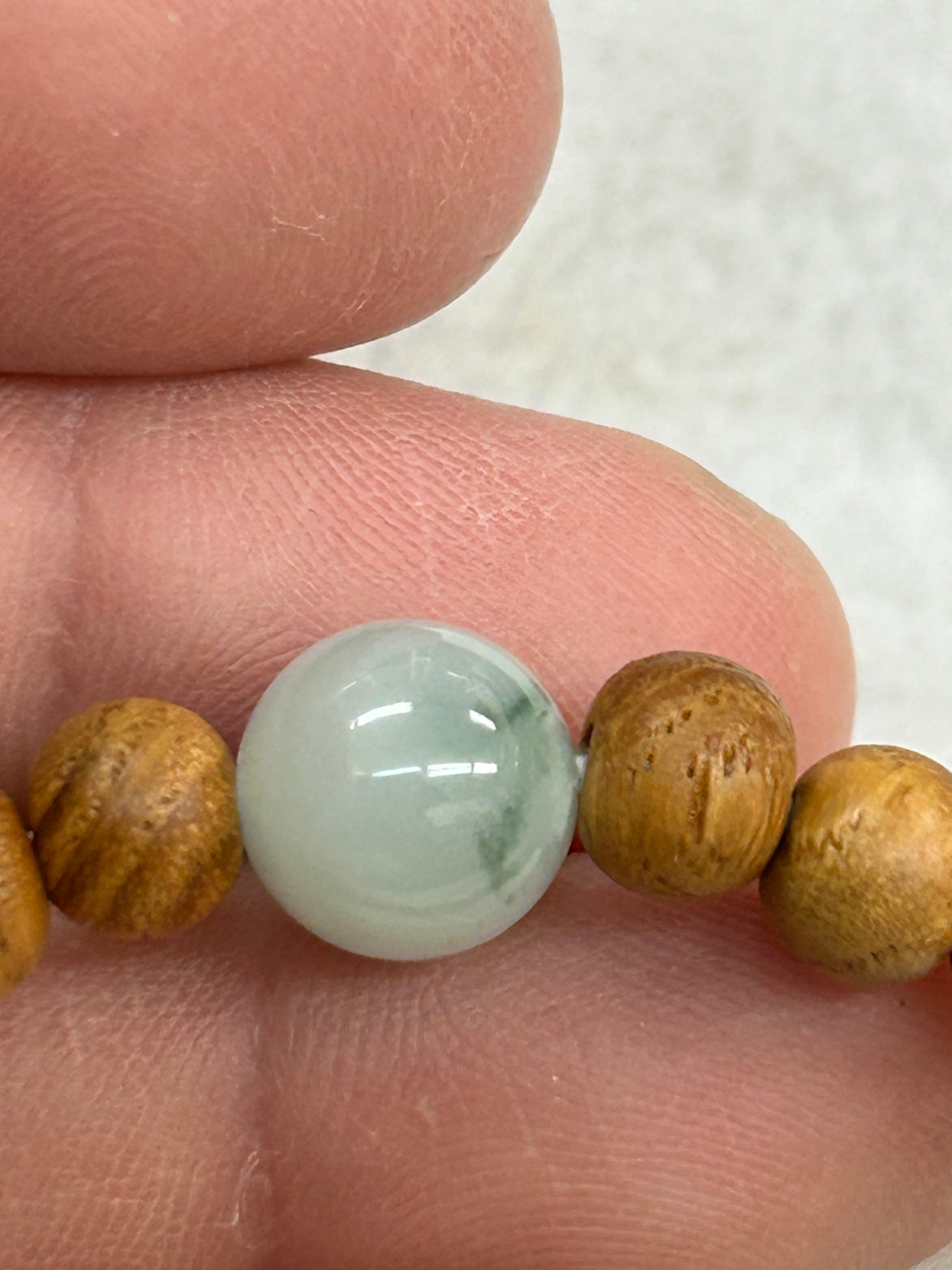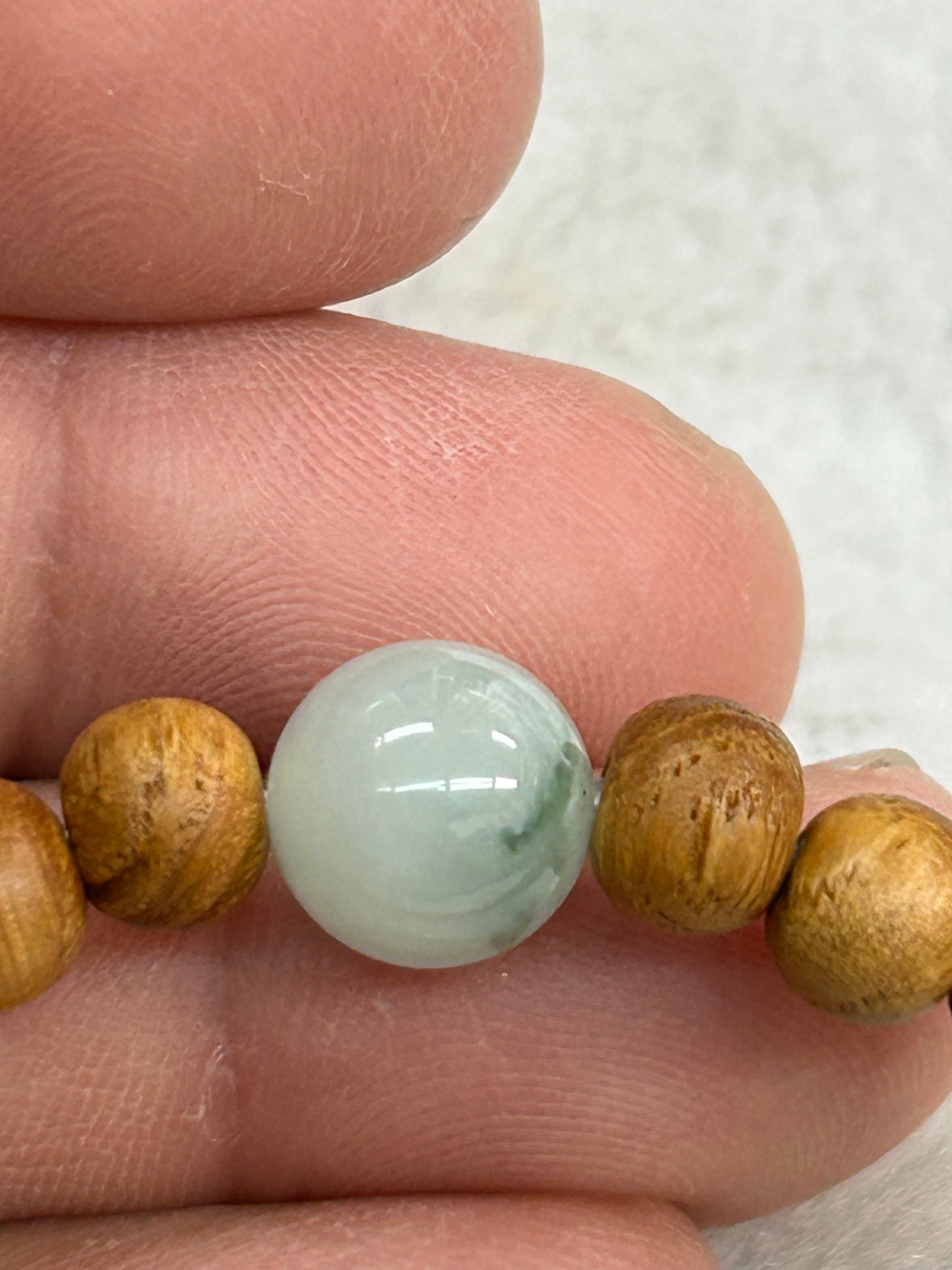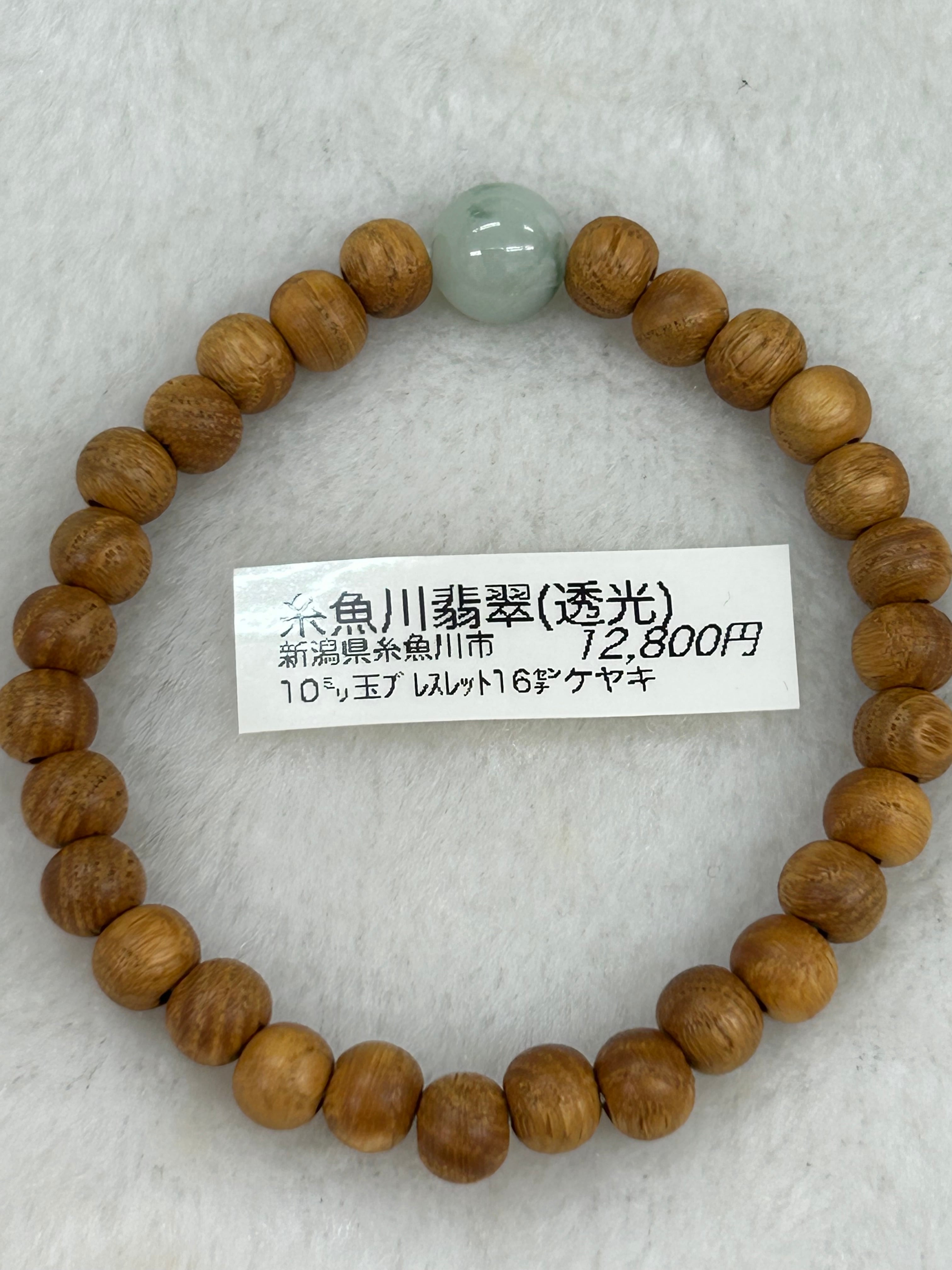 ■ 商品名:糸魚川翡翠10㍉1粒ブレスレット 国産ケヤキビーズ内周16センチ