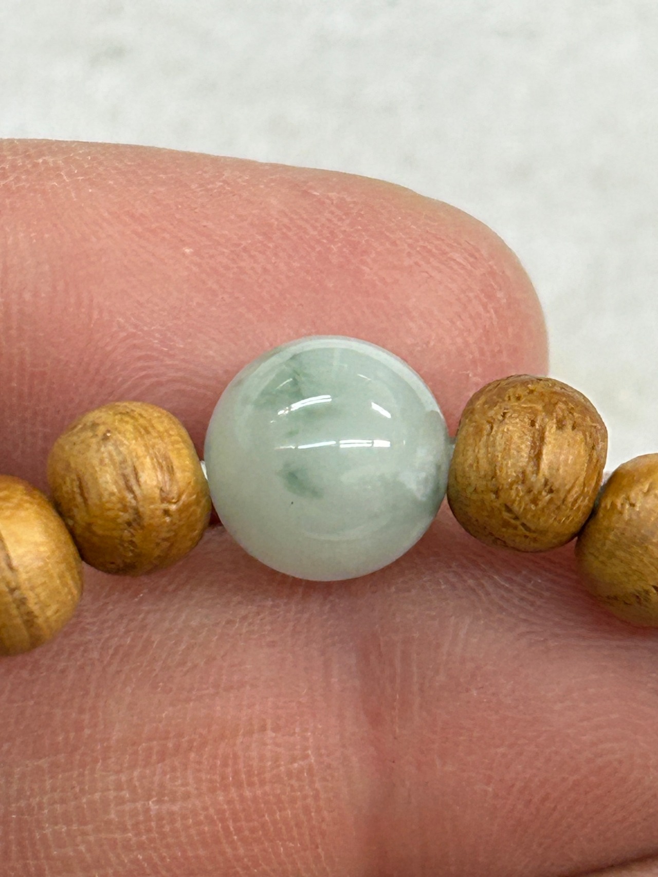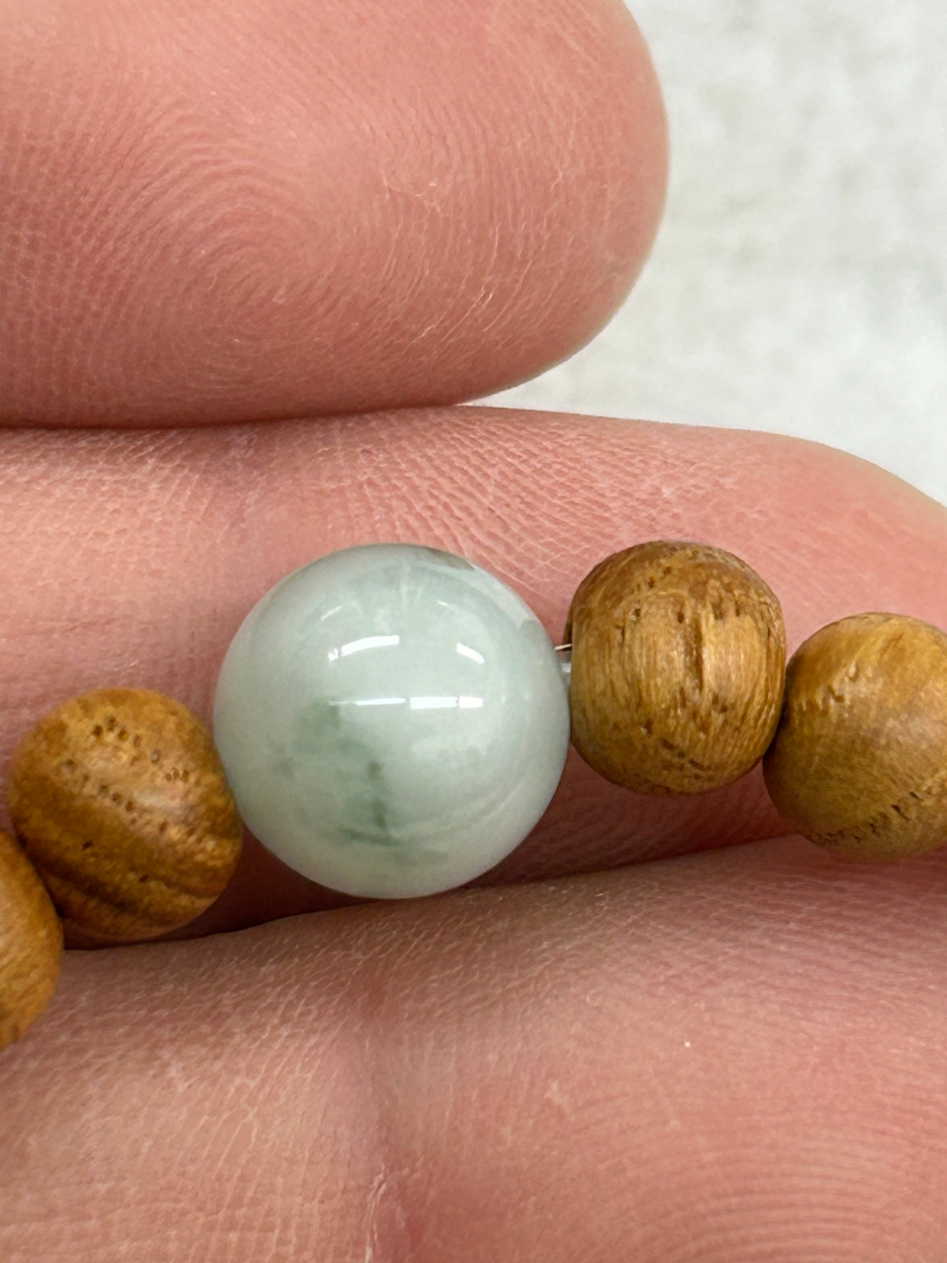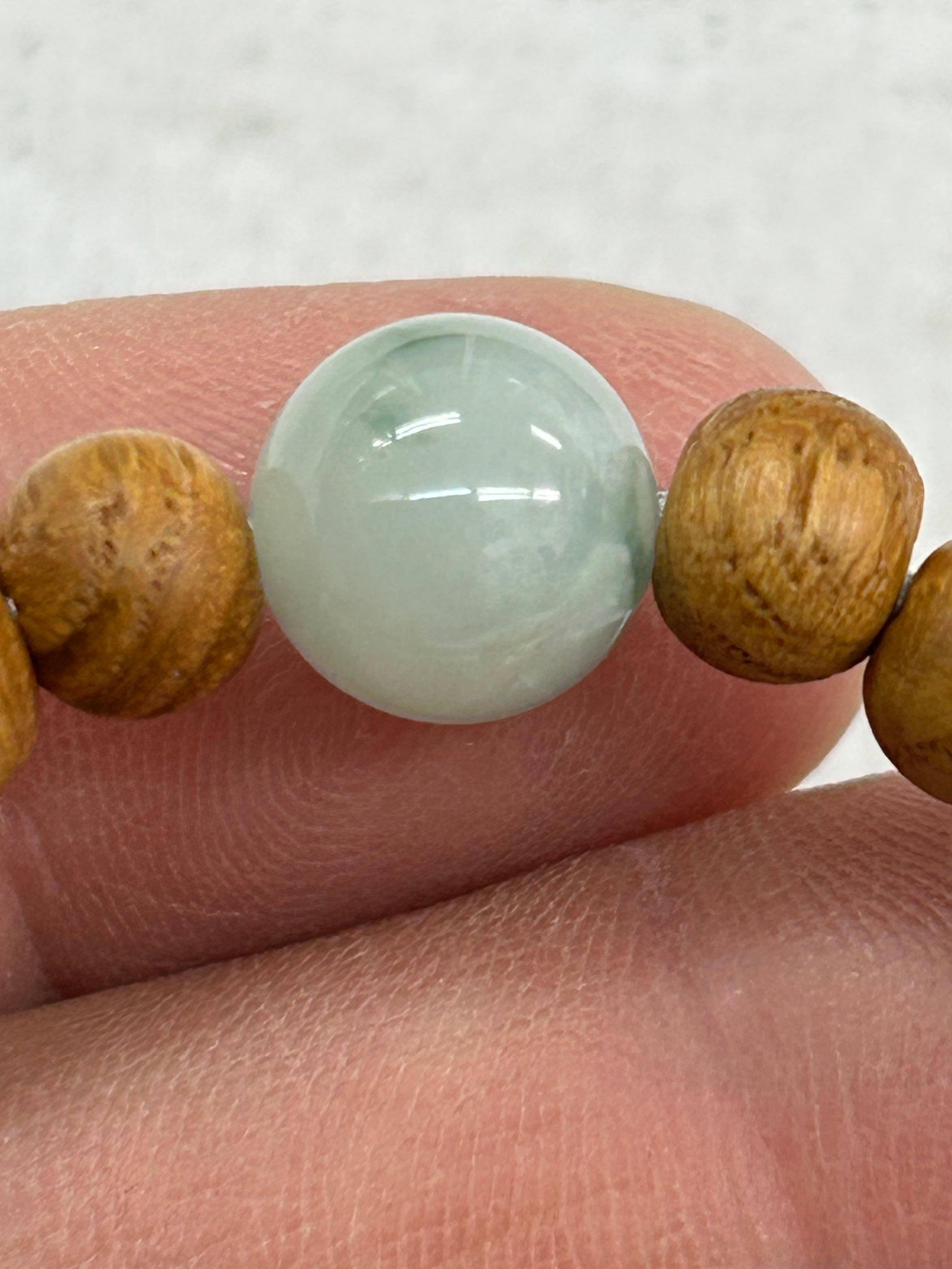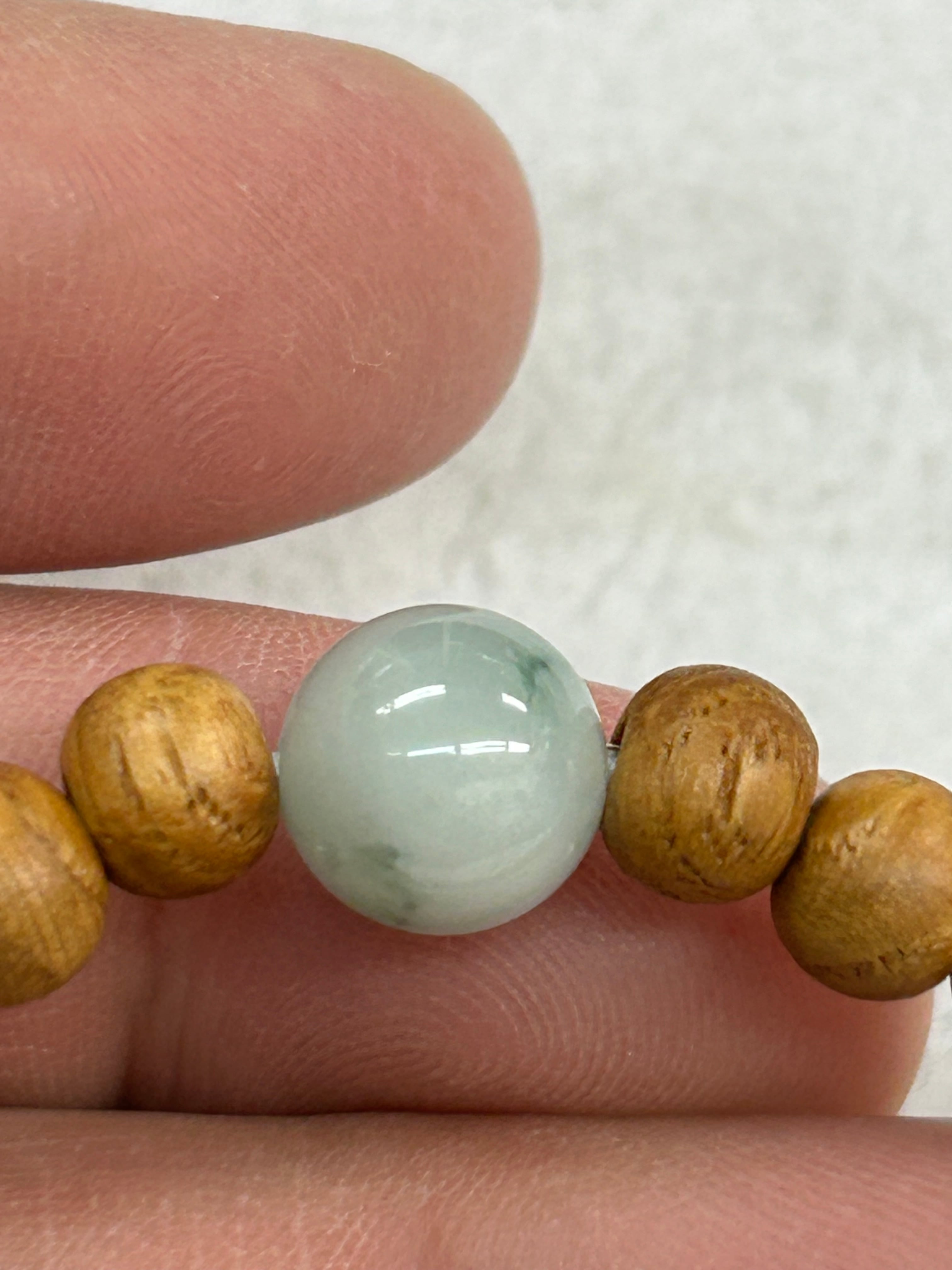 ■ 商品名:糸魚川翡翠10㍉1粒ブレスレット 国産ケヤキビーズ内周16センチ