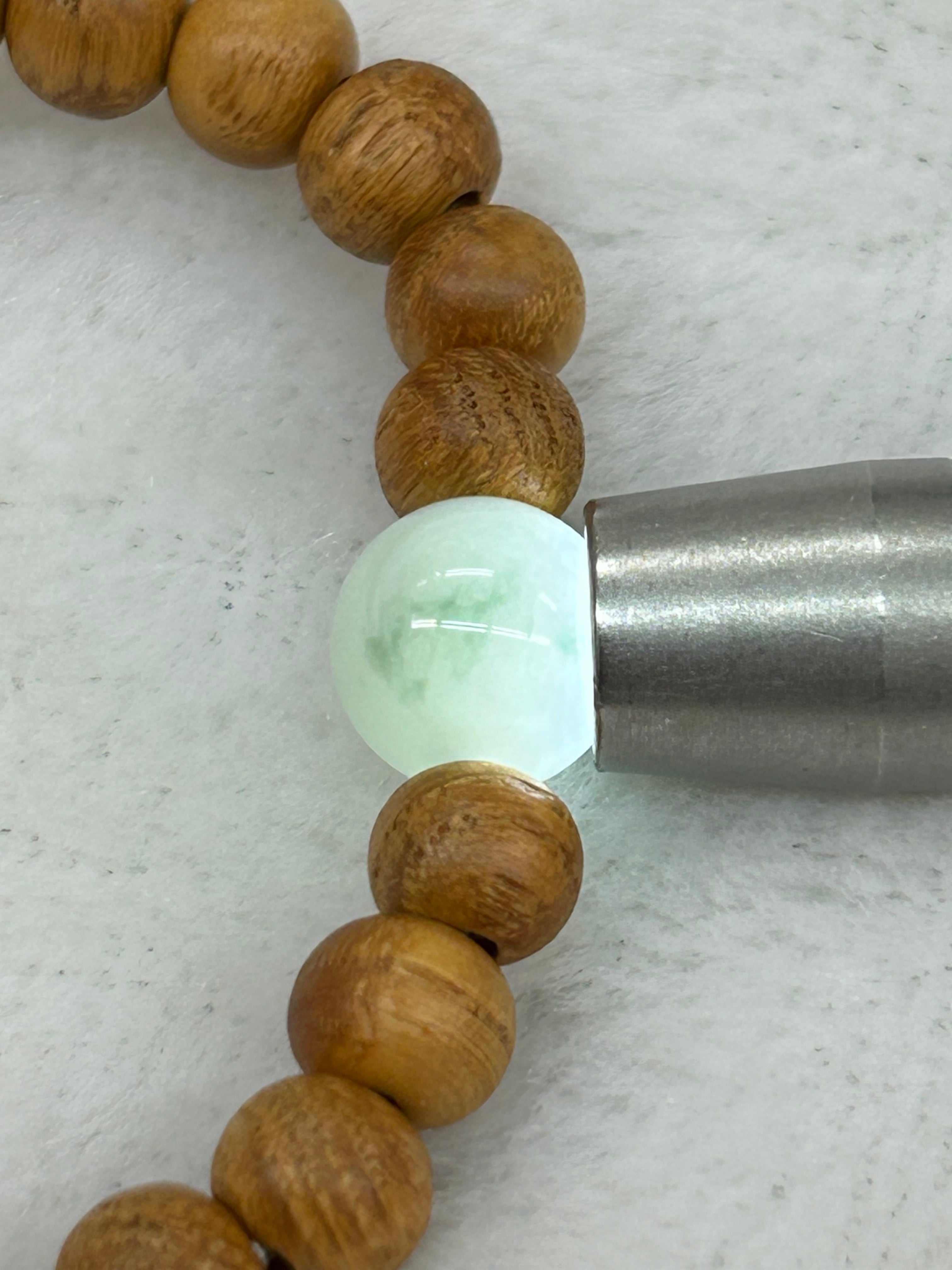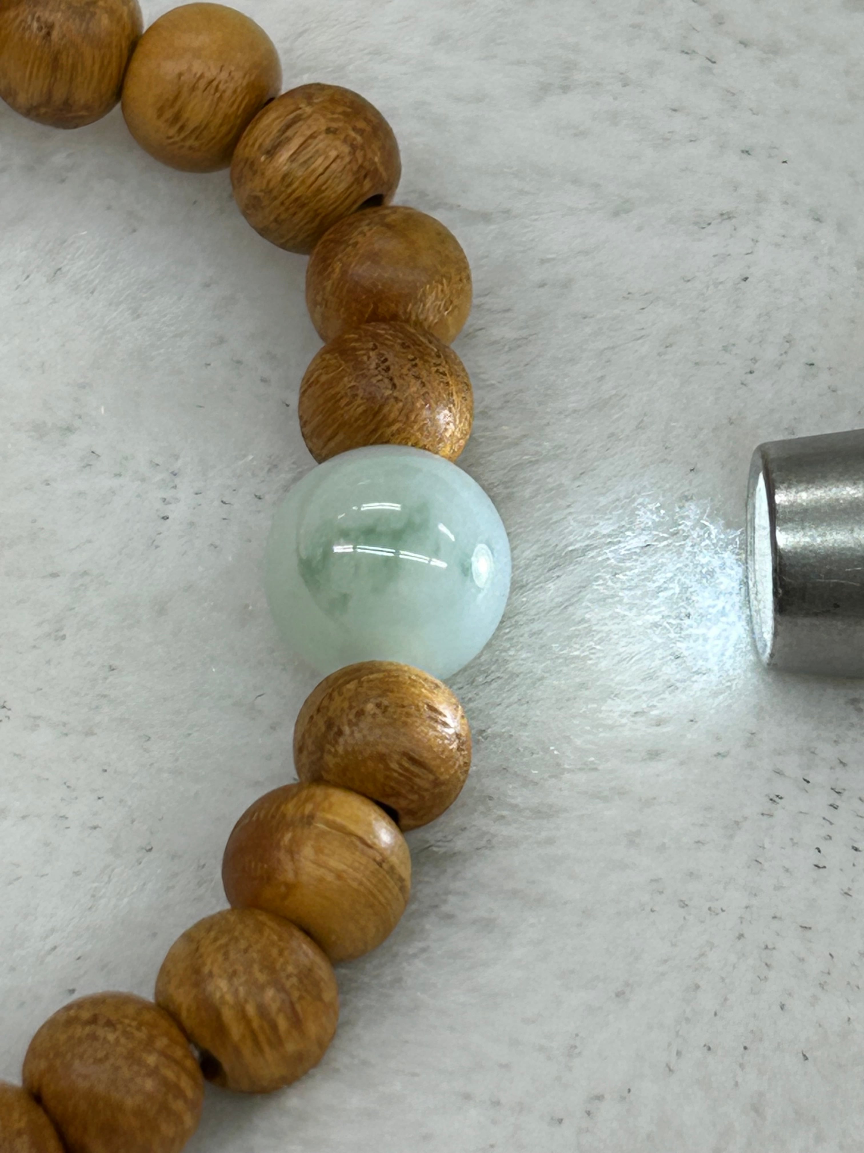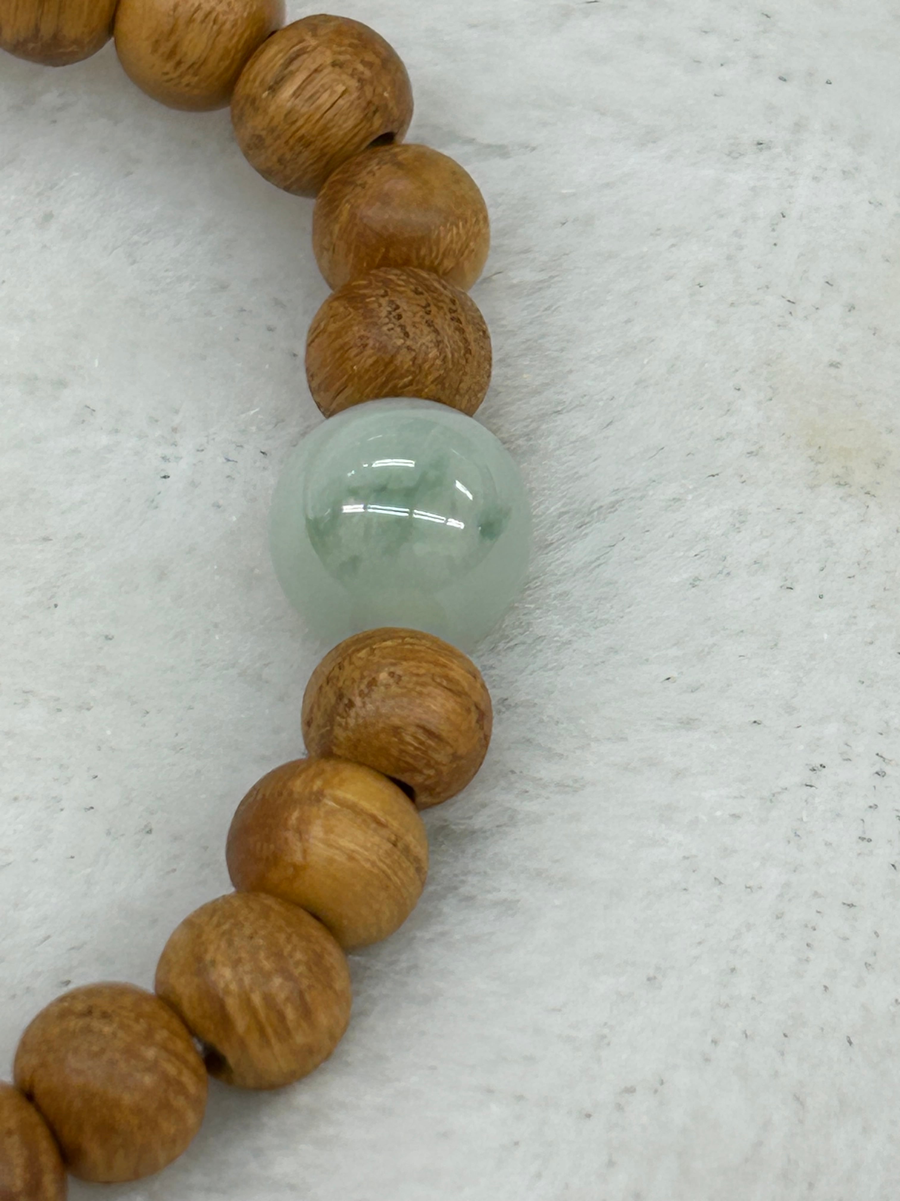 こちらのブレスレットは、国産ケヤキビーズとの組み合わせで、自然の美しさを感じさせる素晴らしいデザインが特徴です!職人の手によって丁寧に仕立てられたこのアイテムは、肌に優しく、光を透過する翡翠の美しい色合いが心を落ち着けてくれることでしょう。内周は16センチで、程よいフィット感を実現しています。