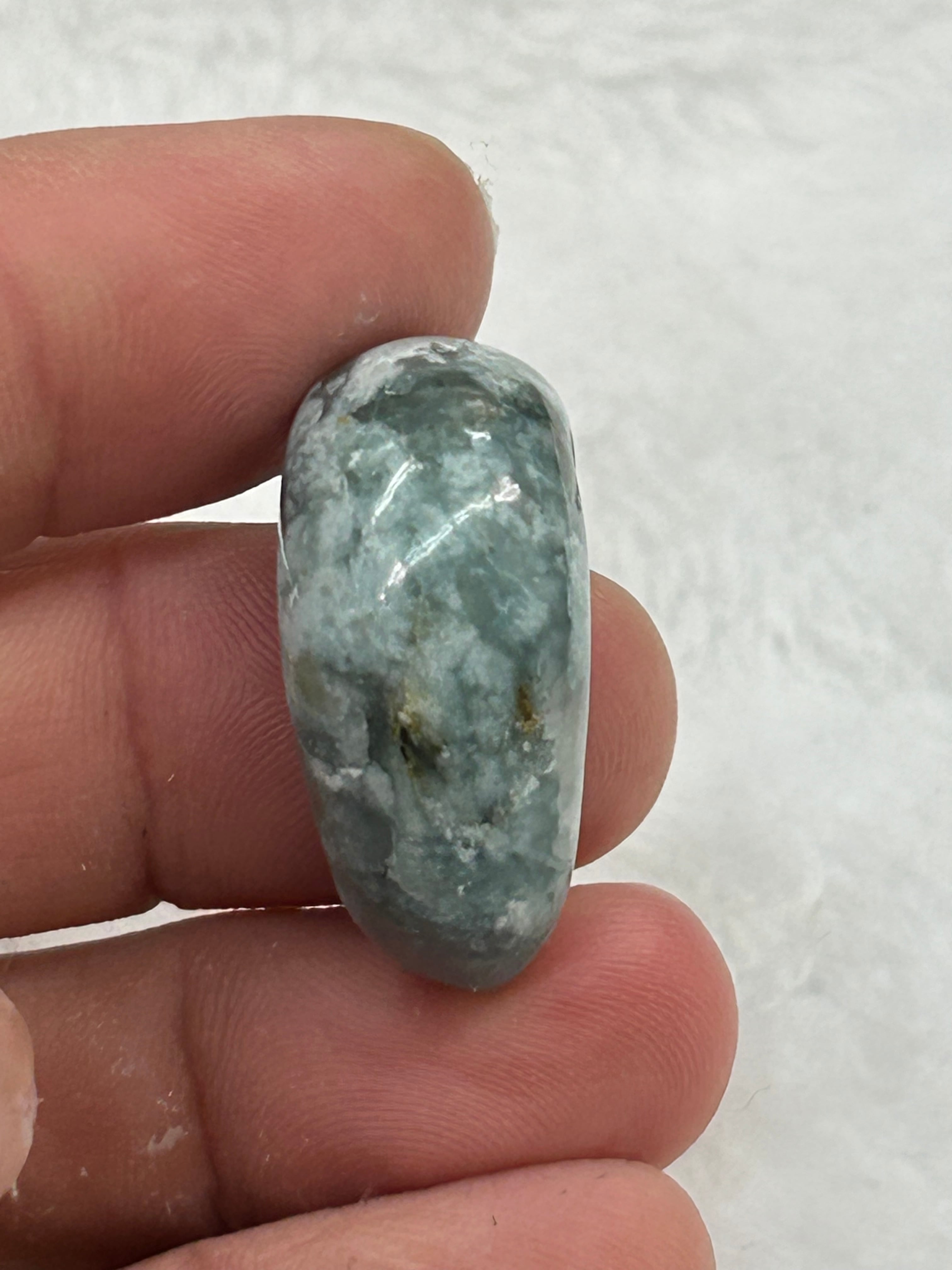 (青)リチアトルマリン入り長石 勾玉19×30×14ミリ