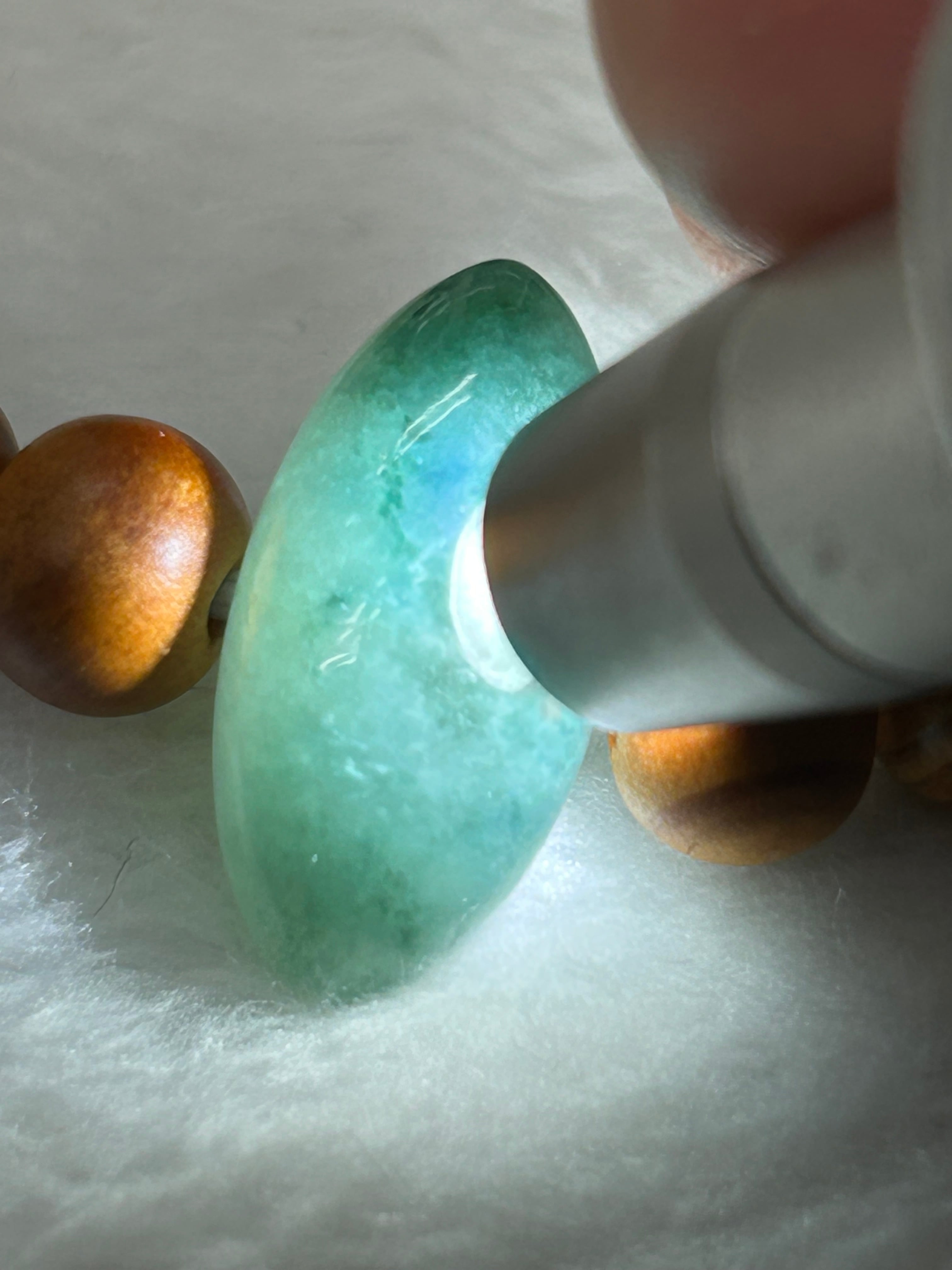 このブレスレットは、おしゃれなアクセサリーとしてだけでなく、翡翠の持つ癒しの力があなたの日常に安らぎや活力をもたらす可能性があります。青色、緑色、白色の組み合わせが輝く姿は、あなたのスタイルを一層特別なものにしてくれるでしょう。