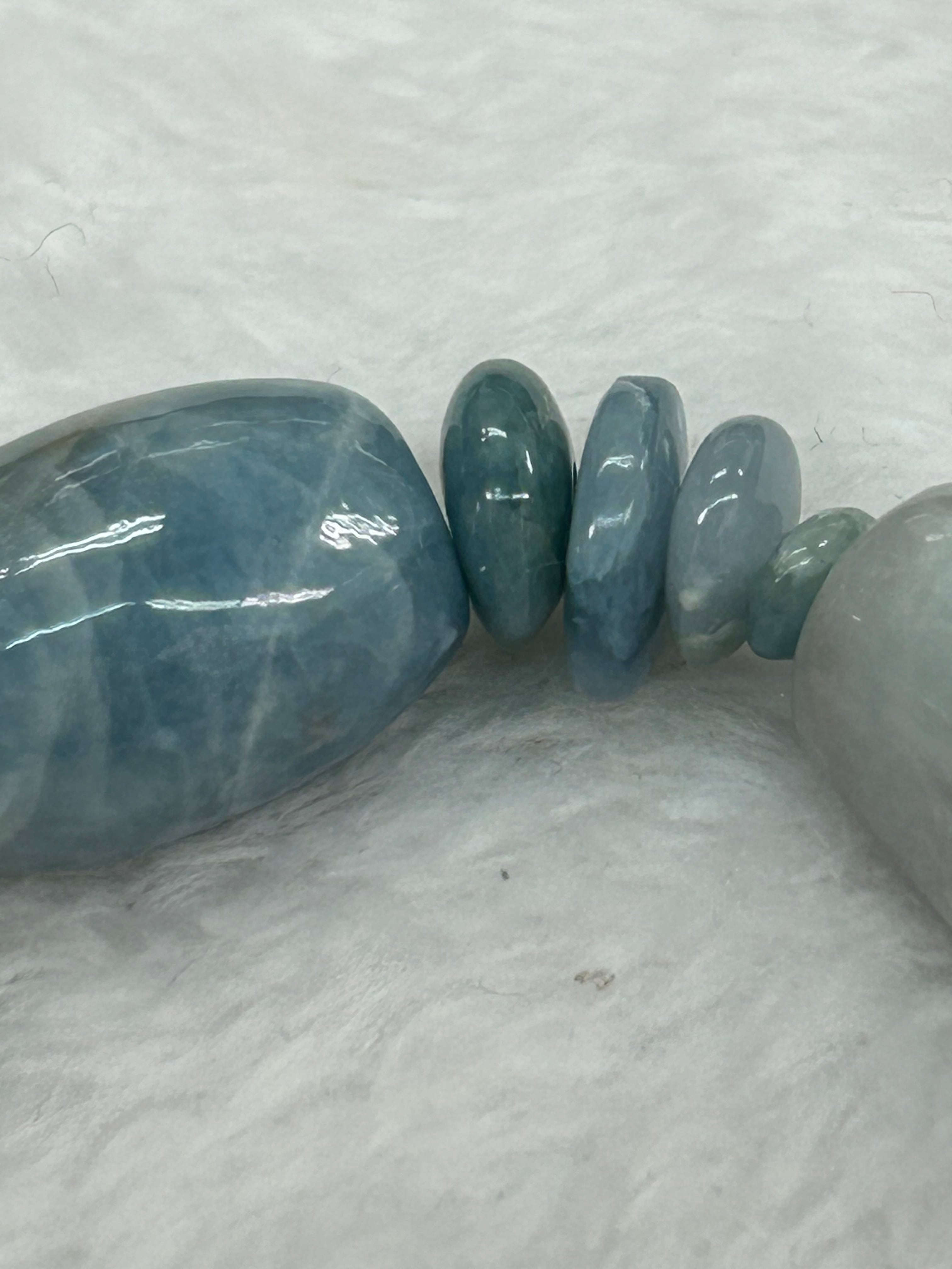 こちらのブレスレットは、独特な形状の翡翠が織りなす美しいデザインが特徴です!丁寧に選ばれたそれぞれの翡翠が、唯一無二の存在感を放ち、あなたのスタイルを華やかに引き立てます。職人の技術が光るこのアイテムは、肌に優しく、翡翠の持つエネルギーが心を癒やしてくれることでしょう。内周は17センチで、軽やかな着け心地を実現しています。