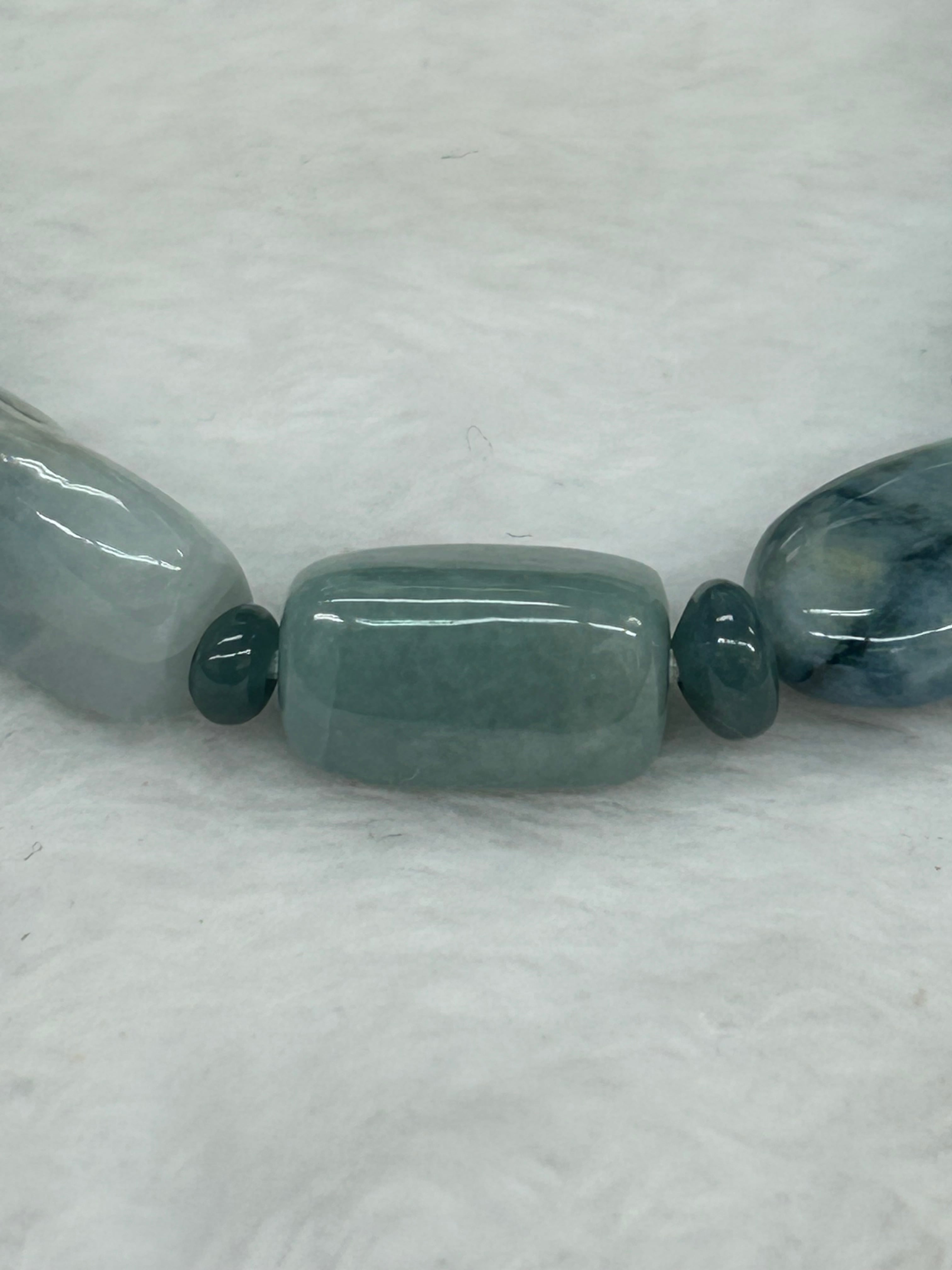 この商品は、入りコン沢の翡翠を丁寧にタンブル仕上げした「入りコン沢翡翠 タンブルブレスレット 内周17㌢」です。