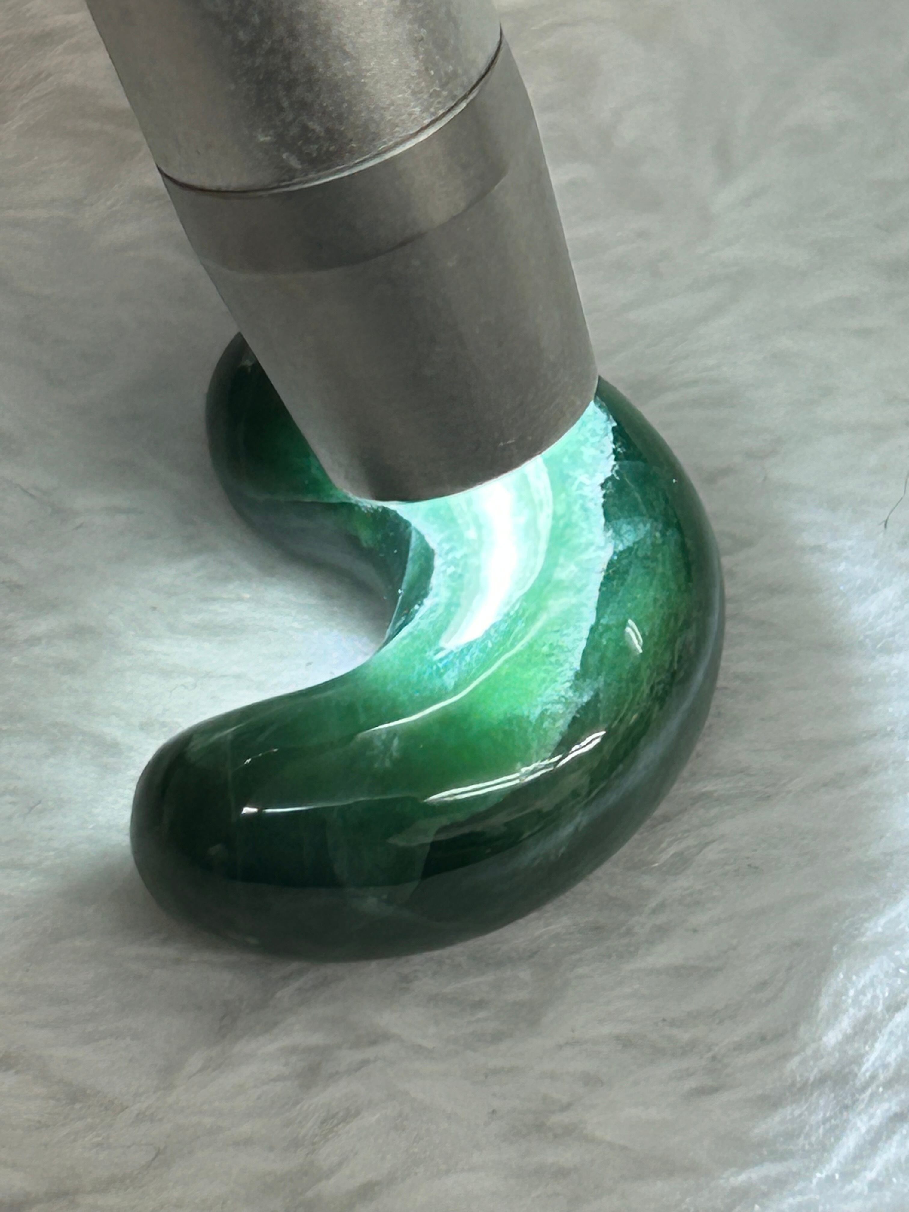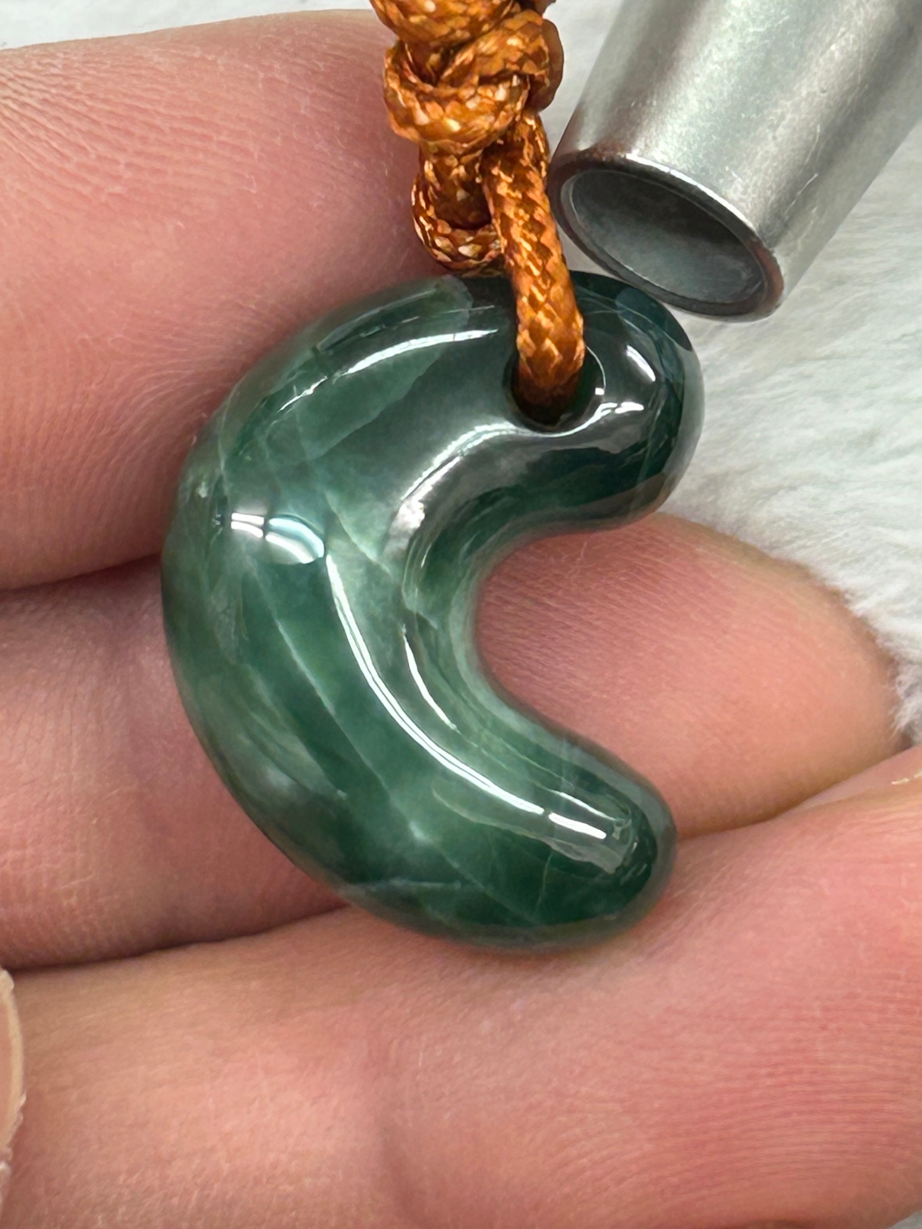 翡翠は古くから魔除けや幸運の象徴とされ、持つことで安らぎや心を落ち着かせる効果が期待できる素敵なアイテムです。この濃緑色の翡翠勾玉が、あなたの日常に特別なエネルギーをもたらすことを願っています。