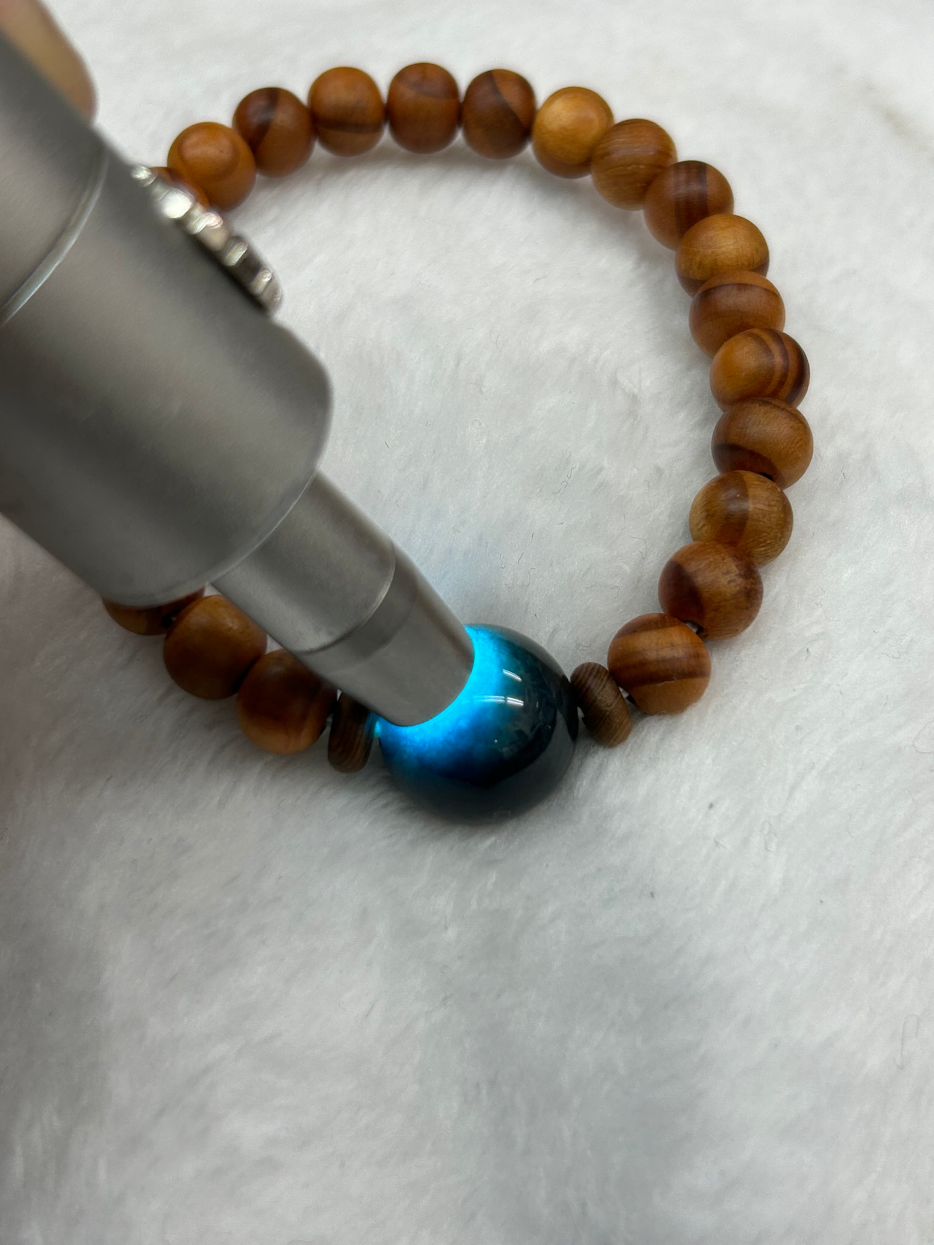 ■ 商品名:15ミリ 入りコン沢 1粒ブレスレット 松の木、杉の木ビーズ16.5㌢内周