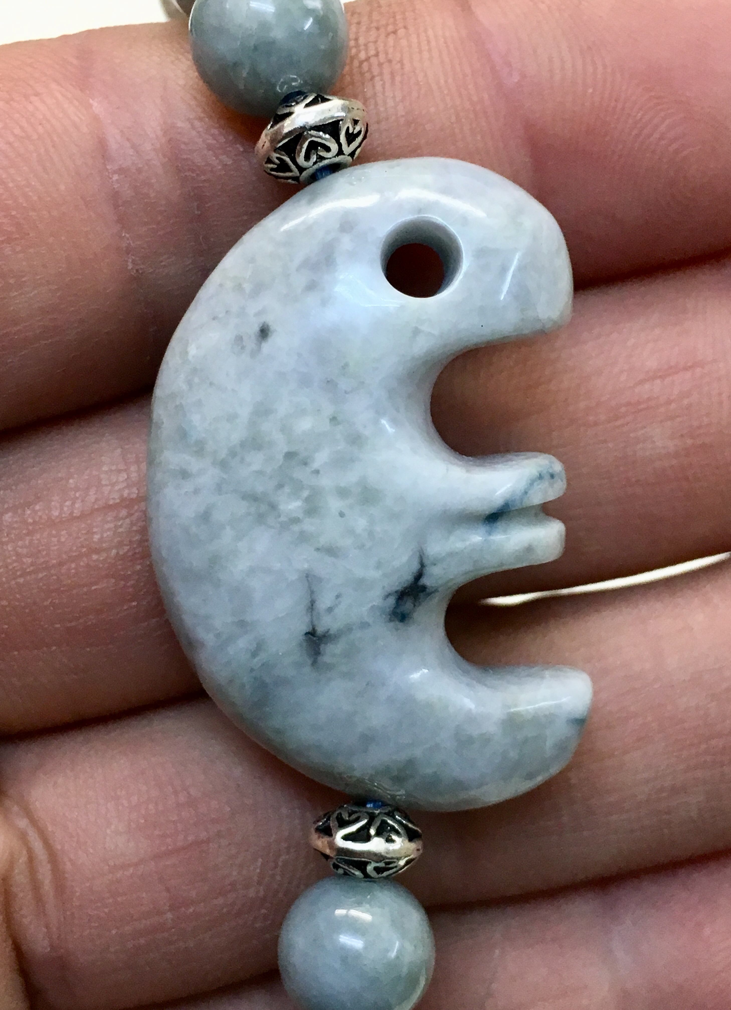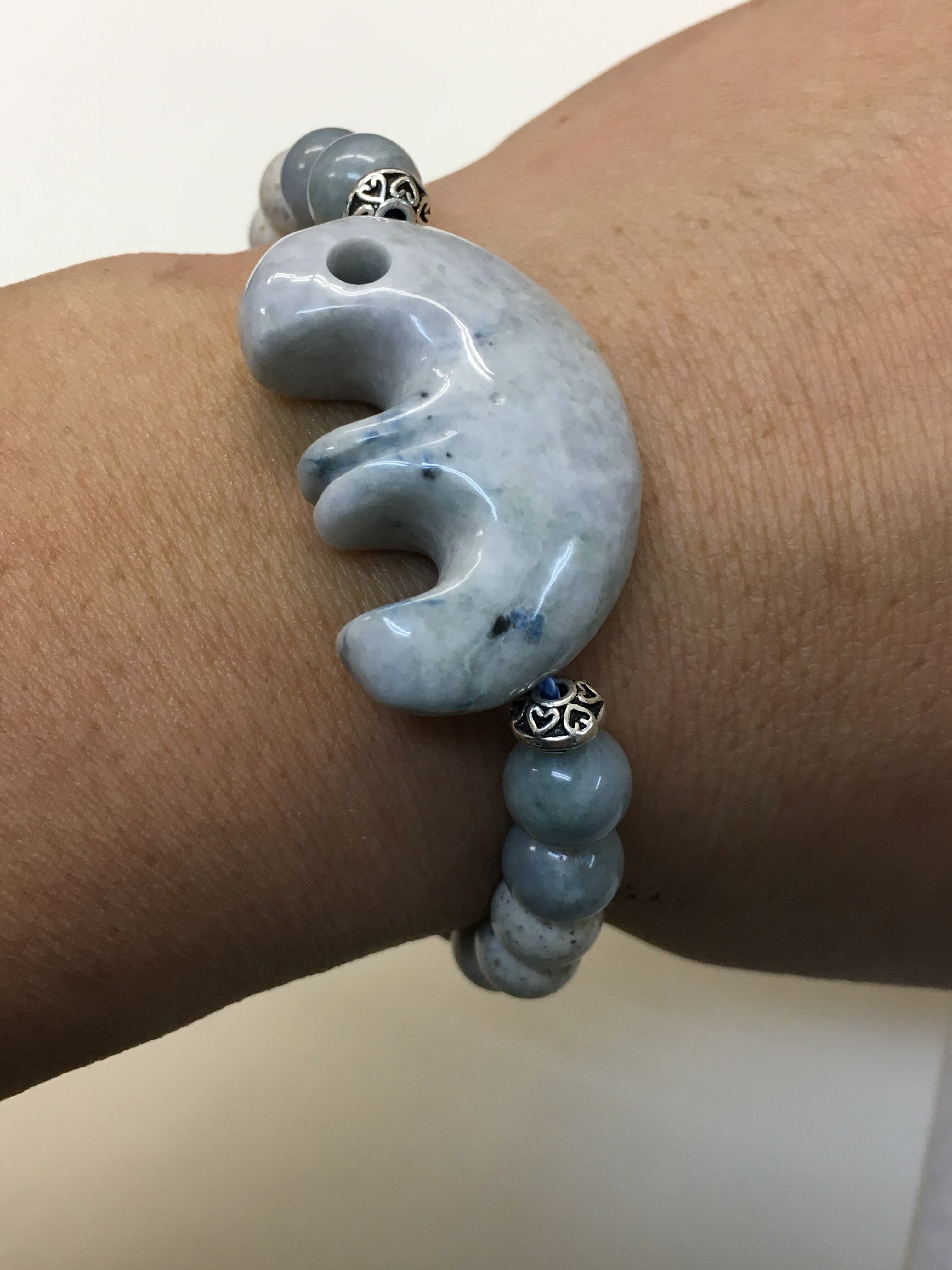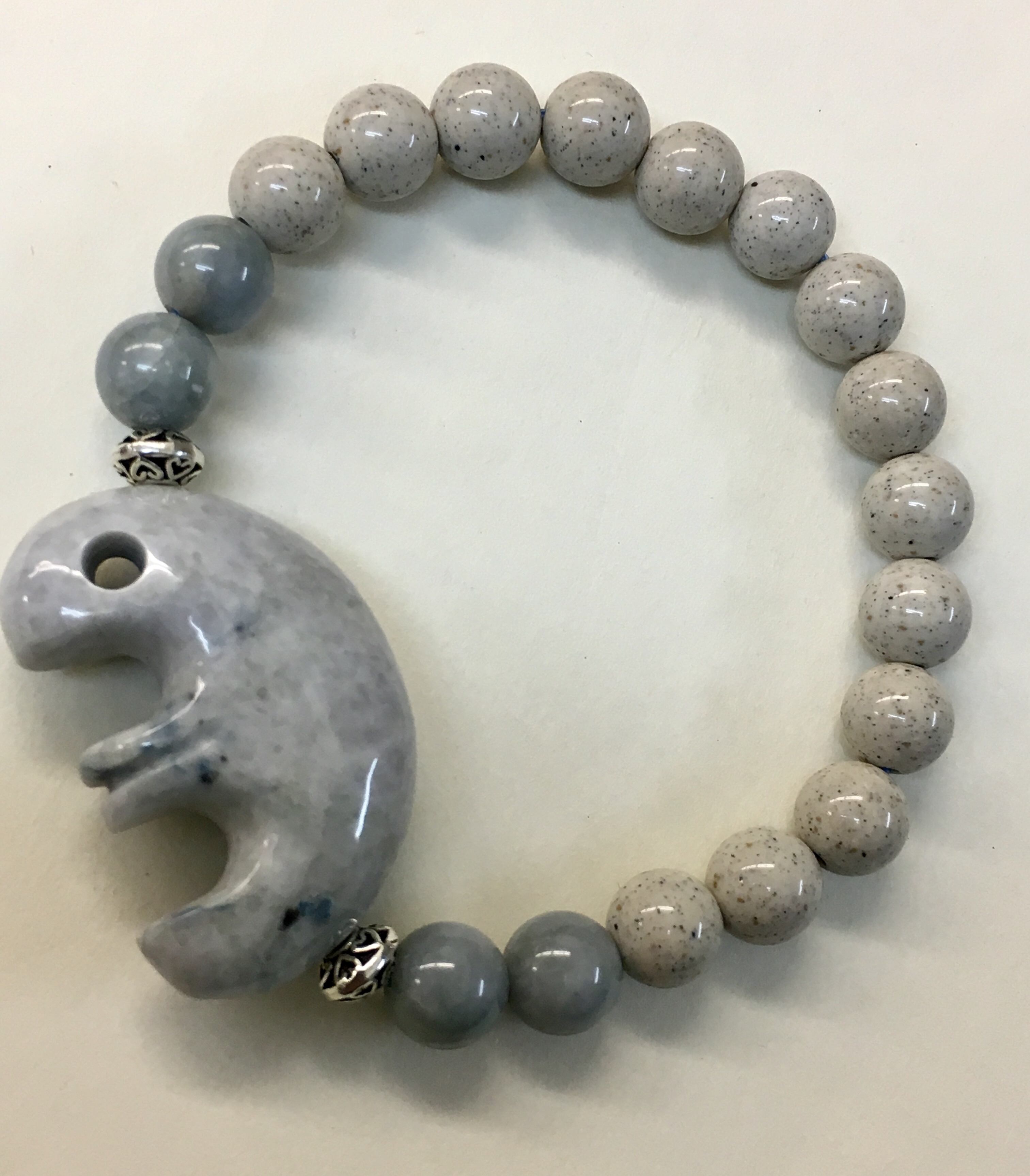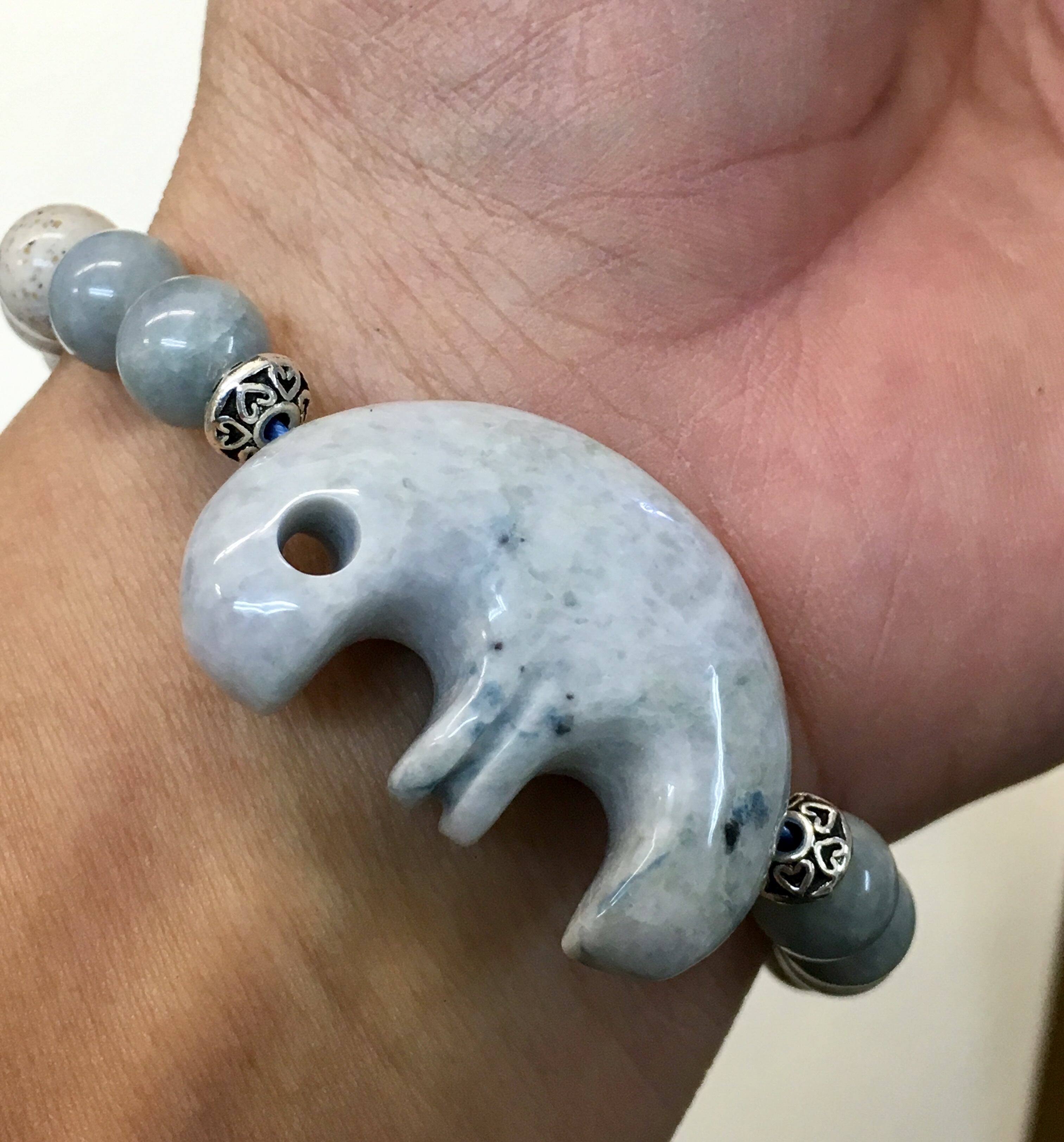 獣形勾玉に縦穴を開けまして、ブレスレットに組み込んでみました。