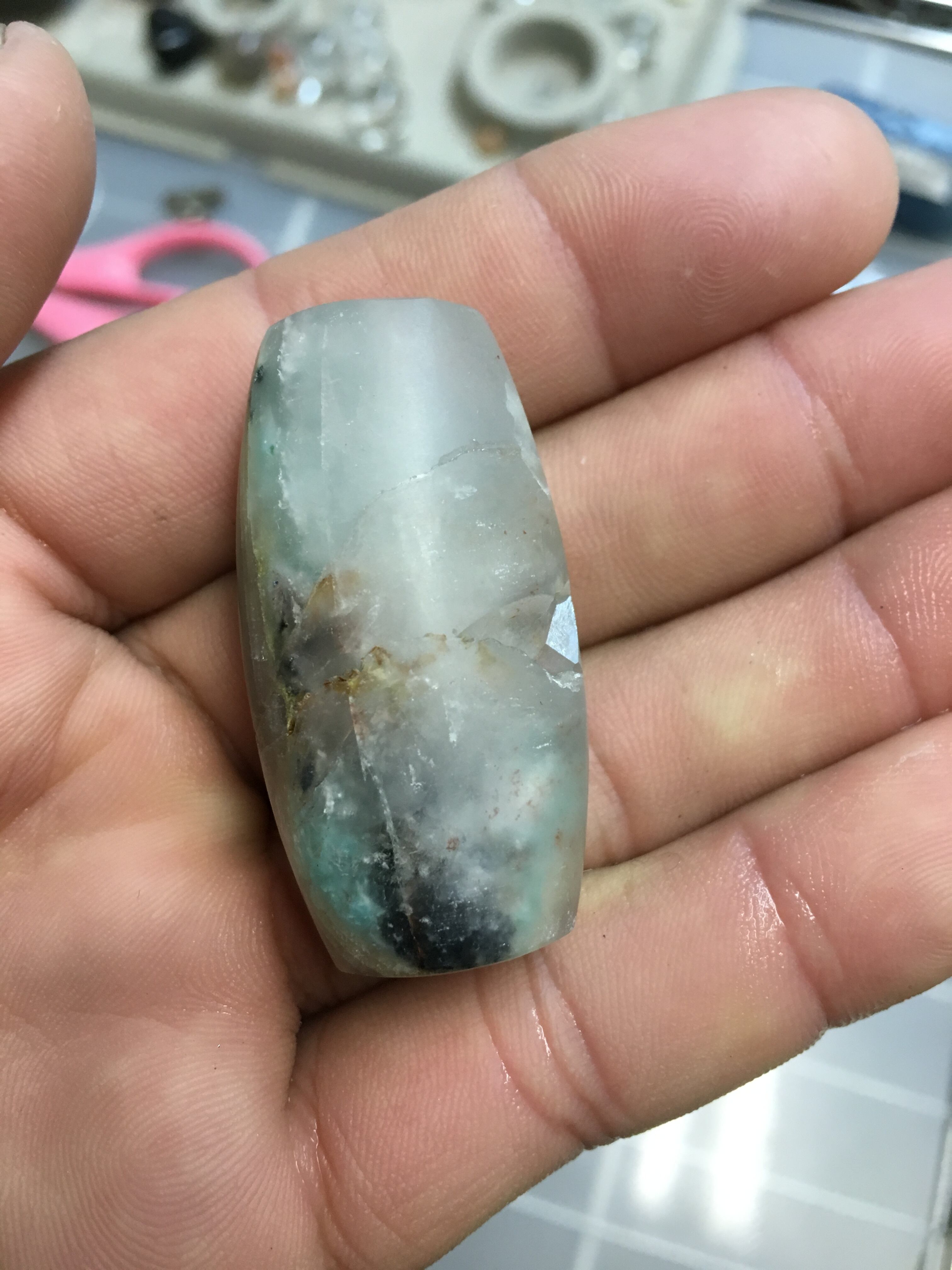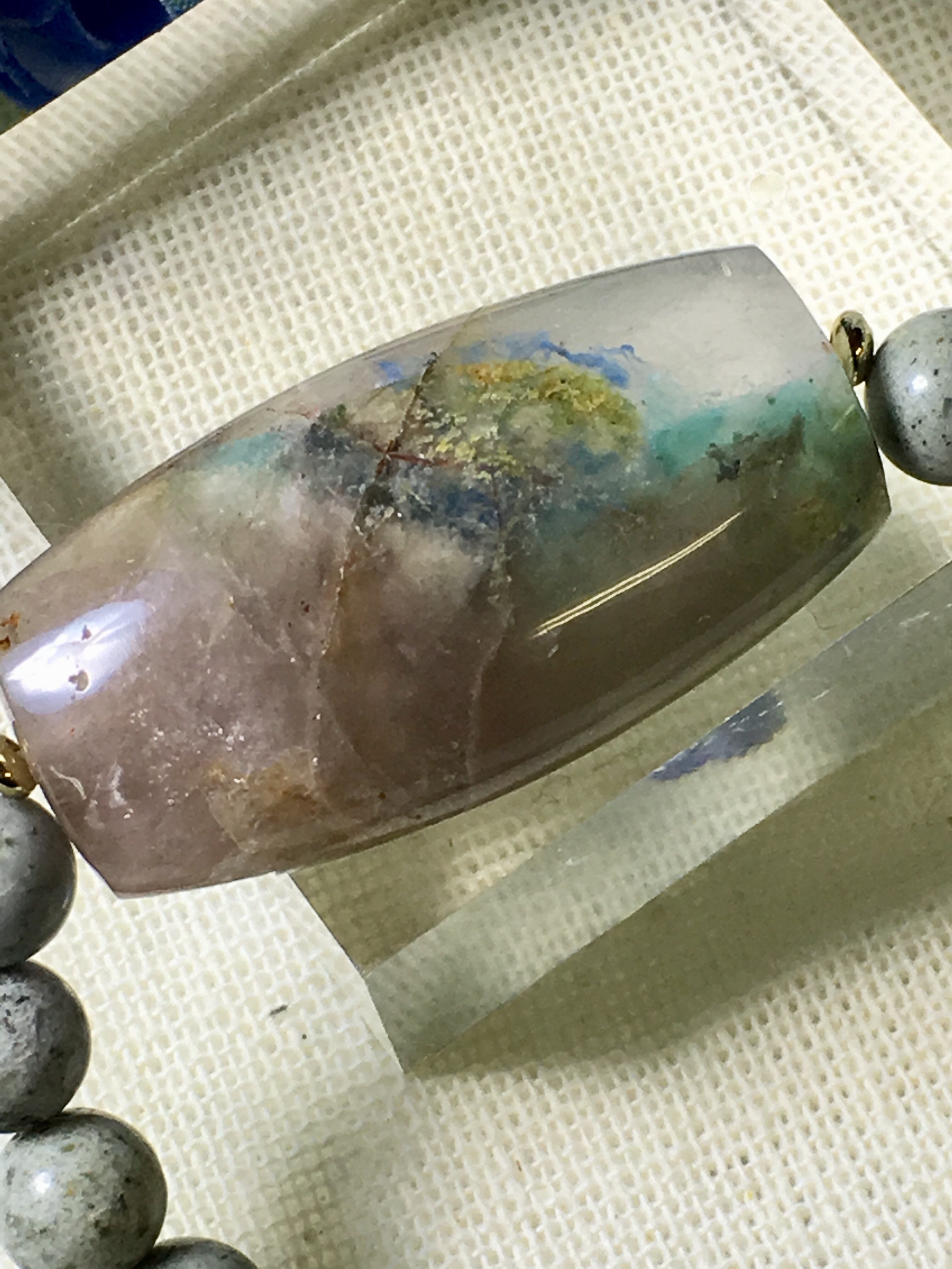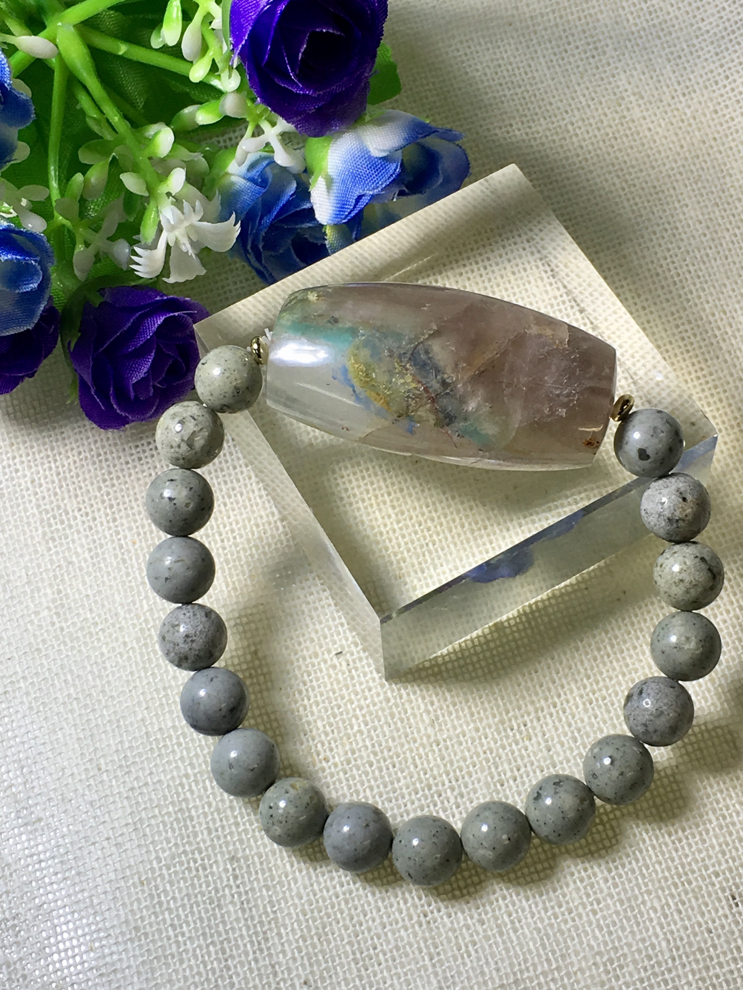 天珠形にして、姫川の青海薬石でブレスレットにしました。