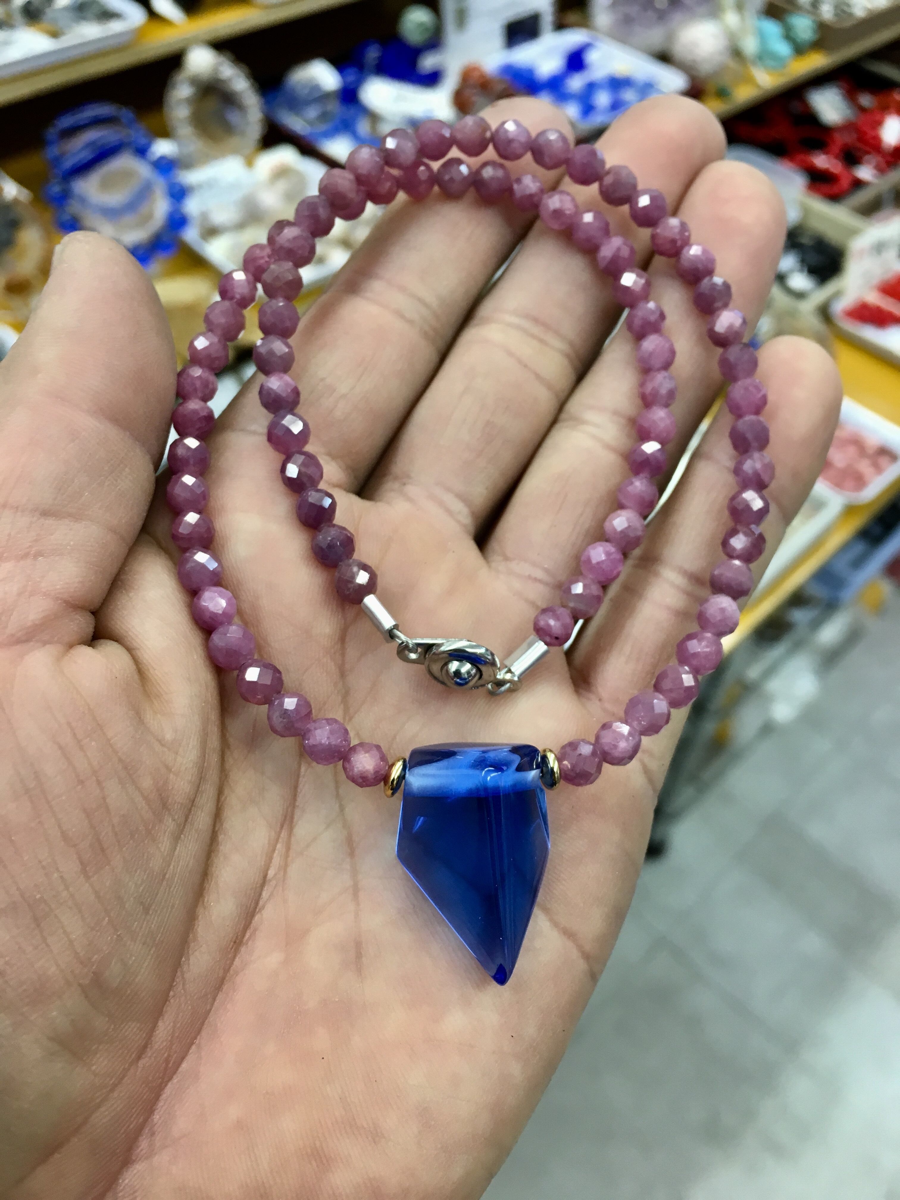 シベリアブルークォーツ+ルビーネックレス