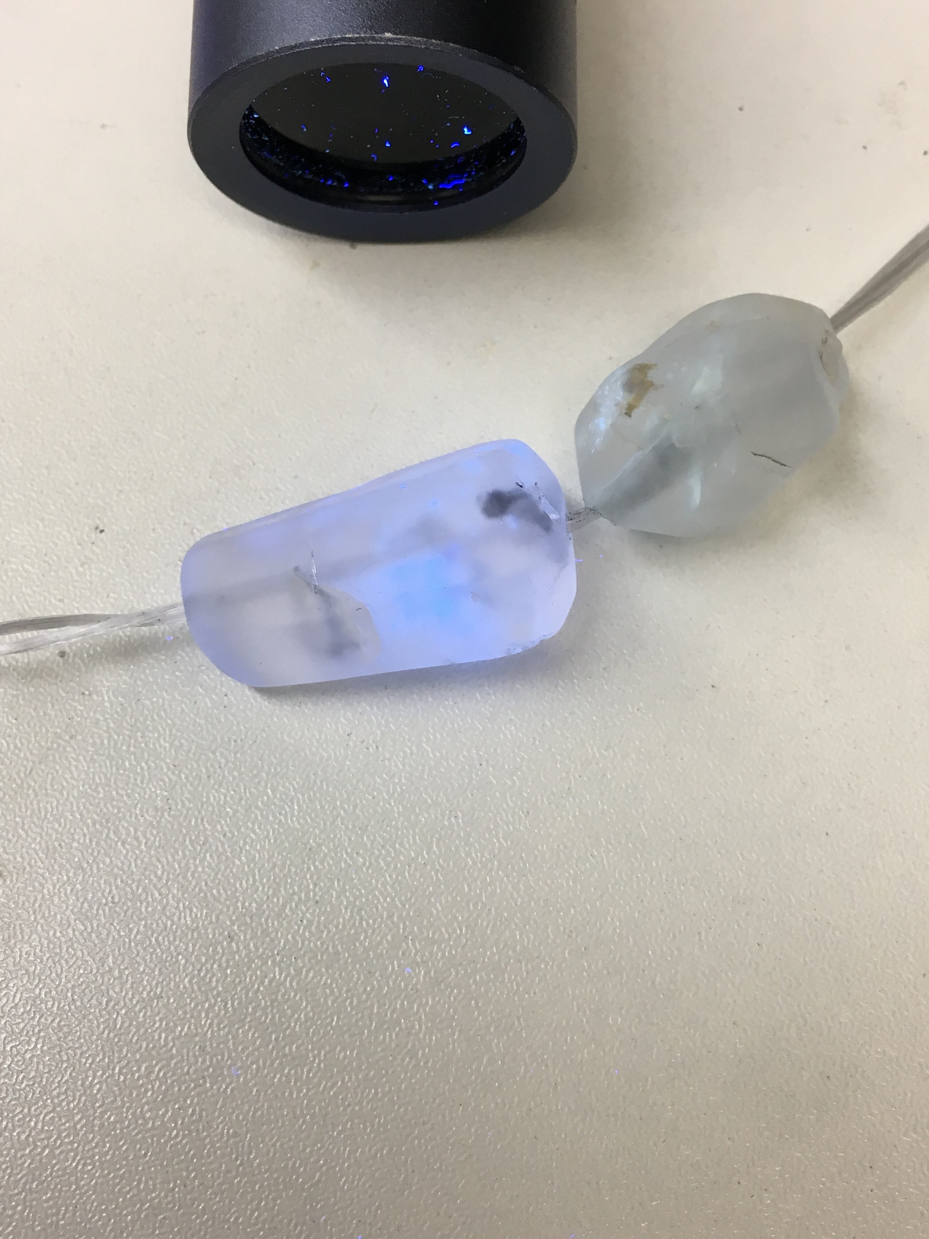 色々な色に蛍光するのは、それぞれに含まれる蛍光成分(アクチベーター)が異なることによると考えられます。