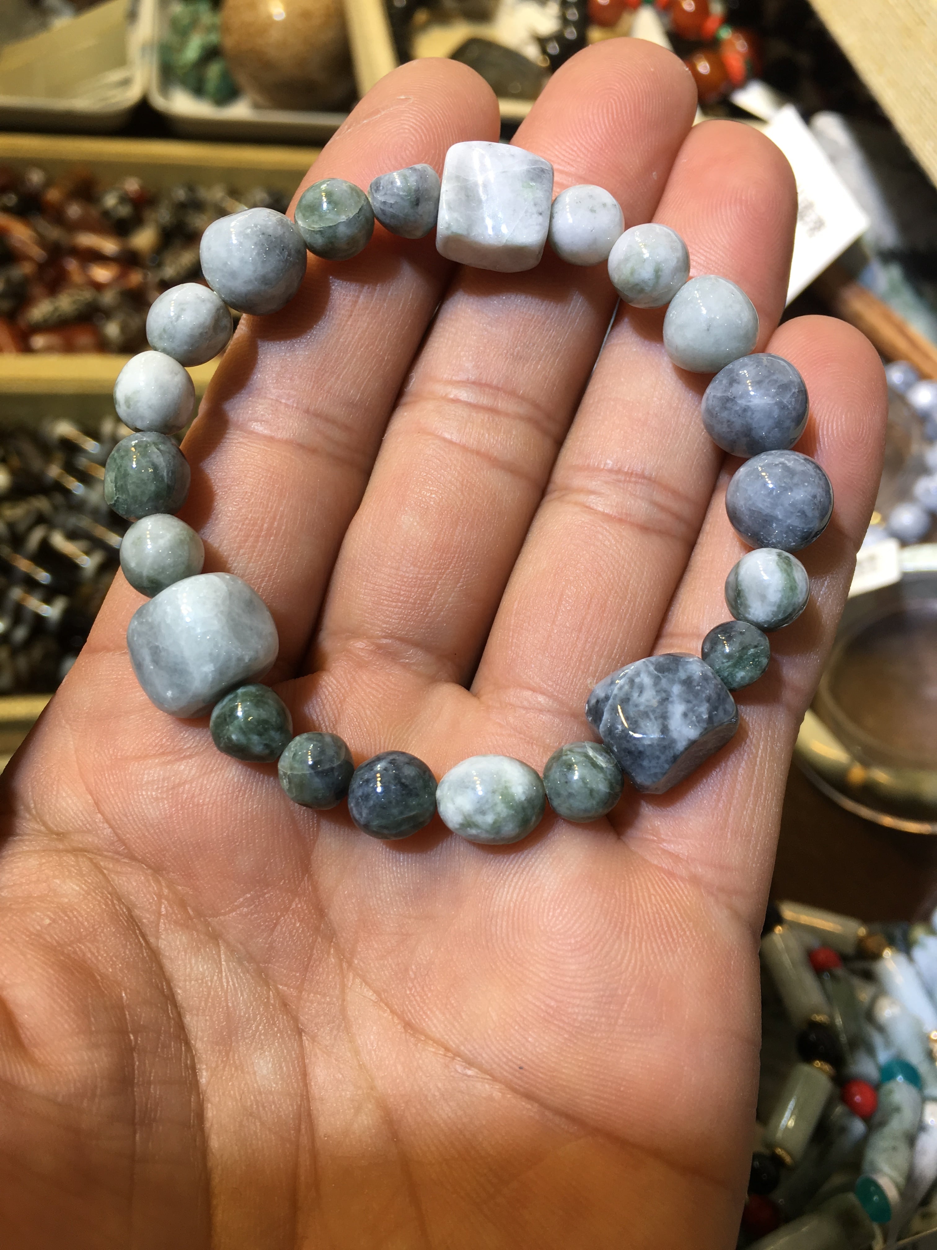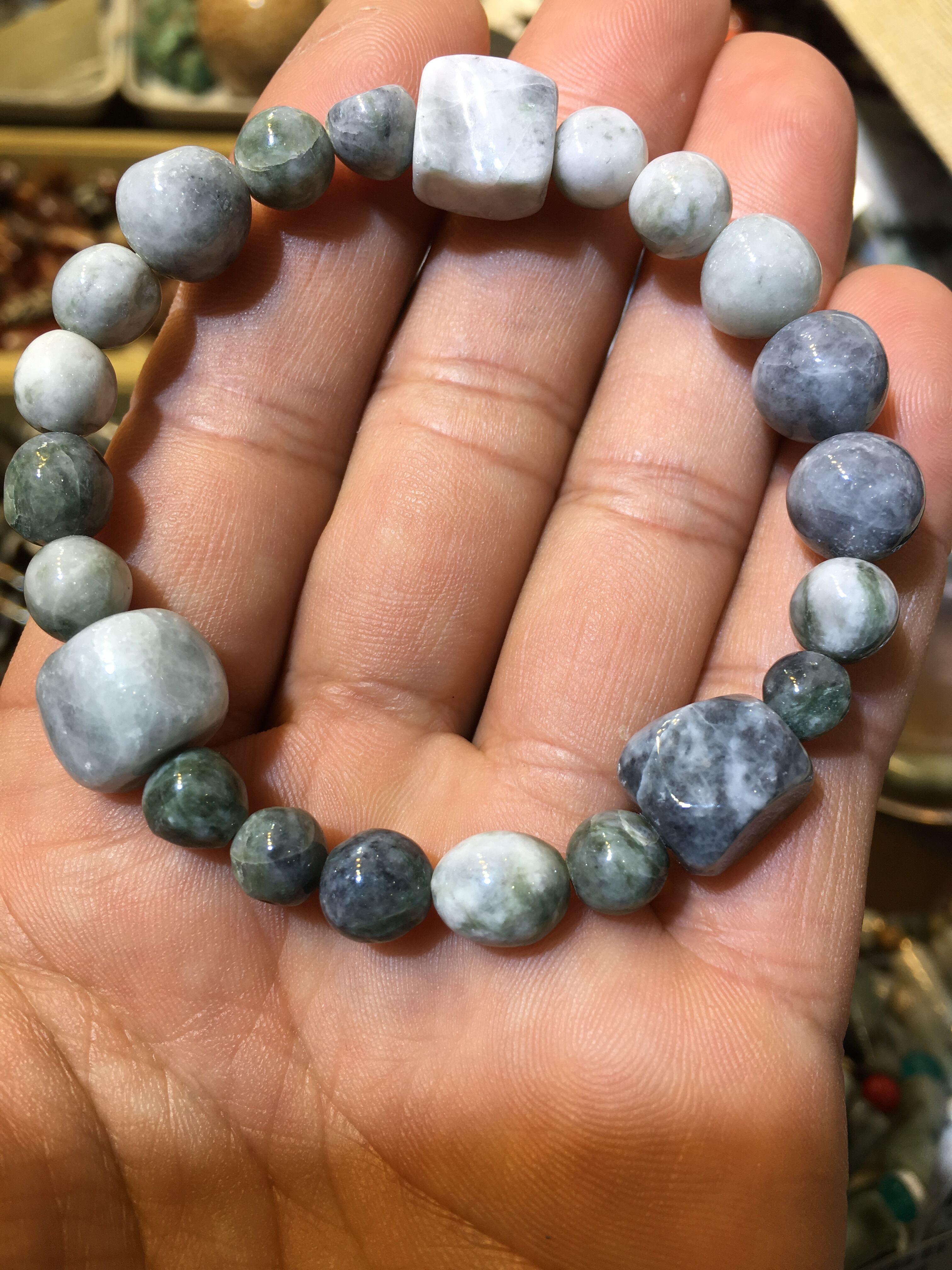 糸魚川翡翠 不揃いブレスレットメイドinケンズクリスタル