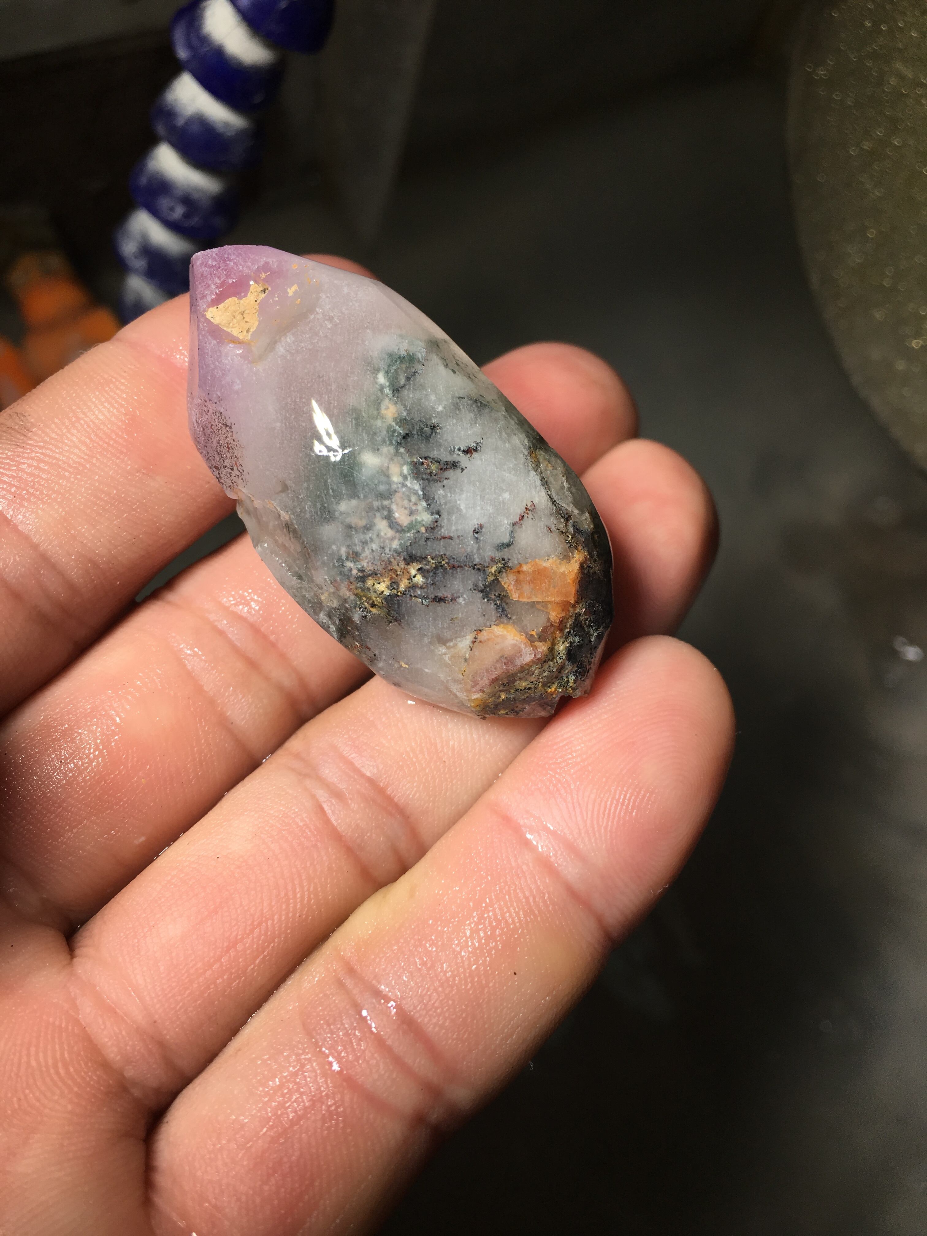 マダガスカル産のアメシストガーデンクォーツのクラスターから天珠形を作成(珍しい)
