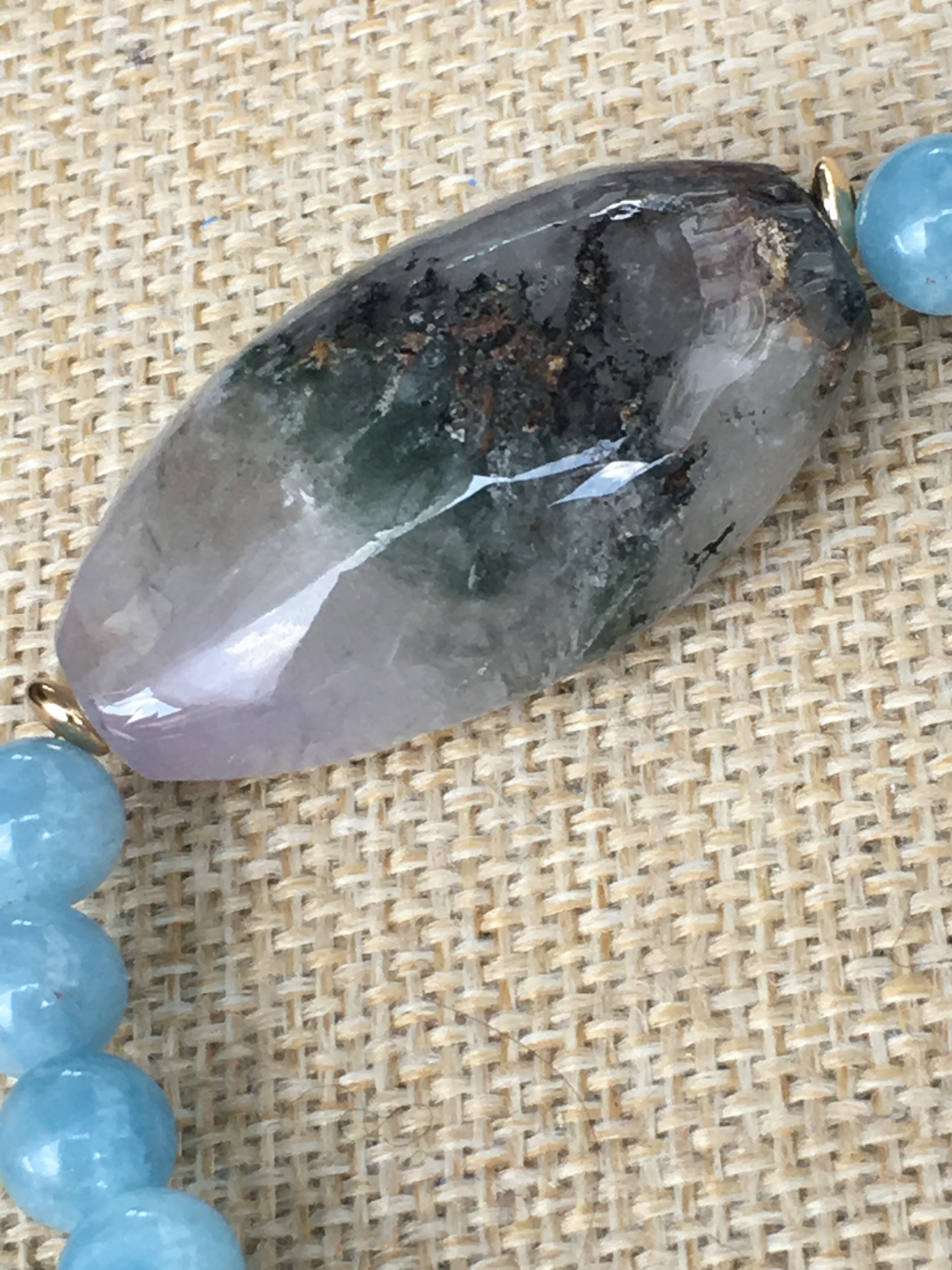 マダガスカル産のクロムファントムクォーツの勾玉を5つあしらいました。