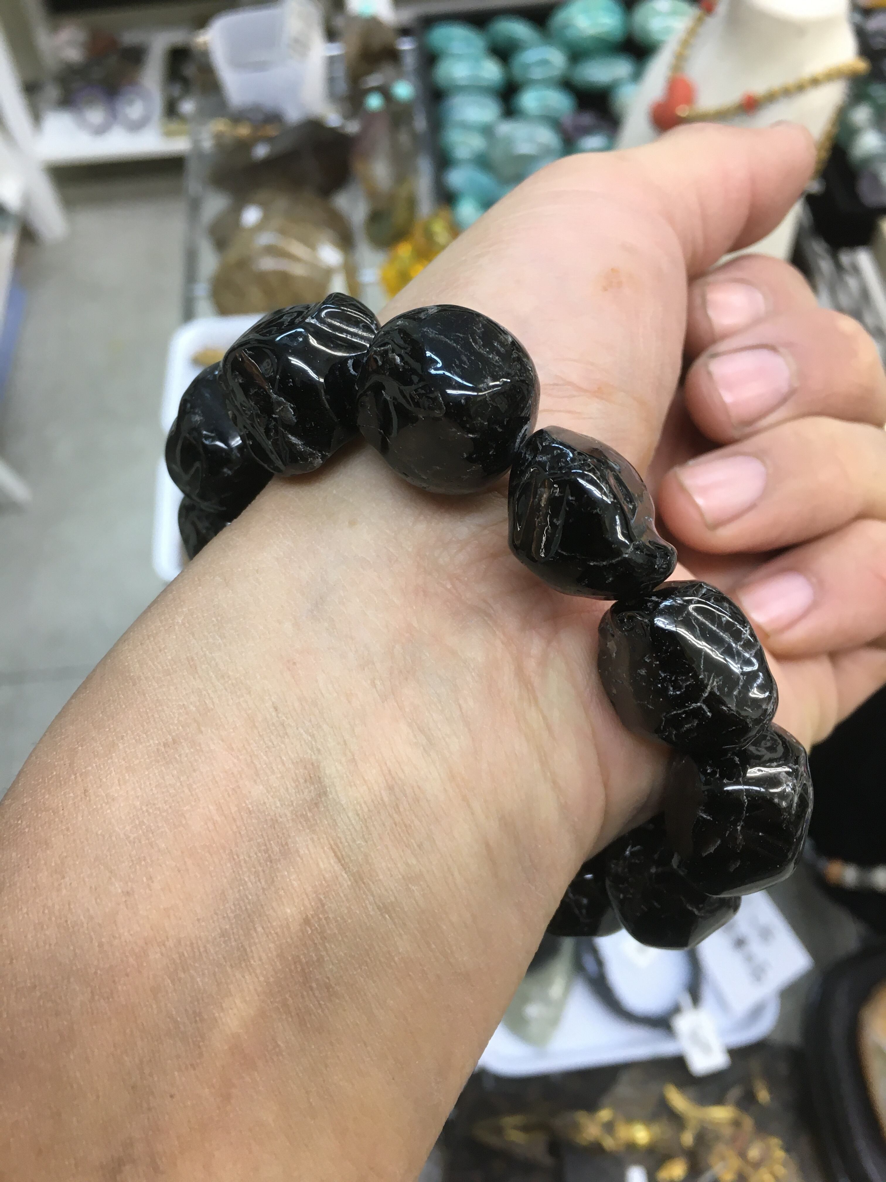 元々は18ミリ玉のブレスレットを作成するよ手でしたが、結果的にこの様な形になっております。