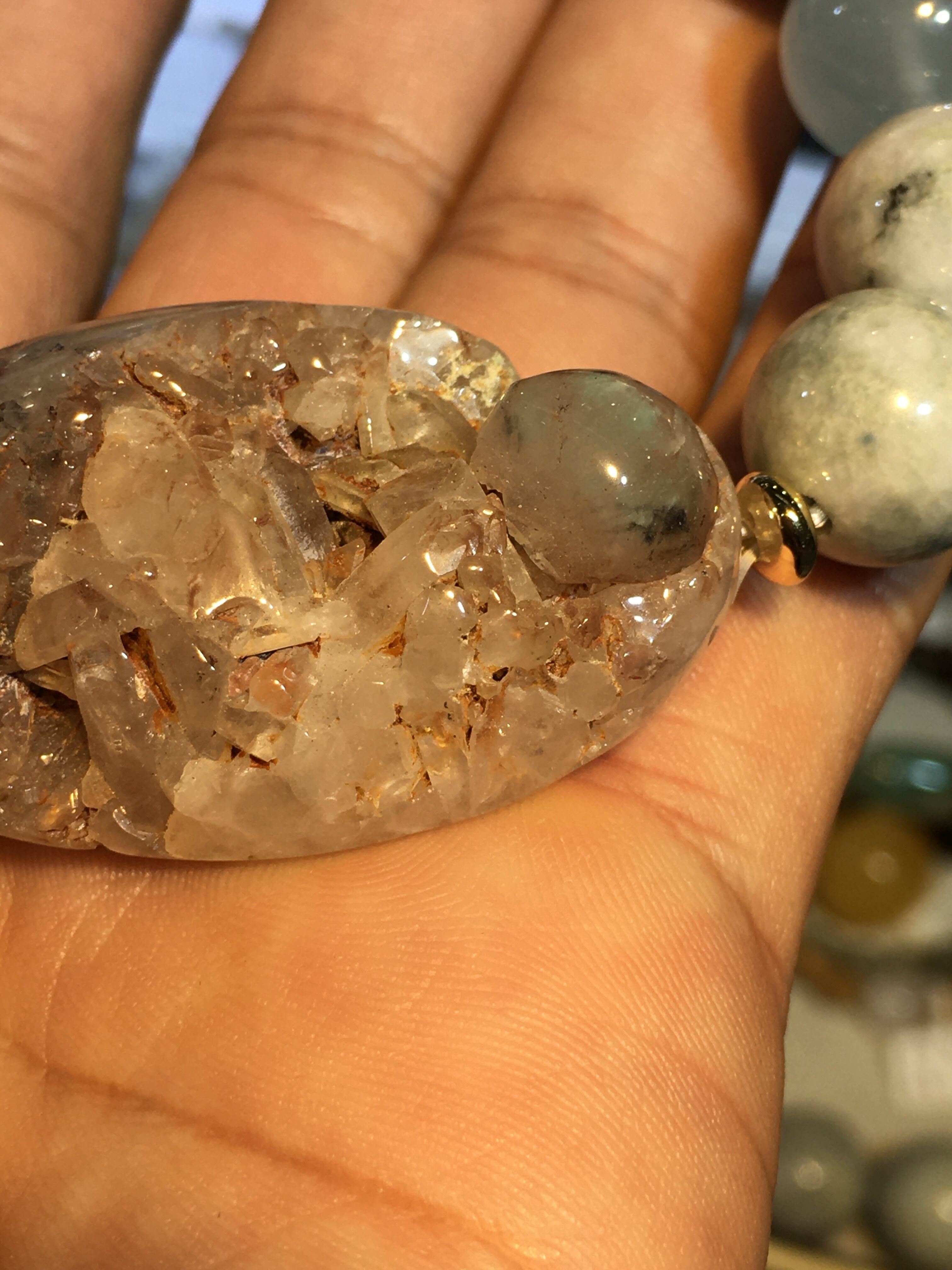 アホアイトの含まれる水晶のクラスターをそのまま磨いて、タンブルビーズにしました。