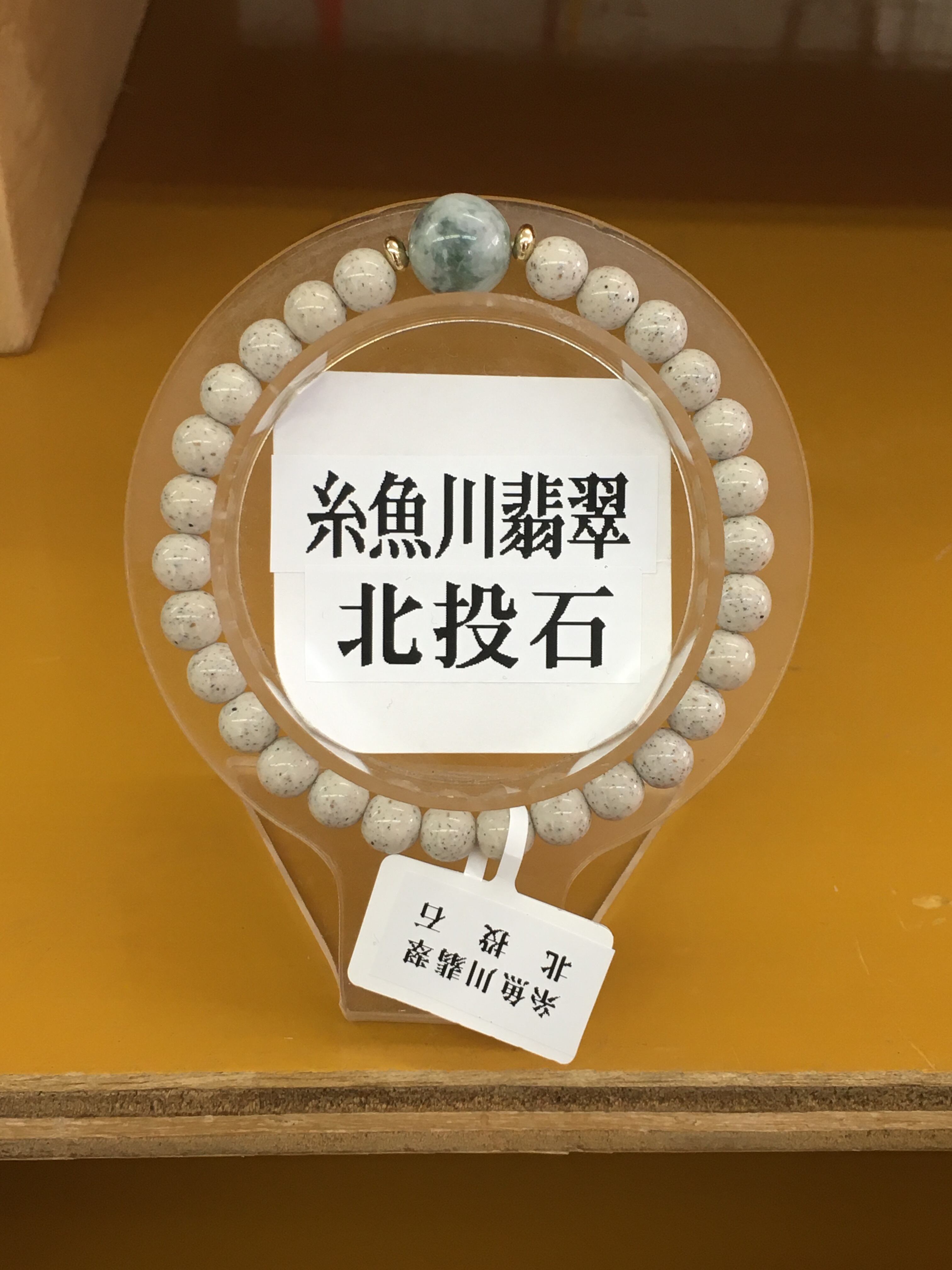 翡翠の両脇に金属算盤玉(銅にメッキ)