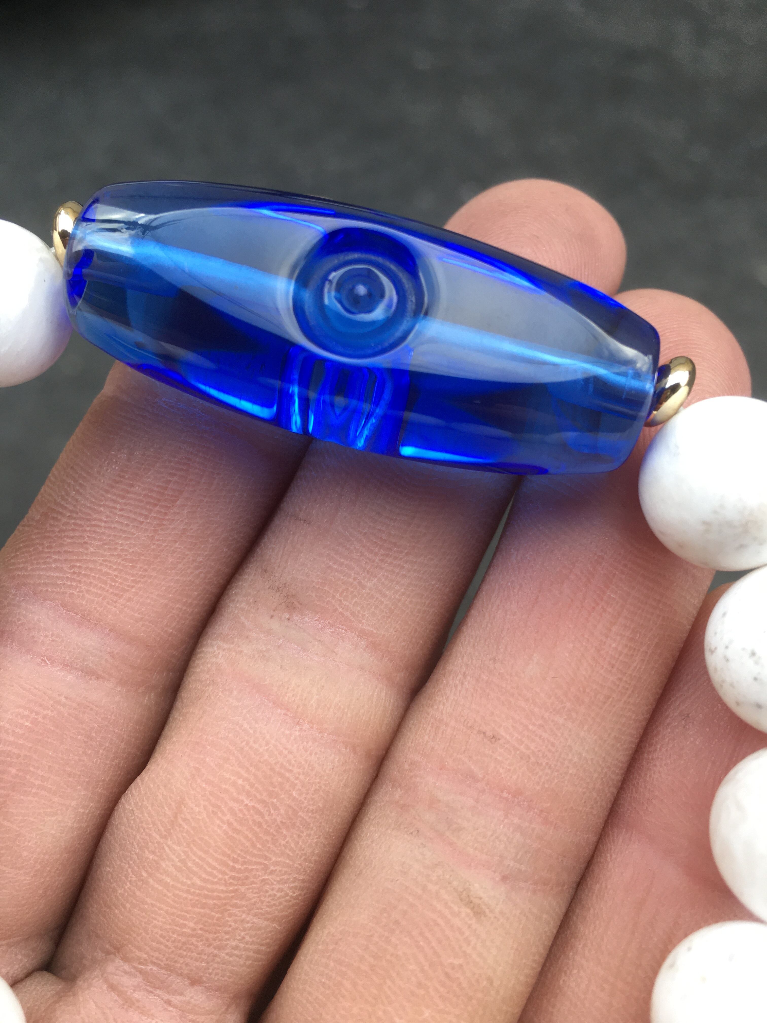 二眼を彫り込み、「青天珠」を作成致しました。