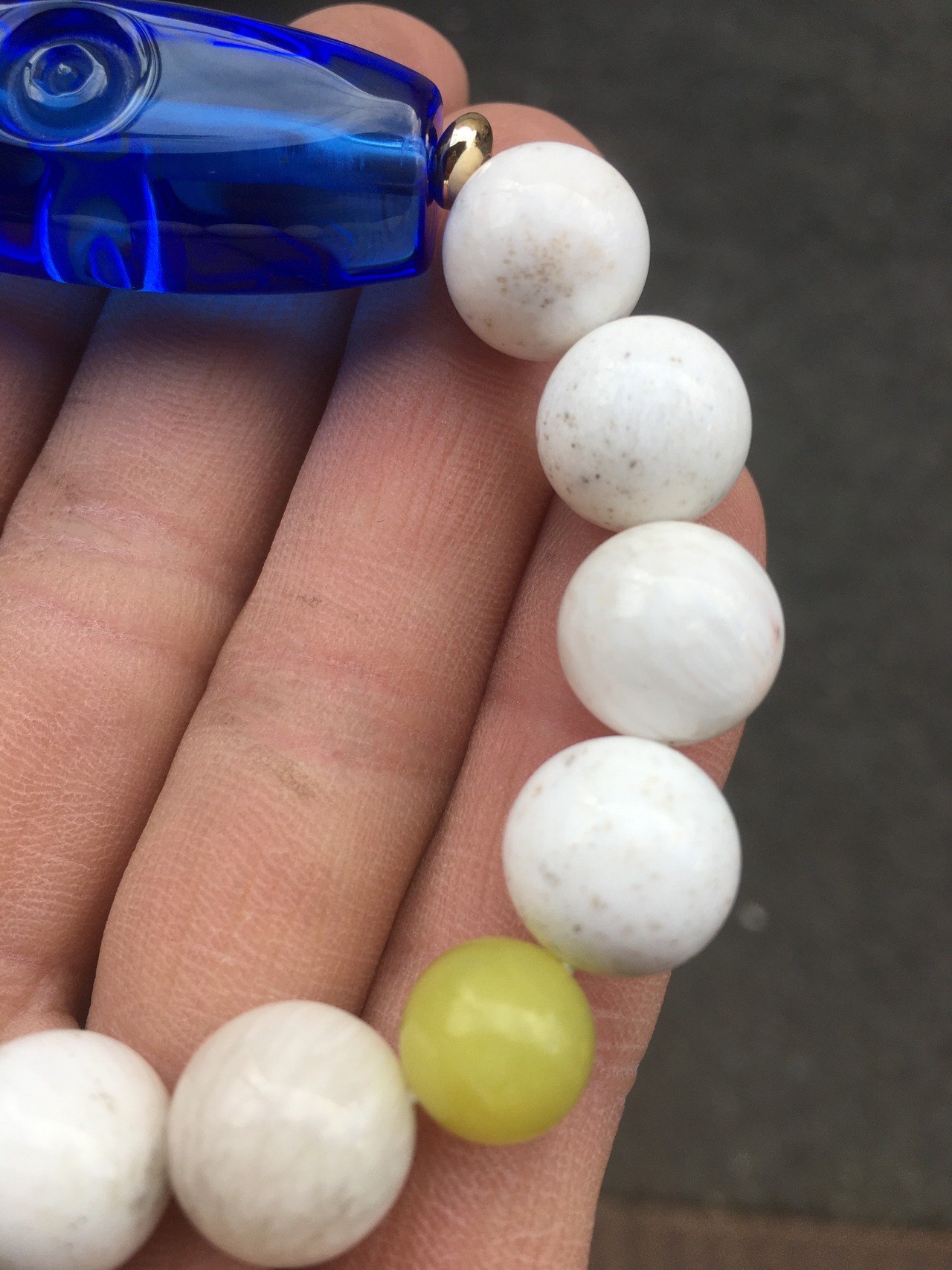 天珠が入っている為通常のブレスレットよりは小さめになります。