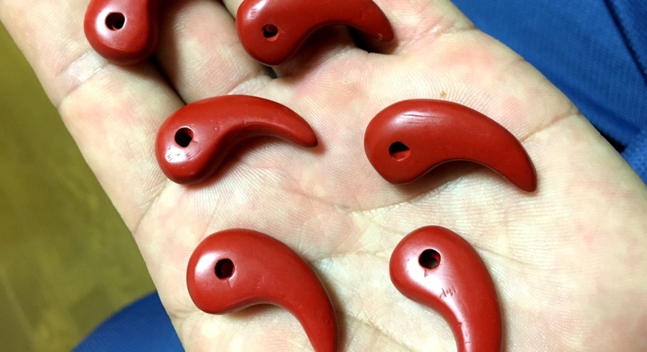 貴州省萬山産の辰砂の粉末を元に作成された勾玉です。辰砂(シナバー)は賢者の石という別名もございます。魂の成長、能力の向上を促すとされる力の強い石となります。賢者の石と呼ばれることから、魔除のお守りやサイキック能力の向上に持たれる方もいらっしゃいます。